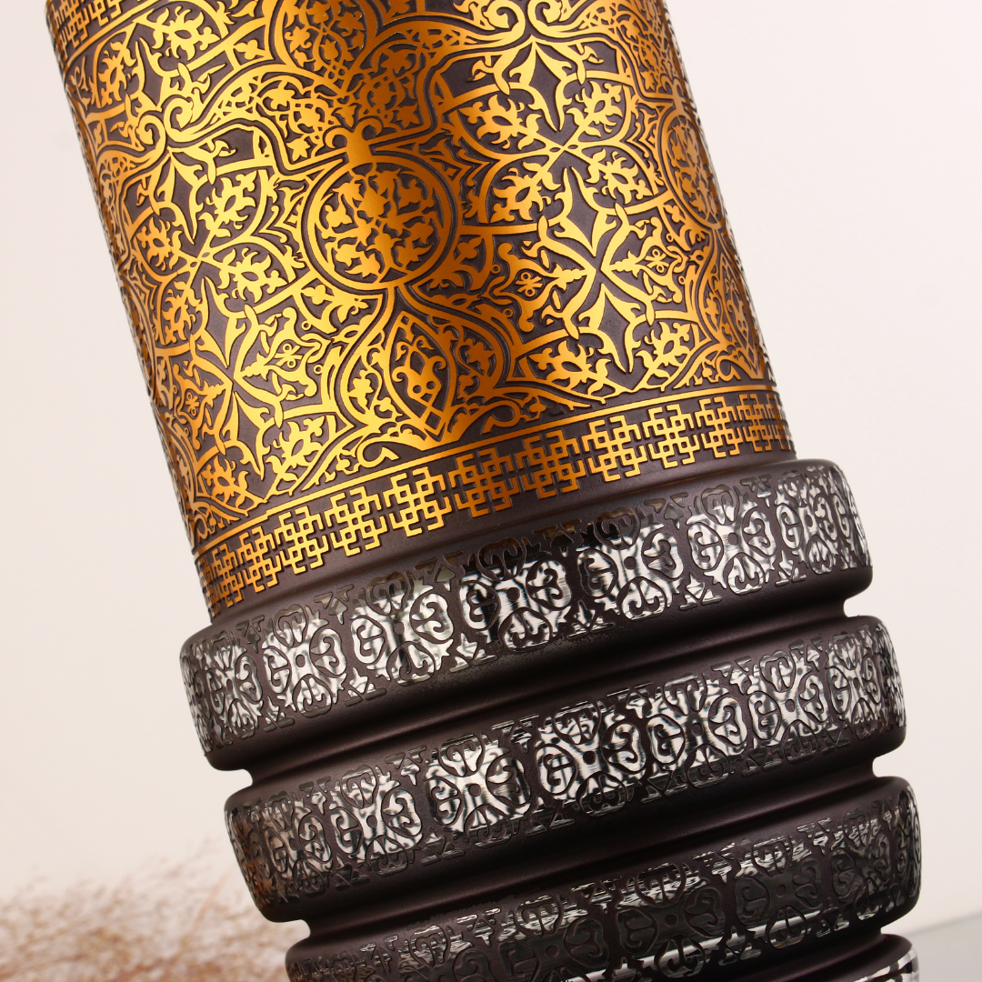 Ahlat Selçuklu Mezarlığı’nın anıtsal mezar taşlarından ilham alınarak tasarlanan Ahlat Vazo, Orta Çağ Türk-İslam sanatının estetik ruhunu modern cam işçiliğiyle buluşturan özel bir eserdir. Geometrik desenler ve taş süsleme detayları, mezar taşlarının görkemini ve asaletini yansıtarak cam yüzeyine ustalıkla işlenmiştir. El işçiliğiyle üretilen bu vazo, Ahlat’ın bin yıllık kültürel mirasını günümüze taşıyan zamansız bir tasarım sunar. Tarih ve sanat tutkunları için benzersiz bir koleksiyon parçası olan Ahlat Vazo, geçmişin izlerini modern cam sanatıyla yaşatmaya devam eder.