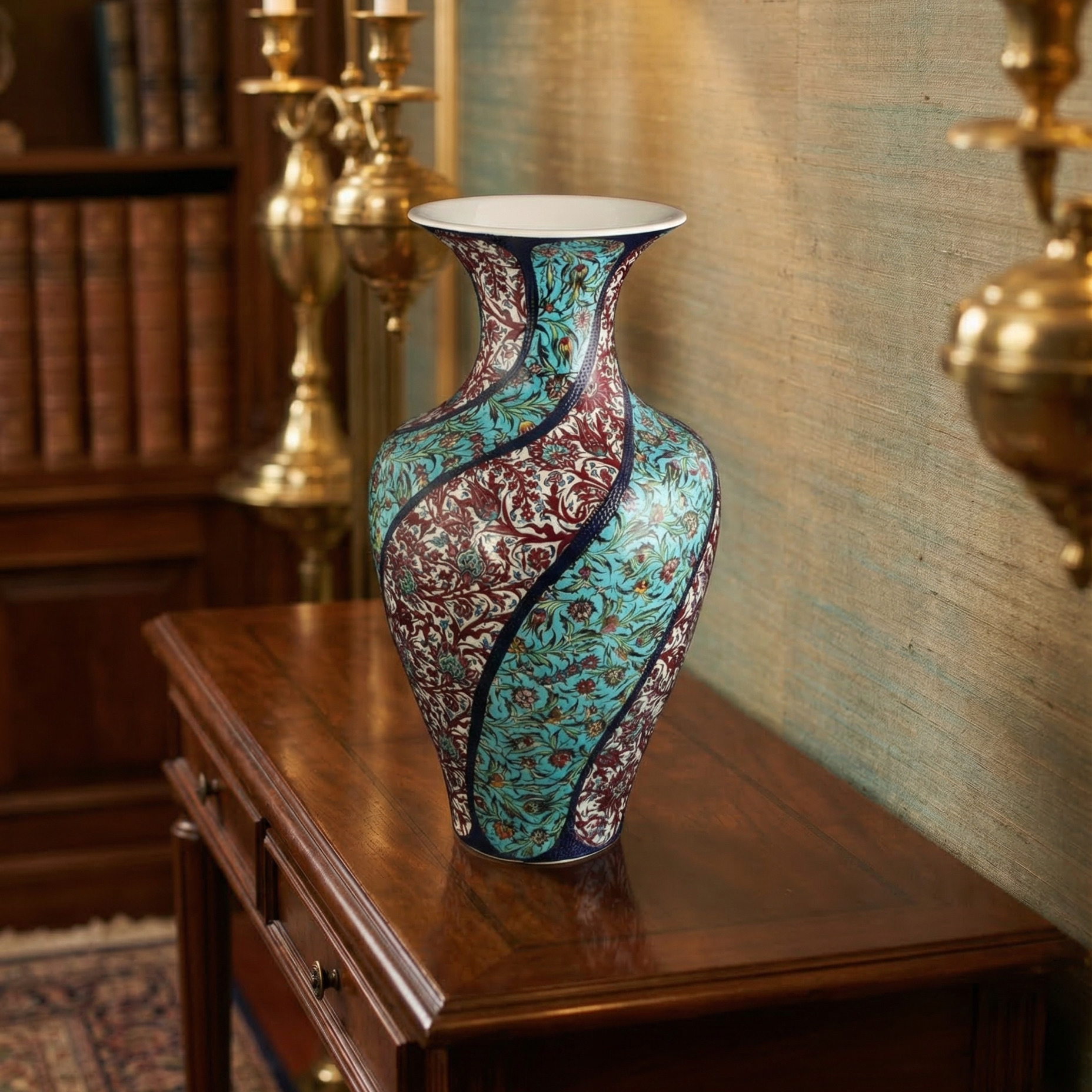 Anadolu Rüzgarı Vazo, binlerce yıllık seramik ve çini geleneğini modern estetikle buluşturan, anlam ve zarafet yüklü özel bir tasarımdır.Anadolu Rüzgarı Vazo Anadolu’nun topraklarında şekillenen zengin sanatsal miras, bu eserde hem doğadan gelen sadeliği hem de Osmanlı döneminde zirveye ulaşan çini sanatının ince işçiliğini yansıtır.