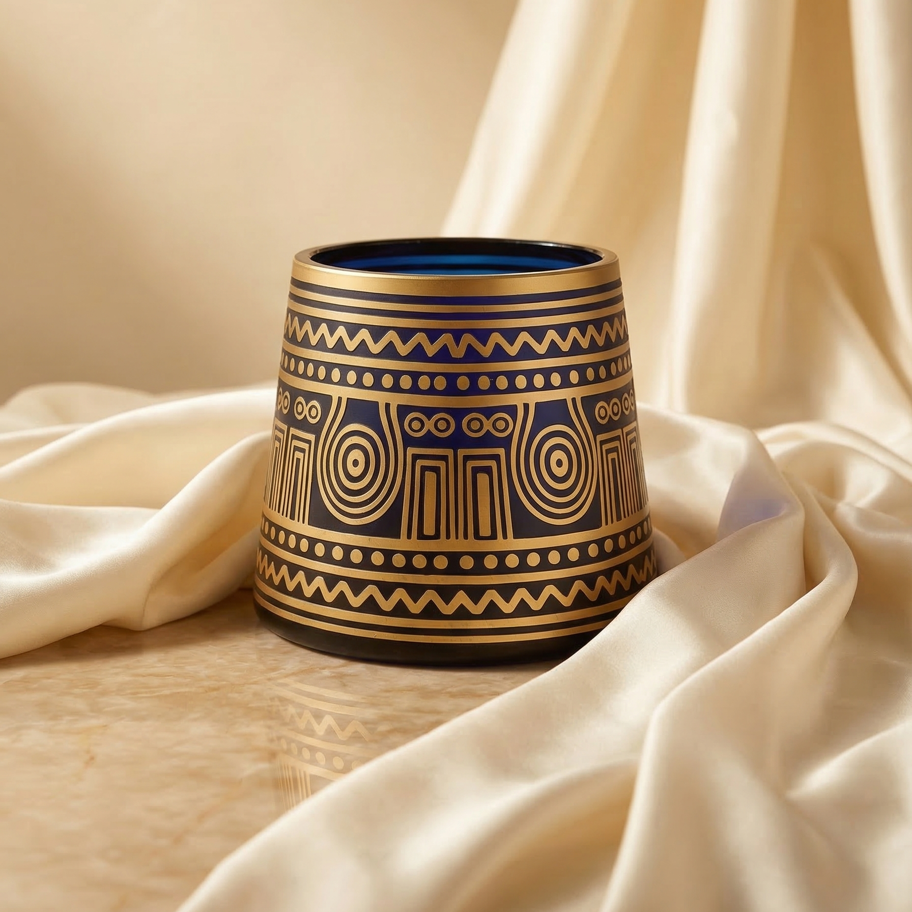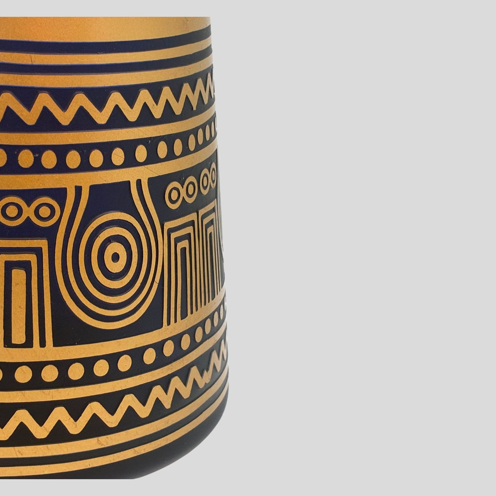 Ankara Bordür Vazo, Anadolu’nun köklü motif geleneğini modern cam sanatıyla buluşturan, güçlü karaktere sahip özel bir tasarımdır. Ankara Bordür Vazo, üzerindeki ritmik ve geometrik bordür desenleri ile geçmişin estetik anlayışını günümüz dekorasyon diliyle yeniden yorumlar.