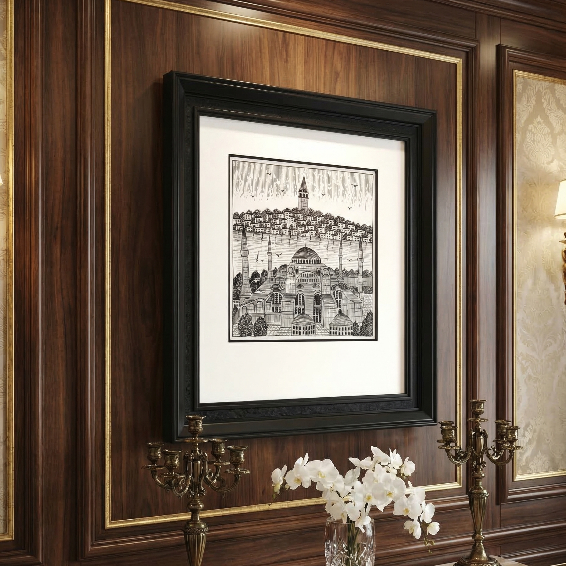Ayasofya Galata Seramik Sanat Tablo tasarımında bu iki mimari yapı seramik sanatının geleneksel dokusu ile yorumlanarak geçmişin estetiği modern dekorasyon anlayışıyla buluşturulmuştur.