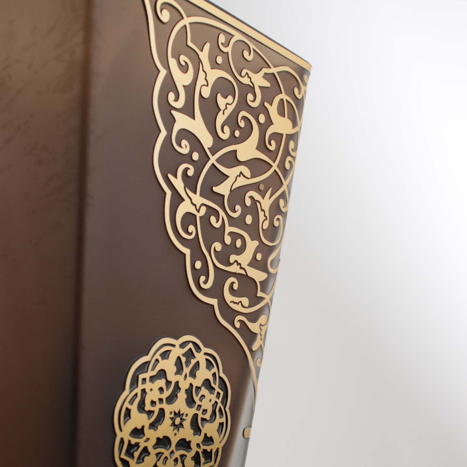 Yönetici odasında koyu ahşap mobilyalarla birlikte kullanıldığında mat degrade yüzey daha “derin” görünür. Resepsiyon ve lobide, spot ışık altında altın detaylar dengeli bir ışıltı verir. Salonda konsol üzerinde, sade aksesuarlarla birlikte konumlandığında tek başına güçlü bir odak oluşturur.