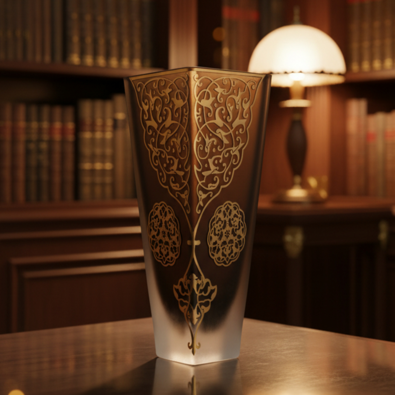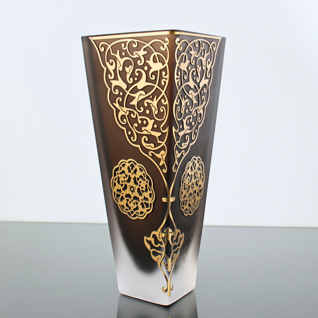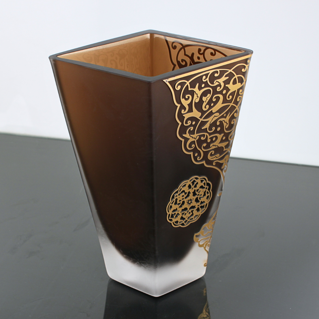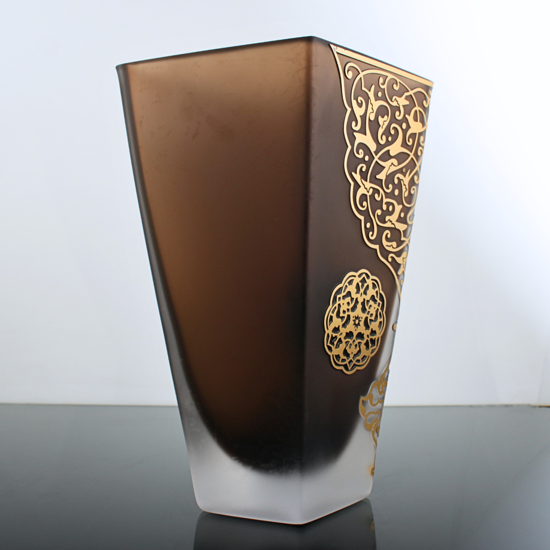 Malzeme: Cam gövde, mat degrade yüzey, altın görünümünde el dekoru