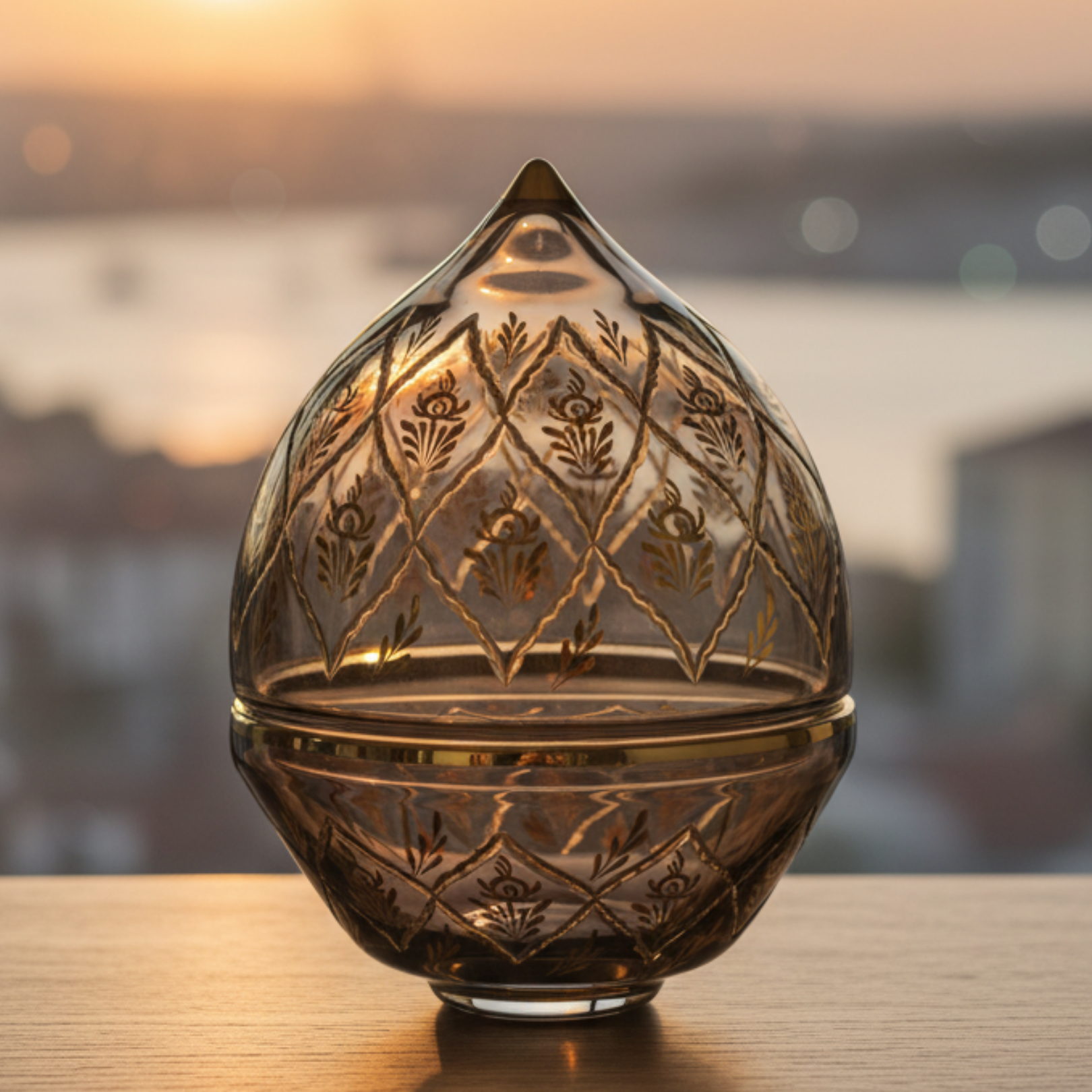 İşçilik: Beykoz işi geleneksel cam sanatı, yaldız dekor