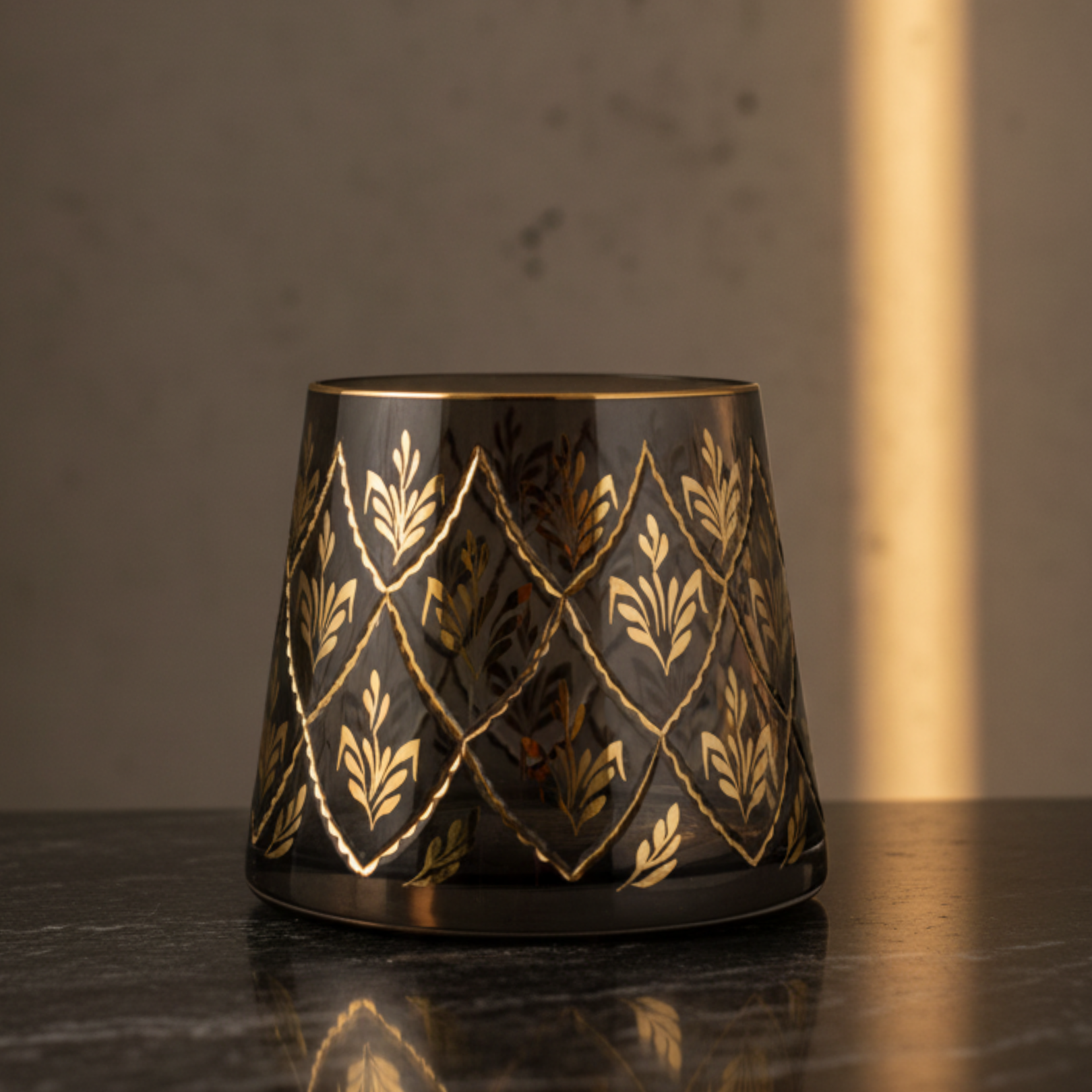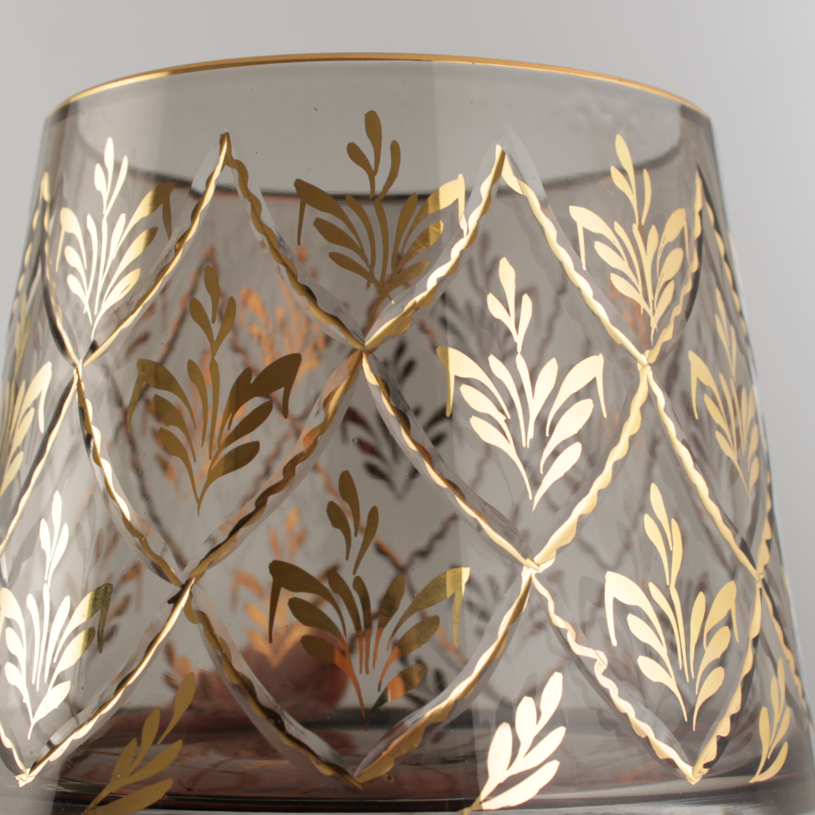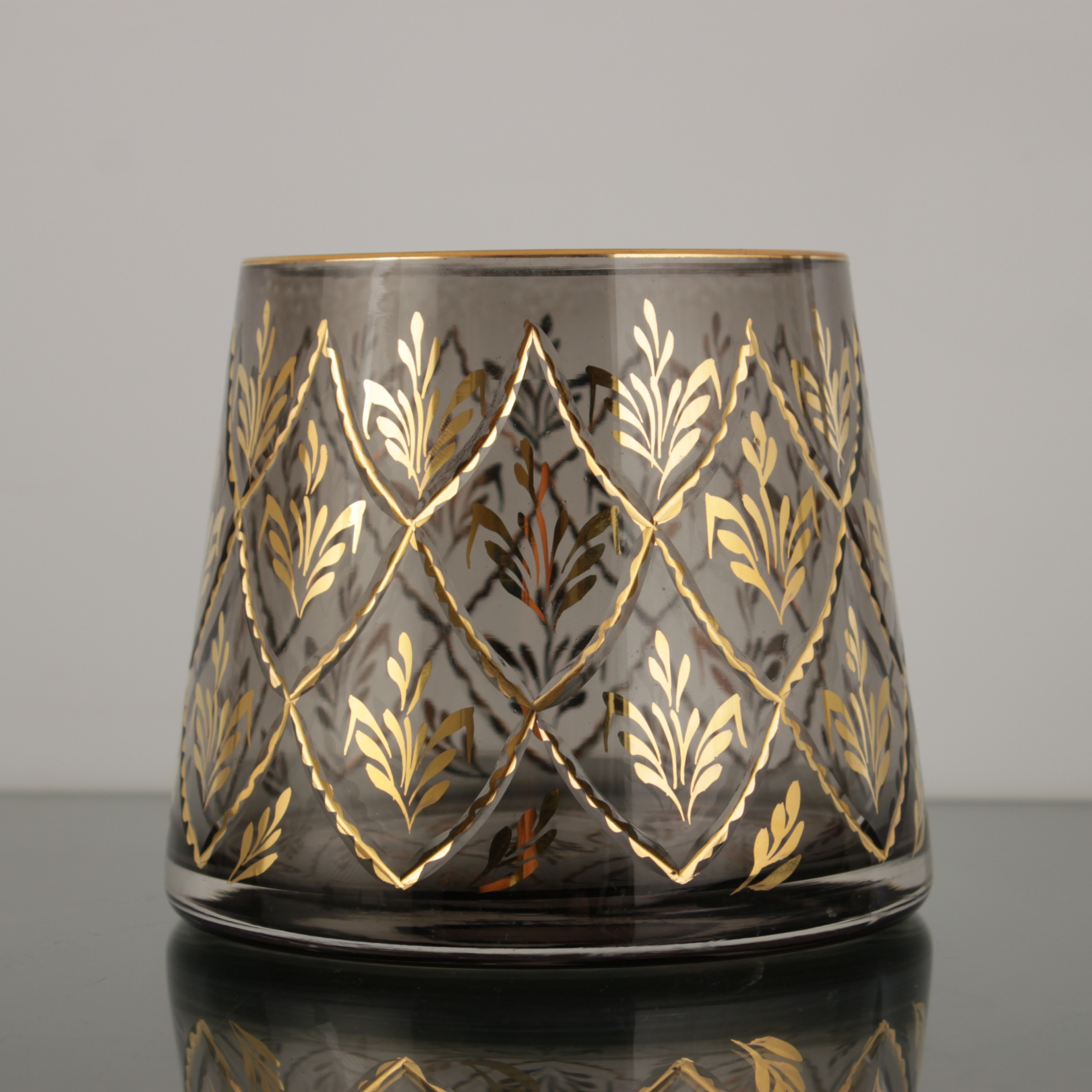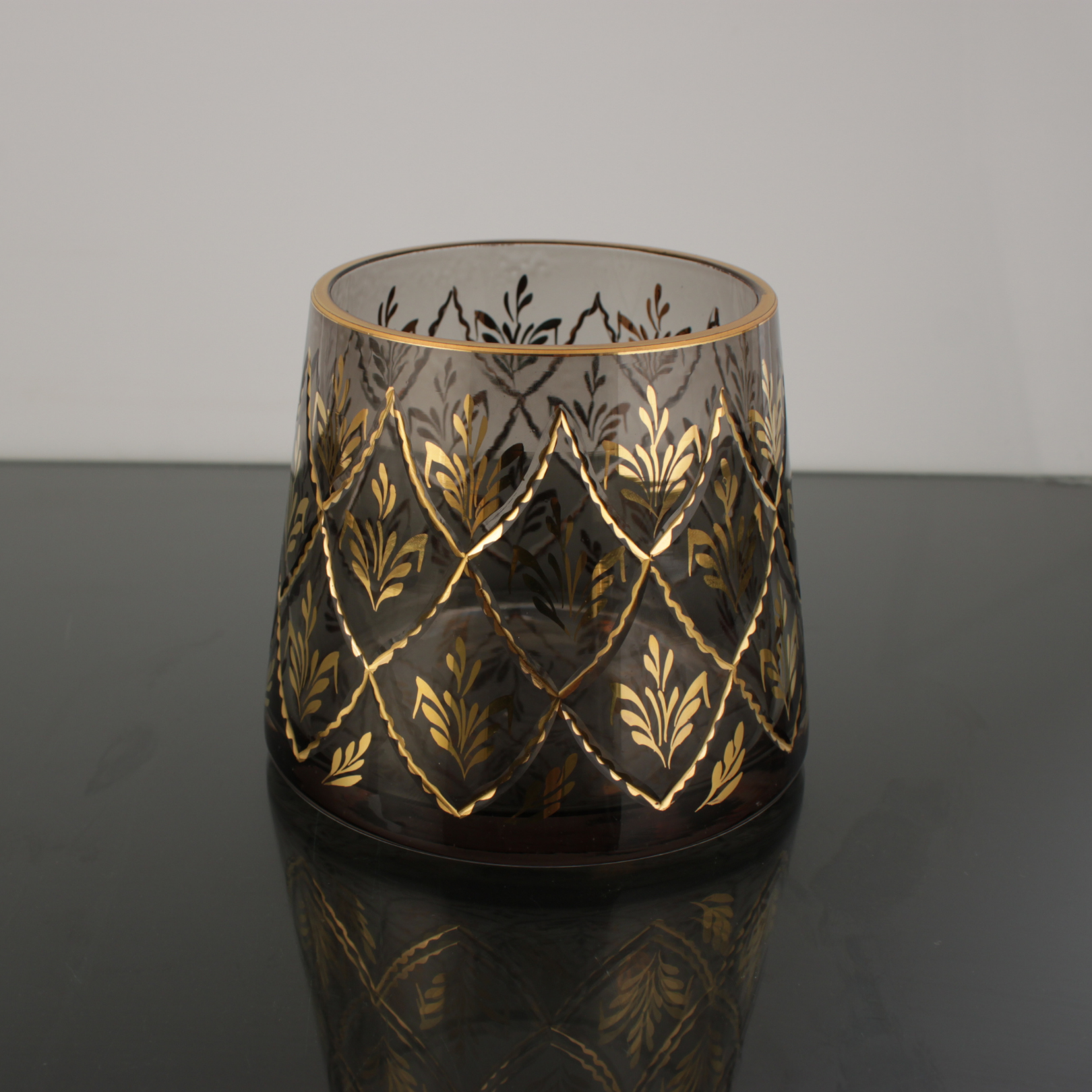 Beykoz İşi füme vazo ışığı ve renkleri zarifçe yansıtan özel desenleriyle mekânlarınıza sanatsal bir dokunuş katıyor