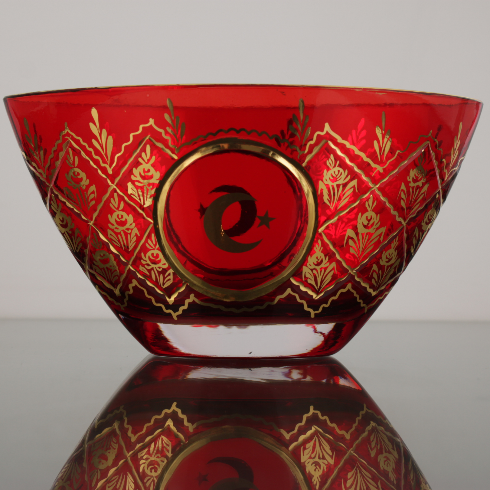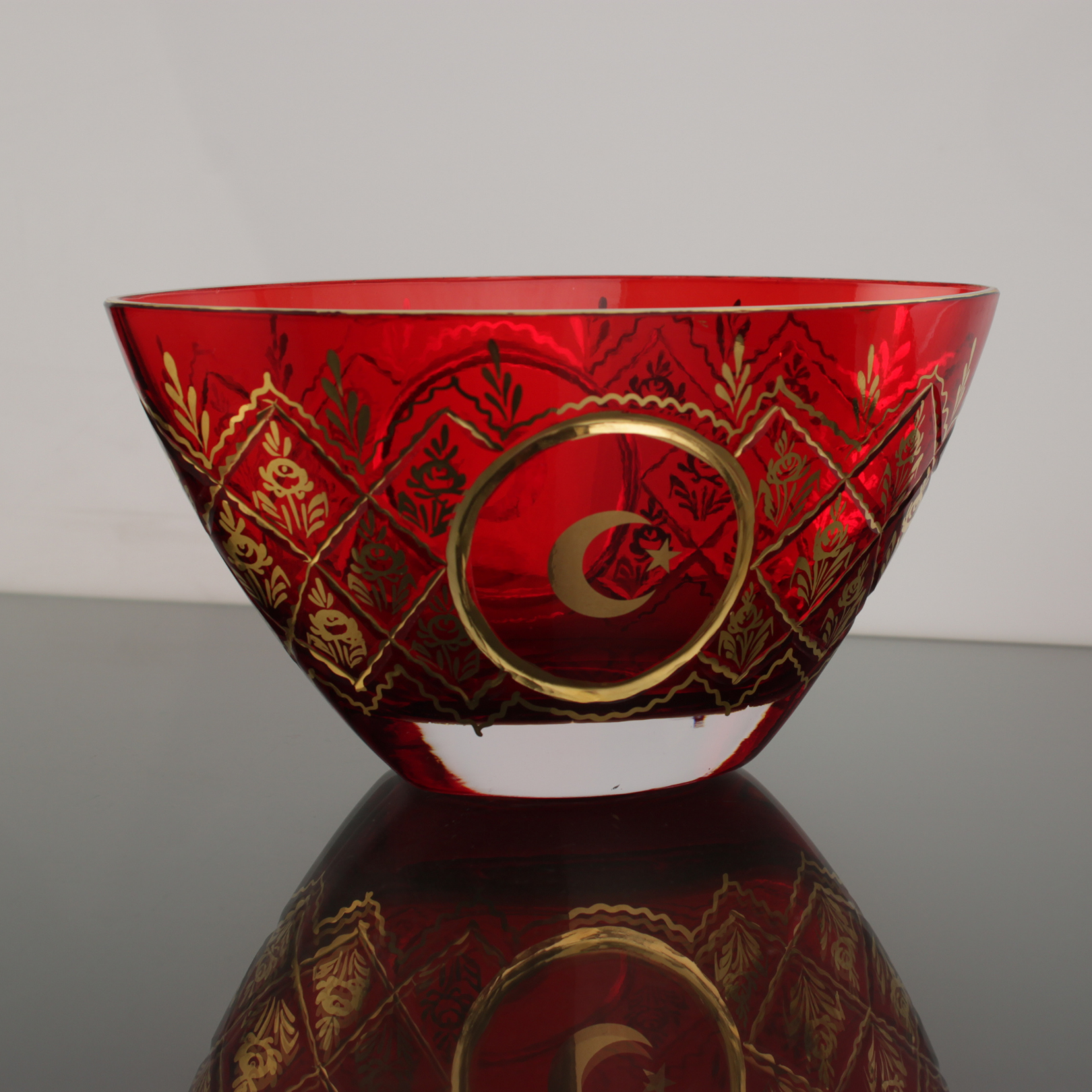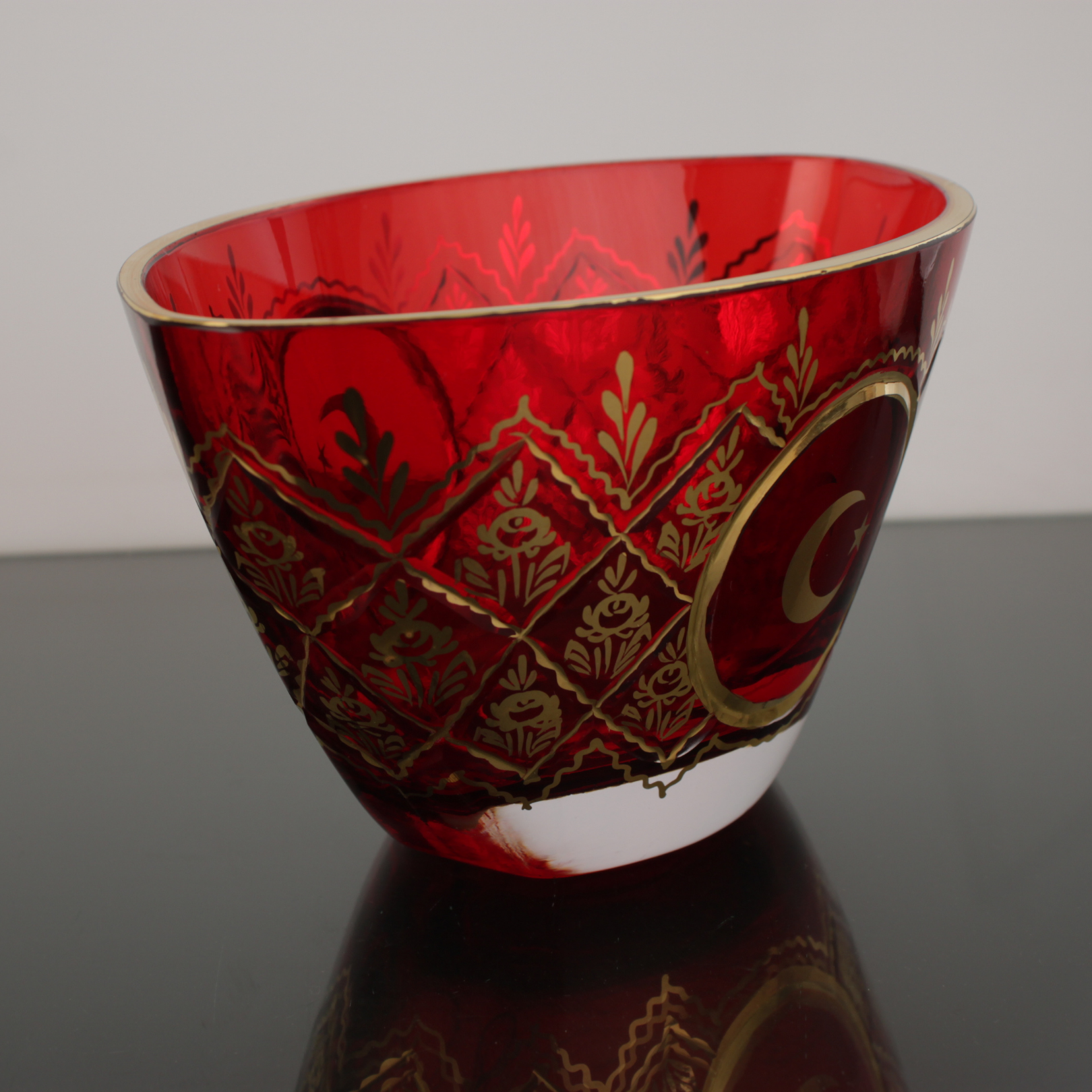 Beykoz Cam Sanatı, Osmanlı döneminde saray estetiğini ve zarafeti yansıtan nadide el sanatlarından biri olarak öne çıkmıştır. Ayyıldız motifi ise tarih boyunca Türk-İslam geleneğinde estetik ve simgesel değeriyle kullanılmış; aidiyeti, zarafeti ve gücü aynı anda taşıyan bir işaret olmuştur. Bu eserde Ayyıldızın kırmızı cam üzerinde parlayışı; geçmişin ihtişamını günümüz yaşam alanlarına, sessiz ama etkileyici bir dille taşır.