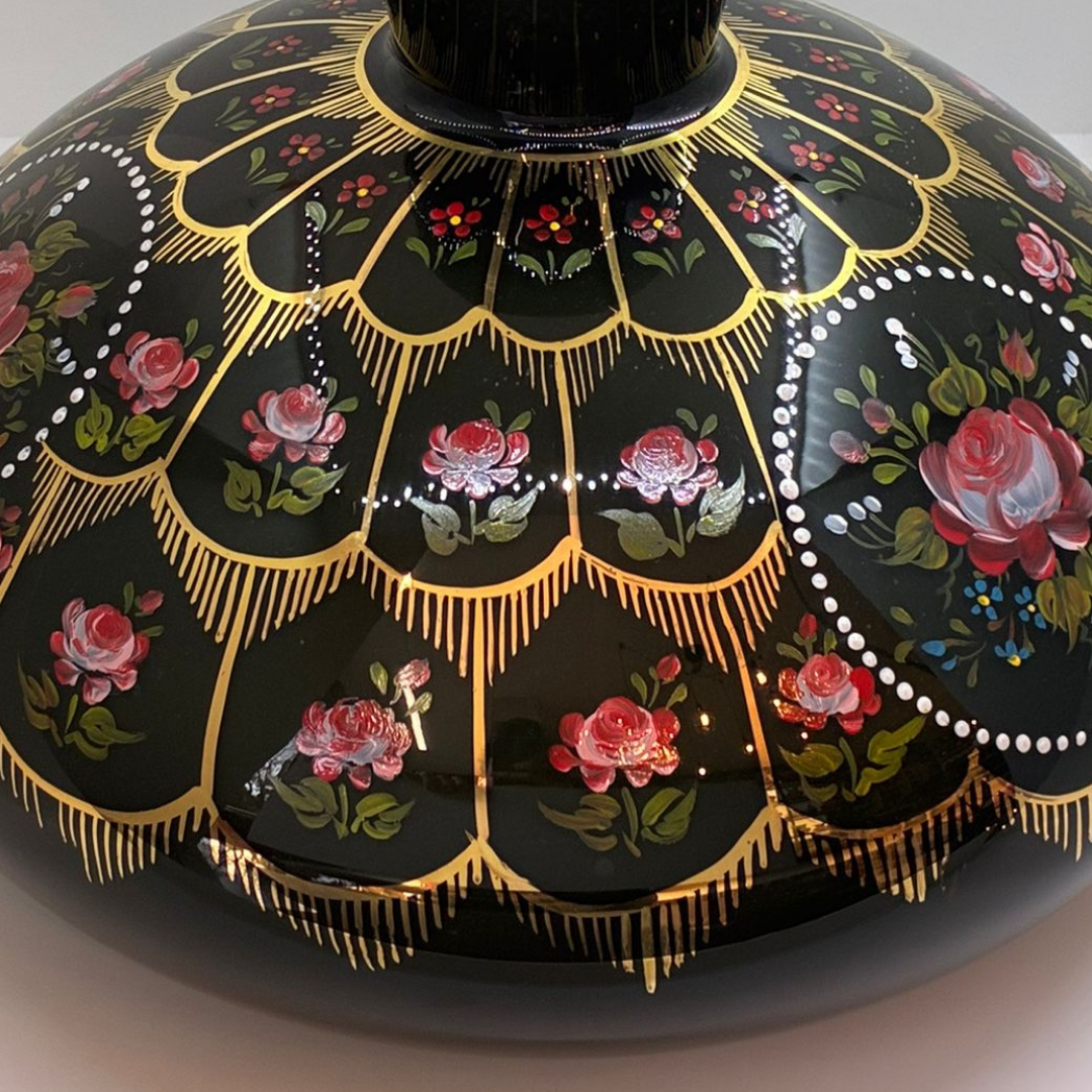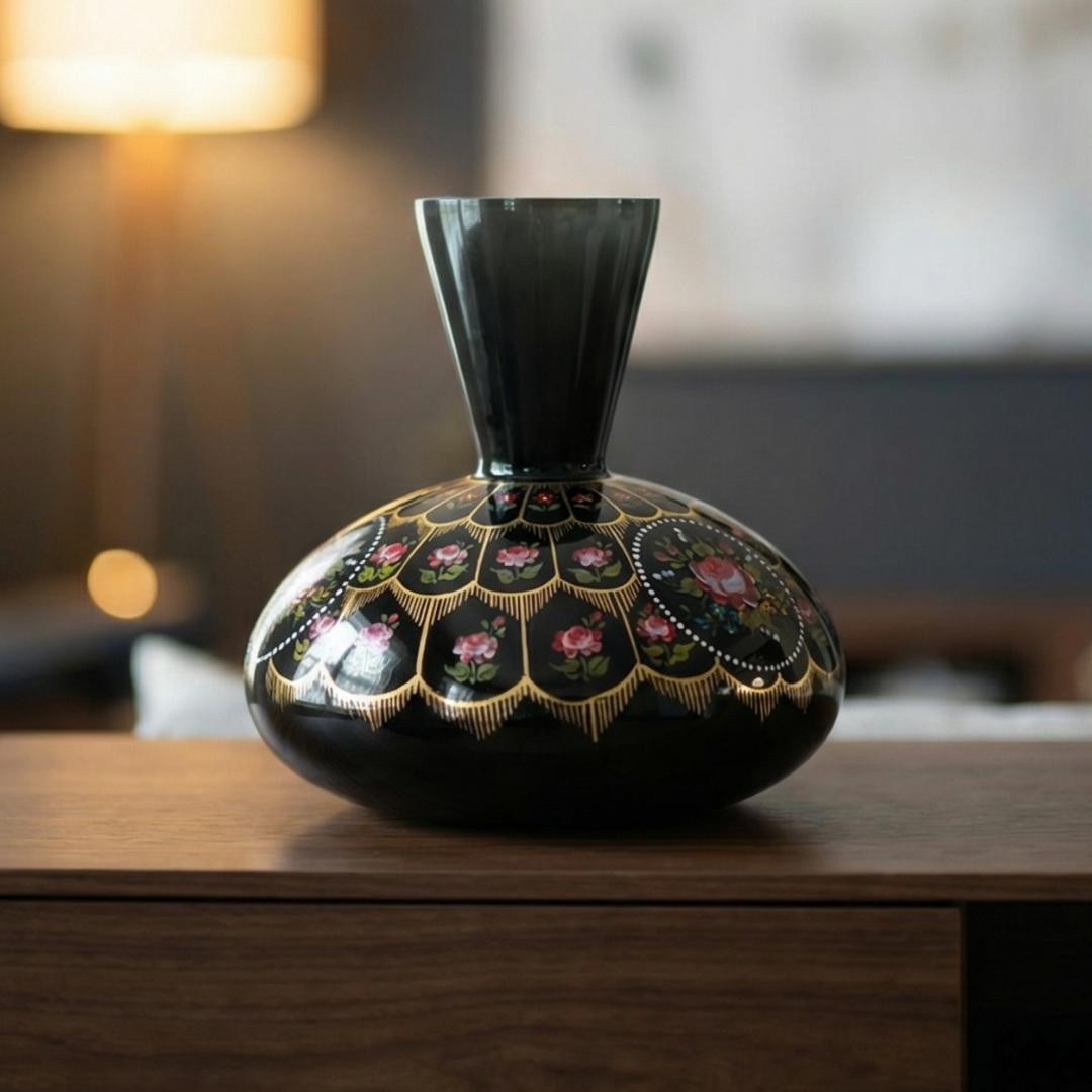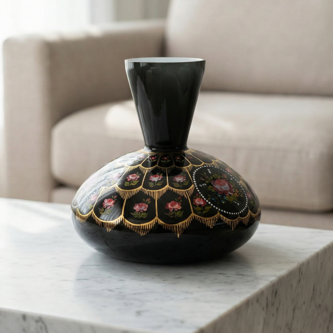 Beykoz süslemeleri, Osmanlı döneminde cam sanatının en zarif anlatım biçimlerinden biri olarak gelişti. Ustanın fırçası, cam üzerinde klasik motifleri bir kompozisyon disiplinine dönüştürürken; altın detaylar esere ölçülü bir ihtişam katar. Bu parça, Beykoz’un o ince zevkini bugünün yaşam alanlarına taşımak için tasarlandı: Sessiz ama güçlü, gösterişsiz ama prestijli bir duruş.
