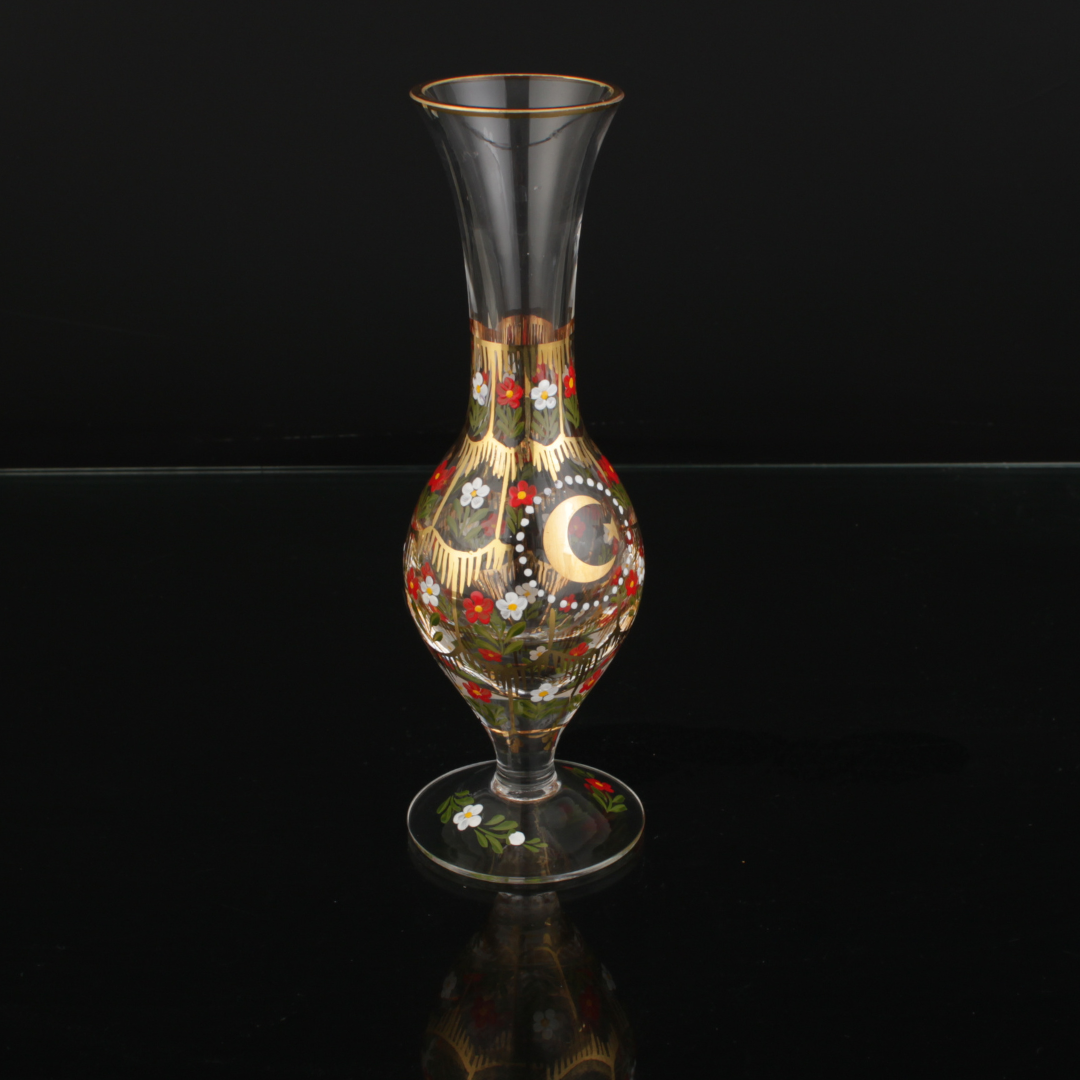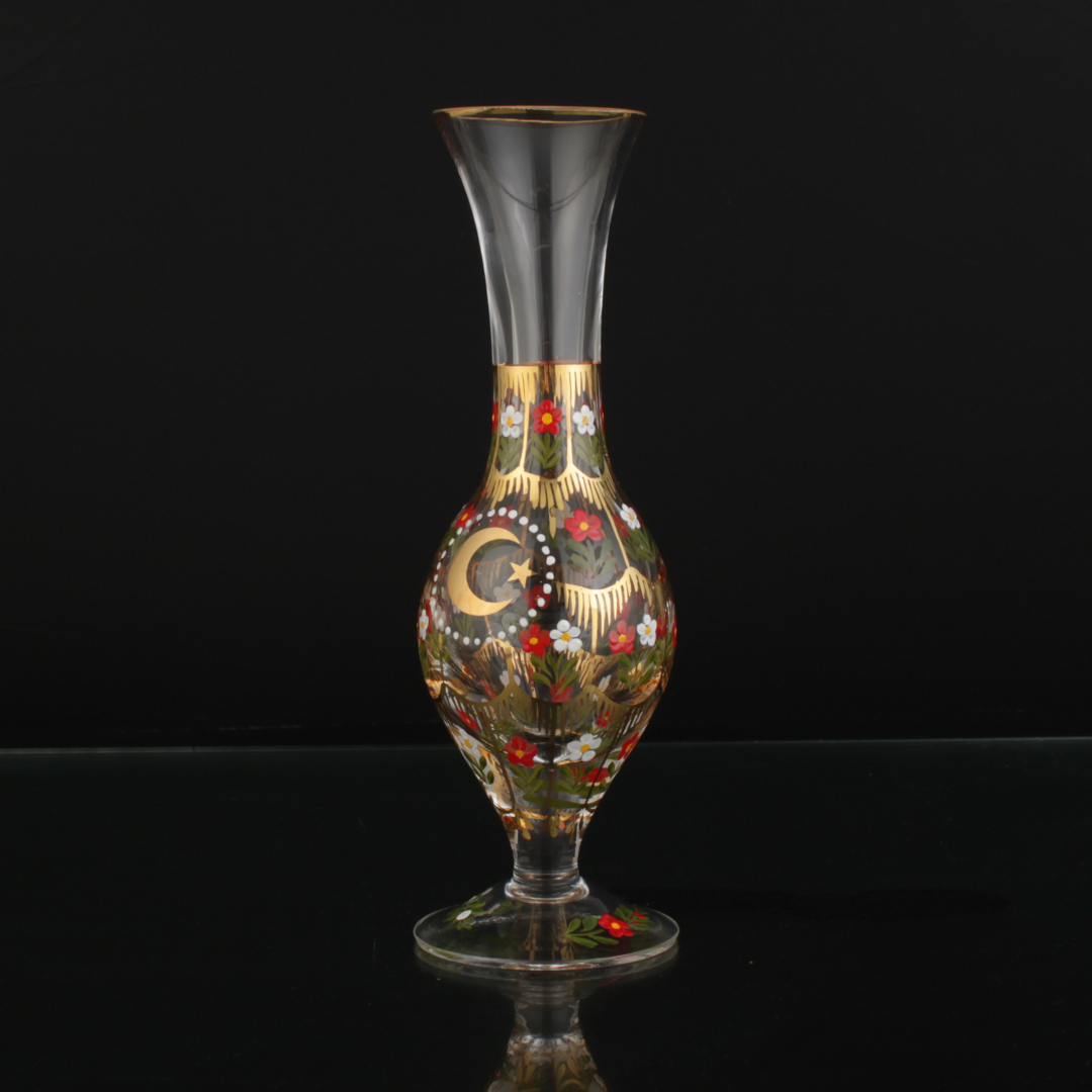 Beykoz İşi Gülabdan, camın zarif dokusunu geleneksel Beykoz motifleriyle buluşturan sınırlı üretim bir eserdir. İnce formu ve ışığı yayan yüzeyi, bulunduğu alana sakin bir ışıltı ve düzen hissi katar. Motiflerin ritmi yakından bakıldıkça belirginleşir; parça “dekor” olmaktan çıkar, kültürel bir hikâye anlatan sanat nesnesine dönüşür. Vitrinde, konsolda ya da çalışma alanında tek başına sergilendiğinde dahi tamamlanmış bir köşe hissi verir.