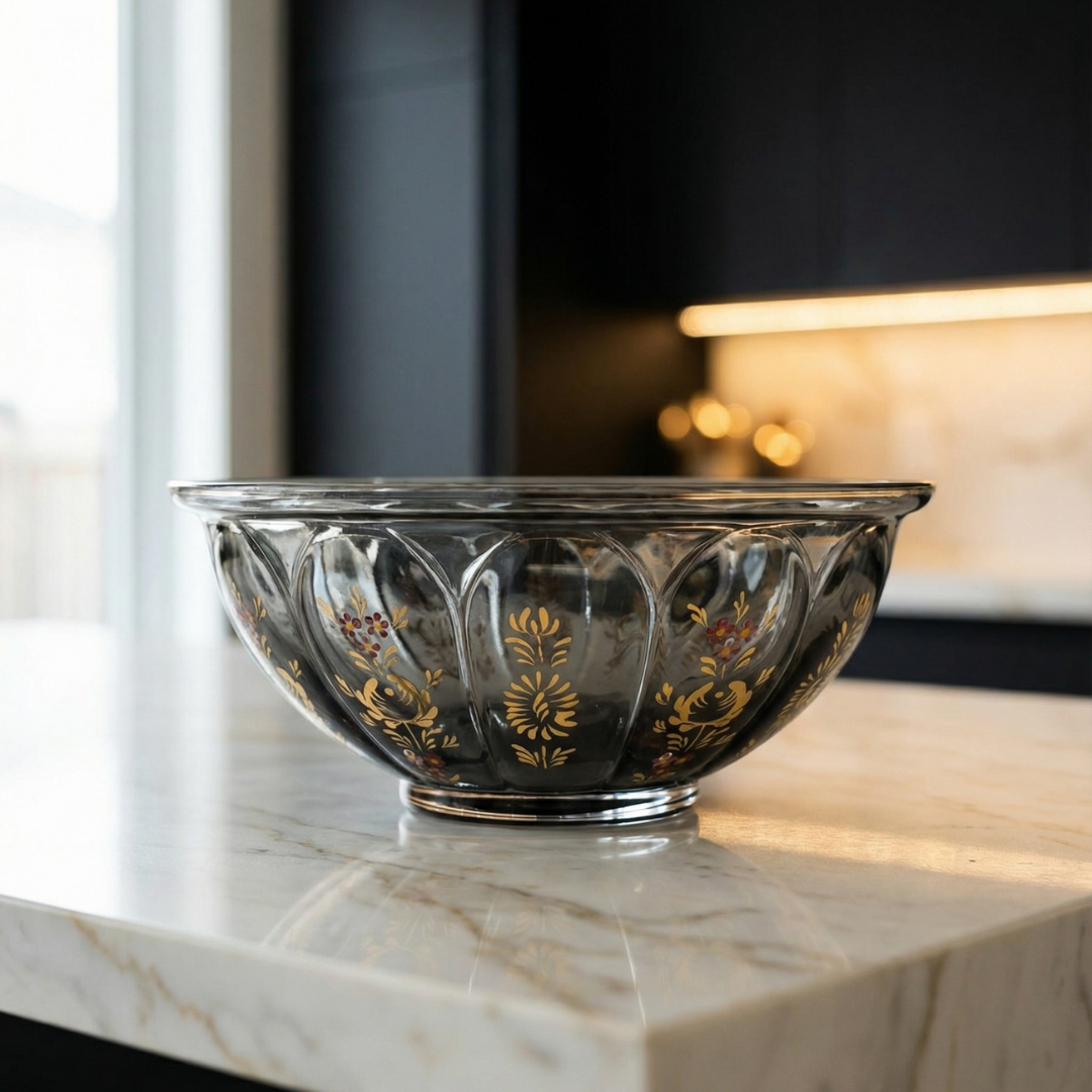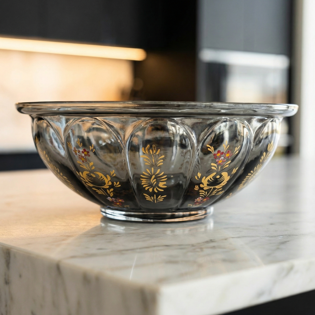 Beykoz süslemeleri, Osmanlı döneminde cam sanatının en zarif anlatım biçimlerinden biri olarak gelişti. Ustanın fırçası, cam üzerinde klasik motifleri bir kompozisyon disiplinine dönüştürürken; altın detaylar esere ölçülü bir ihtişam katar. Bu parça, Beykoz’un o ince zevkini bugünün yaşam alanlarına taşımak için tasarlandı: Sessiz ama güçlü, gösterişsiz ama prestijli bir duruş.