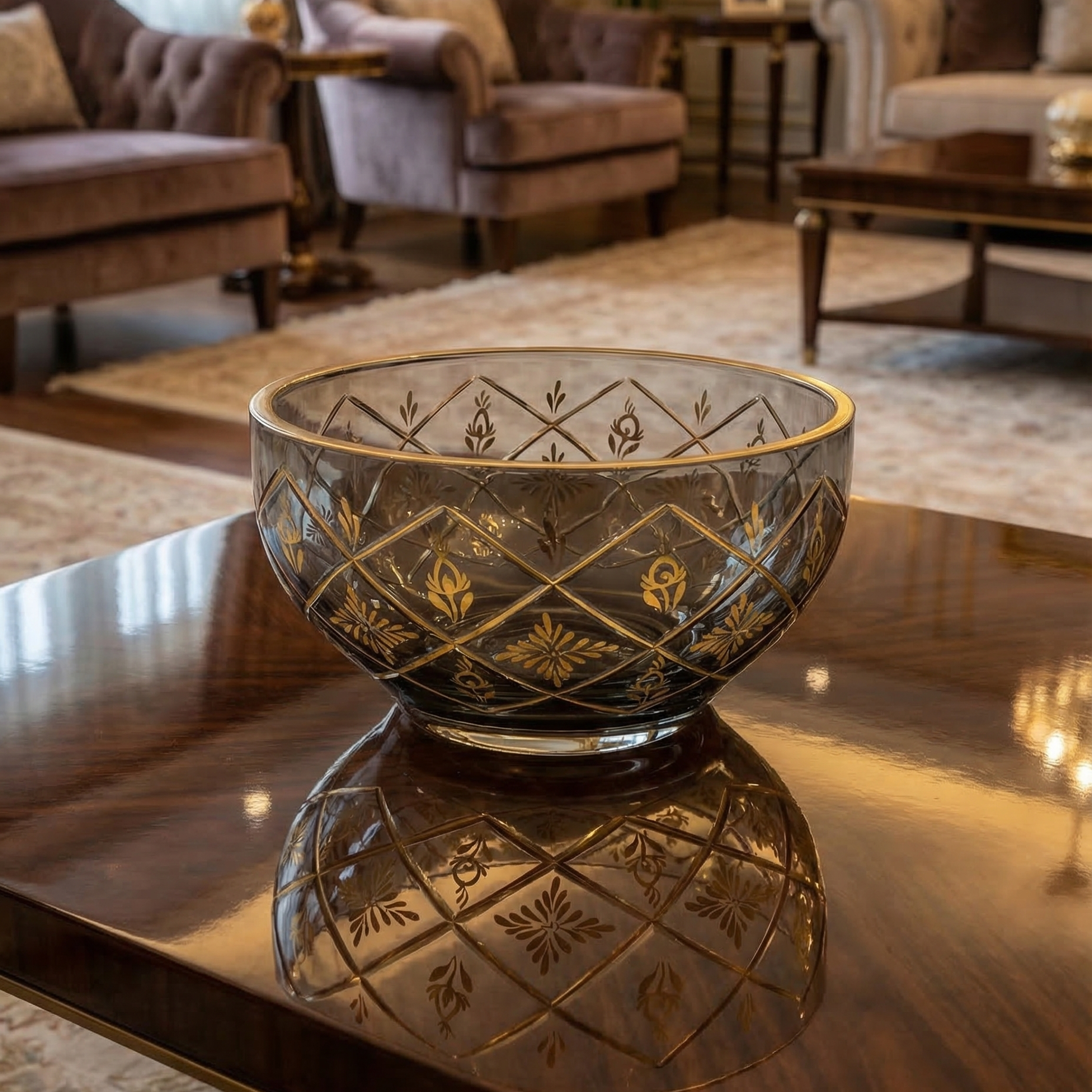 Beykoz İşi Meyvelik, Osmanlı cam sanatının zarafetini günümüz yaşam alanlarına taşıyan, el işçiliğiyle üretilmiş özel bir tasarımdır. Beykoz İşi Meyvelik, füme camın derin tonları ile altın detayların ihtişamını bir araya getirerek mekânda hem estetik hem de fonksiyonel bir değer sunar.