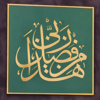 “Bu Allah’ın Lütfundandır” Cam Çerçeve, Kur’an-ı Kerim’de geçen ve nimetin gerçek sahibinin Allah olduğunu hatırlatan anlamlı bir ifadeyi estetik bir hat kompozisyonu ile yorumlayan özel bir sanat eseridir.