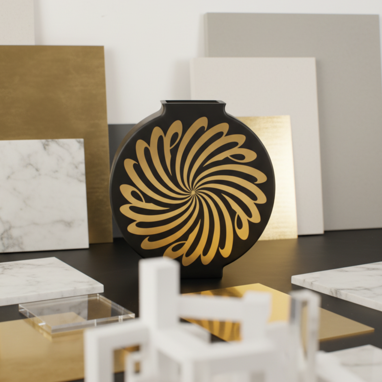 Açık renk arka planda hat kompozisyonu daha net okunur ve cam “galeri” hissini güçlendirir. Koyu ahşap yüzeylerde ise form daha ağır ve prestijli görünür; sıcak ışıkta yazının etkisi daha rafine bir derinlik kazanır.