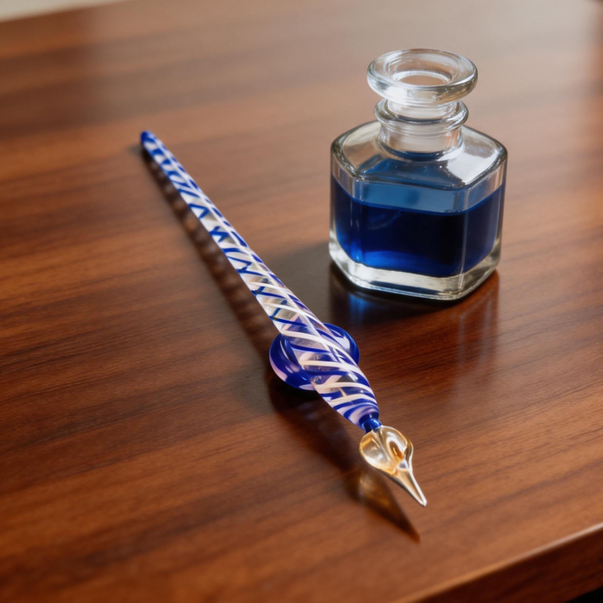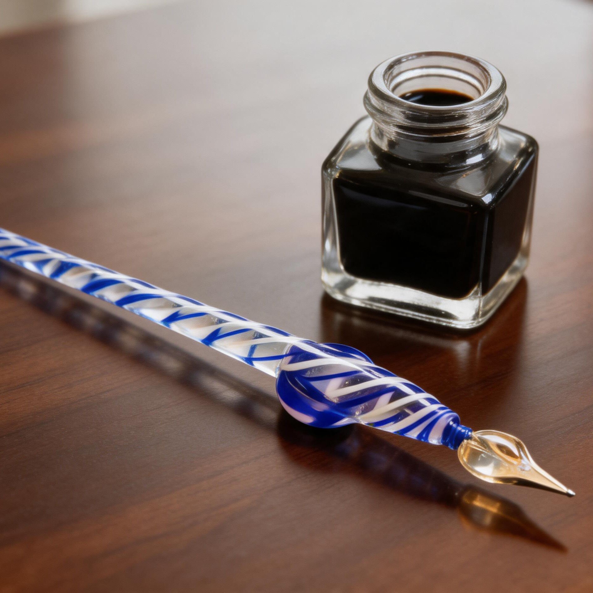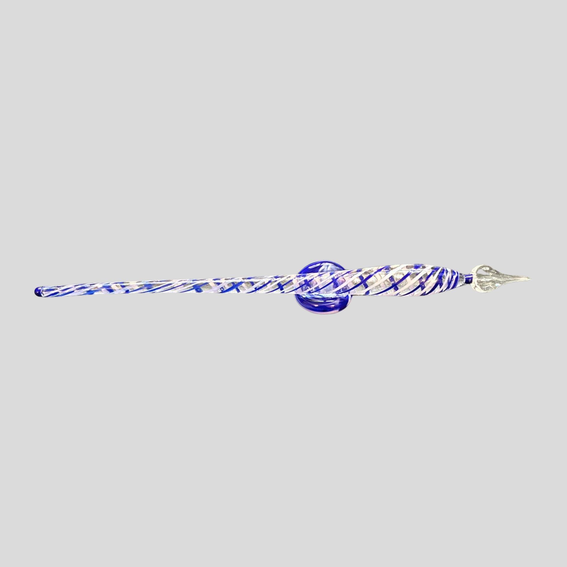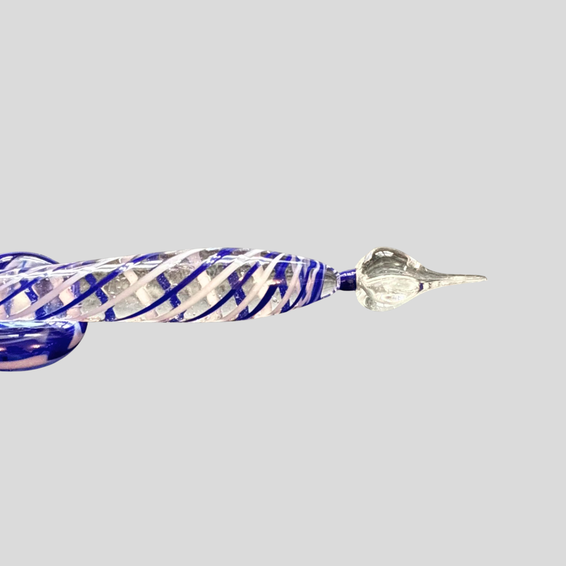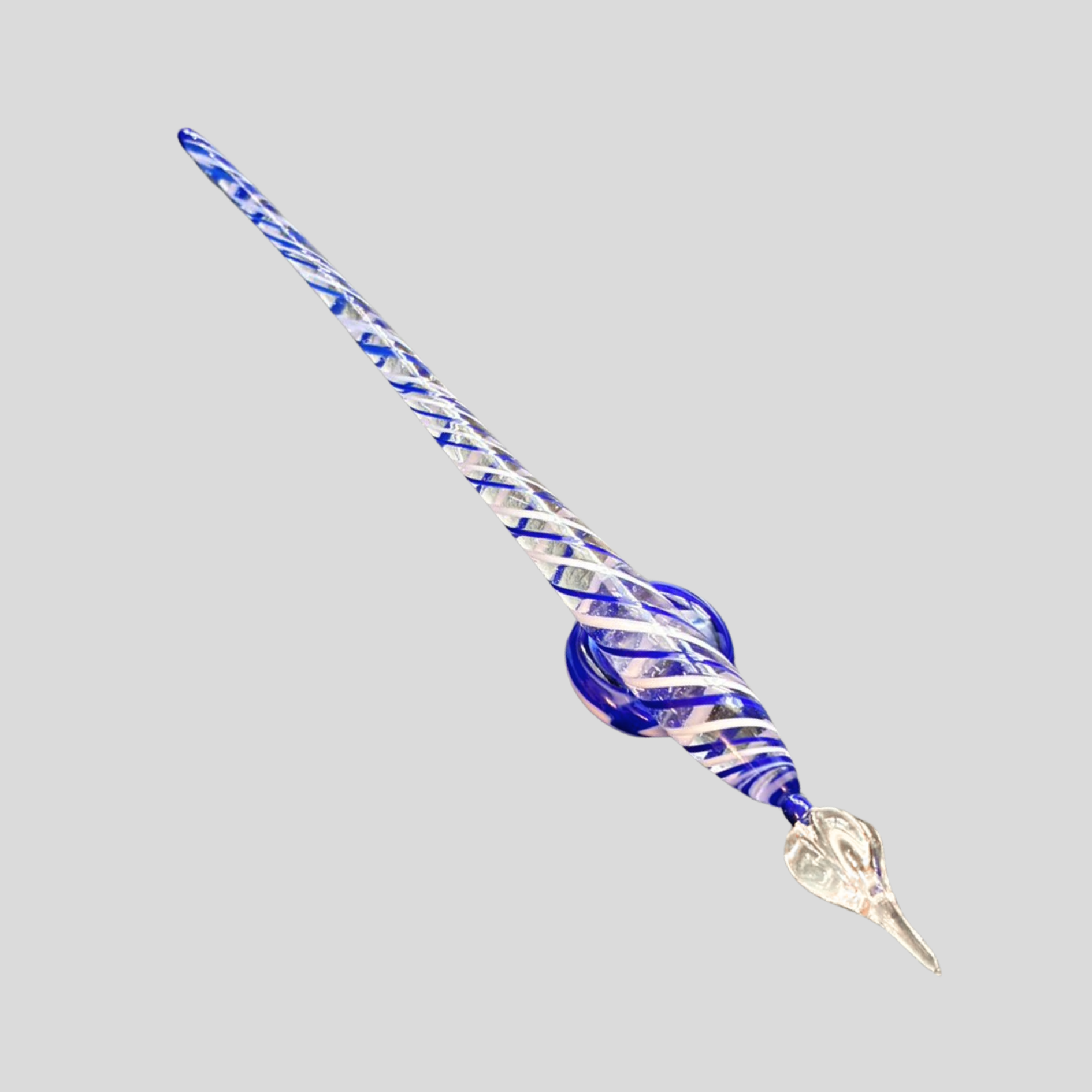 Çeşm-i Bülbül Cam Divit Kalem, geleneksel cam sanatının zarif çizgilerini yazı kültürüyle buluşturan özel bir tasarımdır. Lacivert ve beyaz geçişli cam gövdesi, Çeşm-i Bülbül tekniğinin akışkan desenleriyle şekillenirken; cam uç detayı ürüne hem sanatsal hem de işlevsel bir karakter kazandırır.