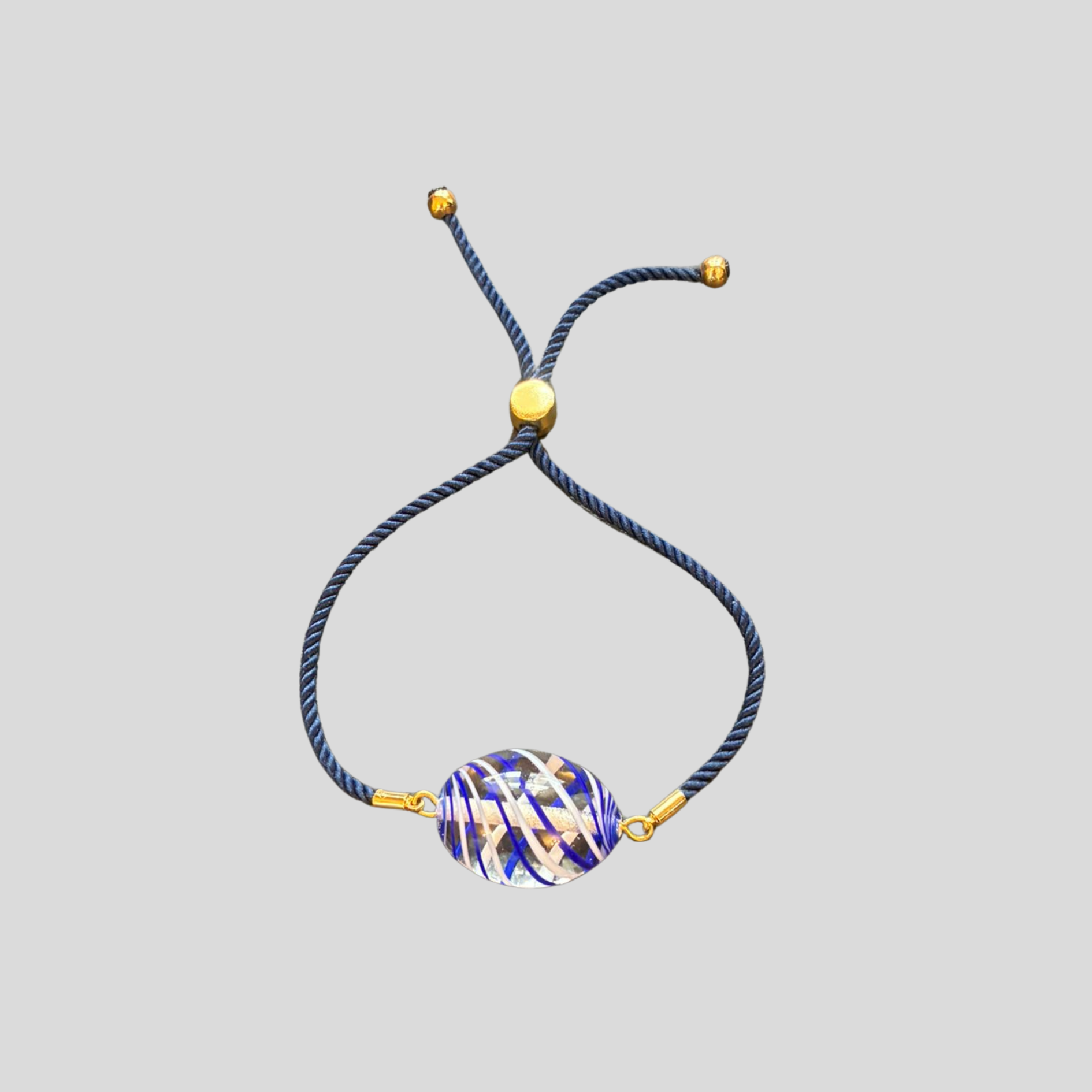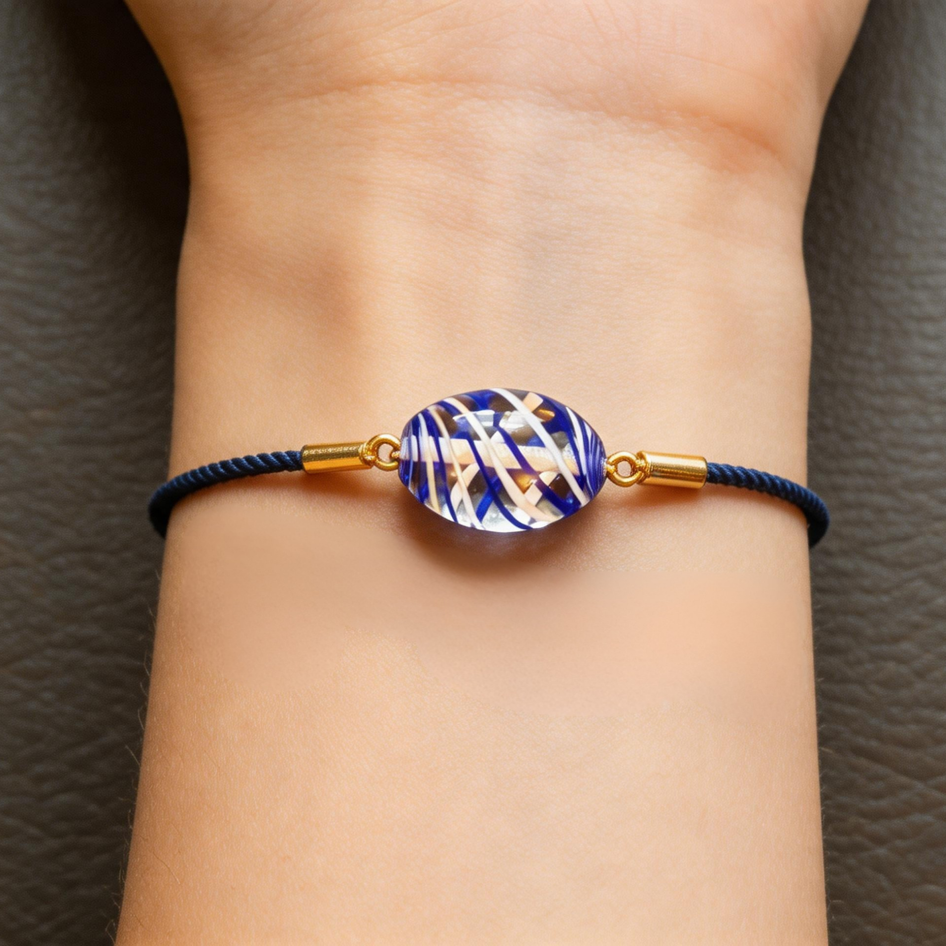 Lacivert tonlar derinliği ve asaleti, beyaz çizgiler sadeliği ve inceliği, gold detaylar ise tasarıma sıcak ve seçkin bir görünüm kazandırır. Çeşm-i Bülbül Gold Detaylı Cam Bileklik, yalnızca bir aksesuar değil; bilekte taşınan zarif bir sanat izidir.