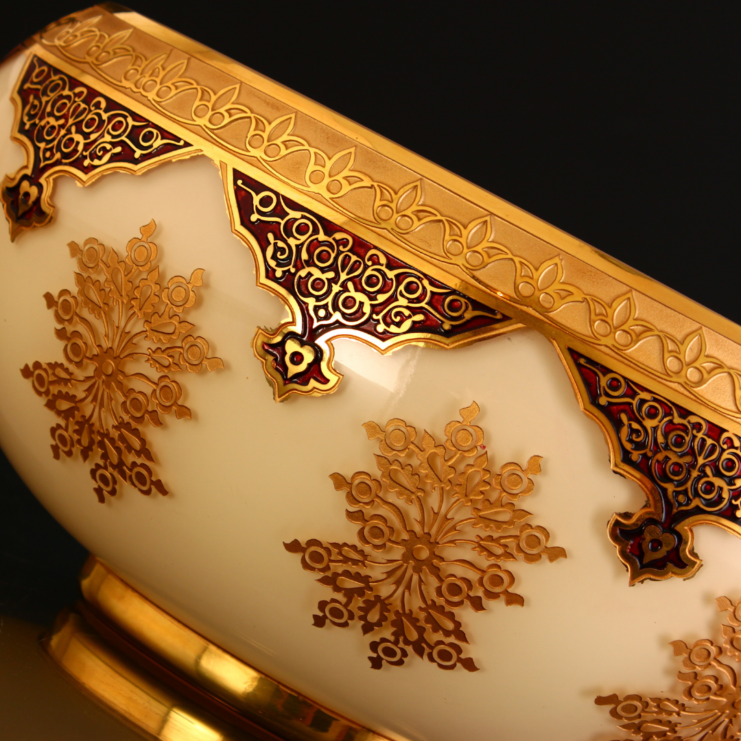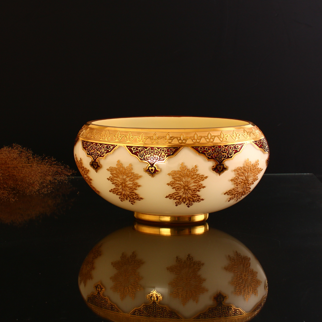 ✔ Cam yüzeyine geleneksel Osmanlı motifleri altın ve bordo tonlarında işlenmiştir.