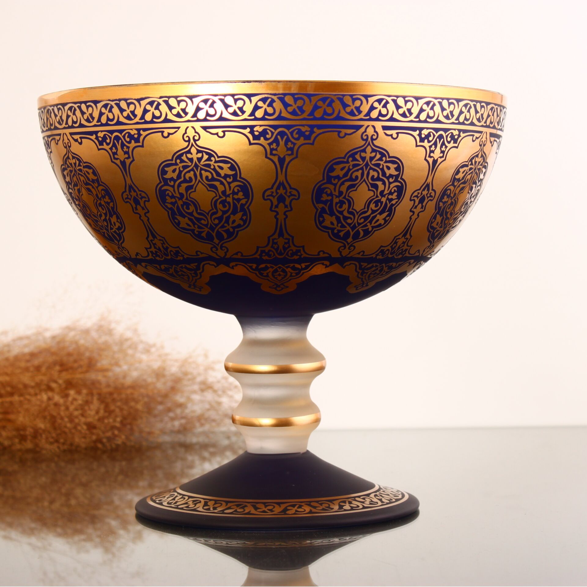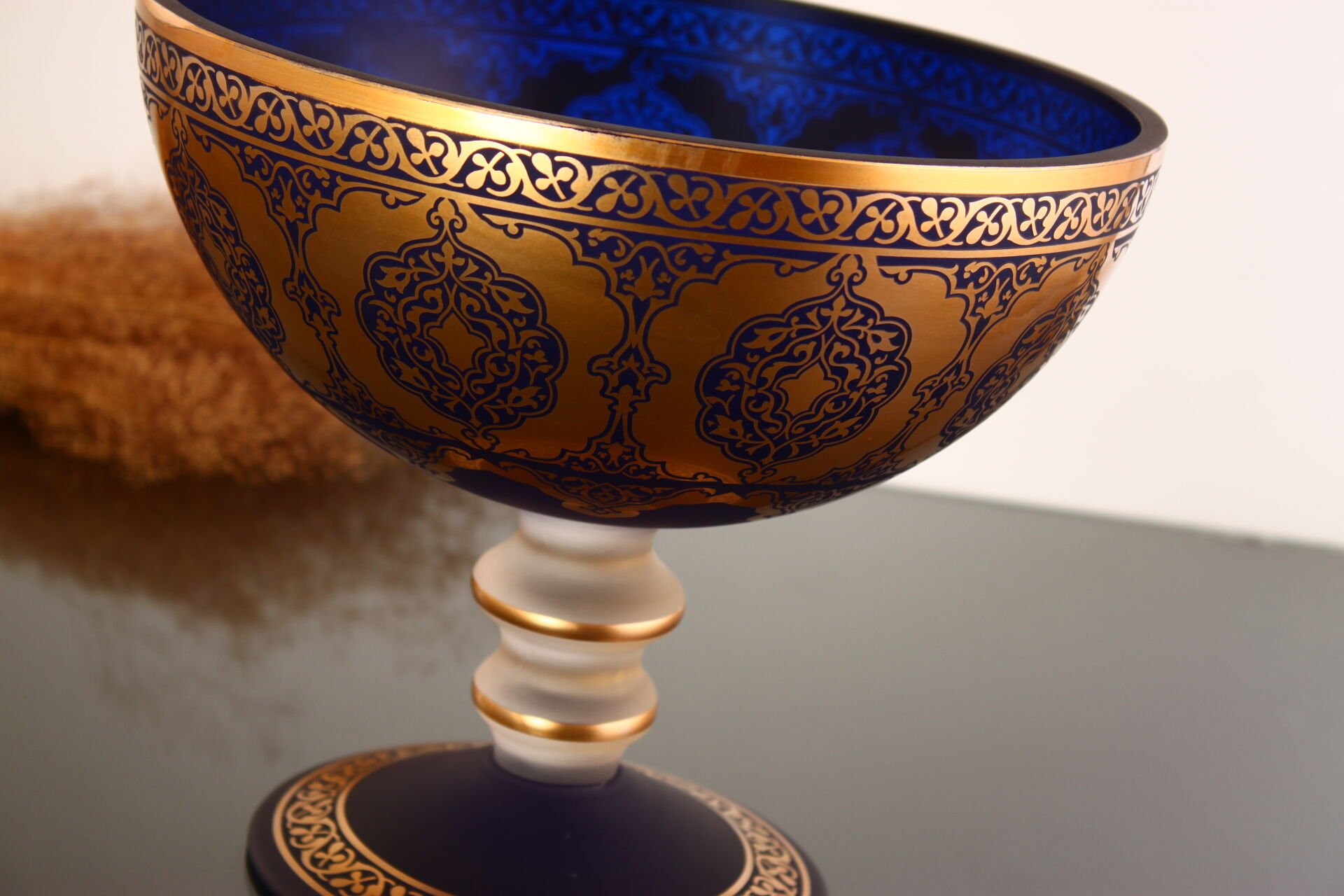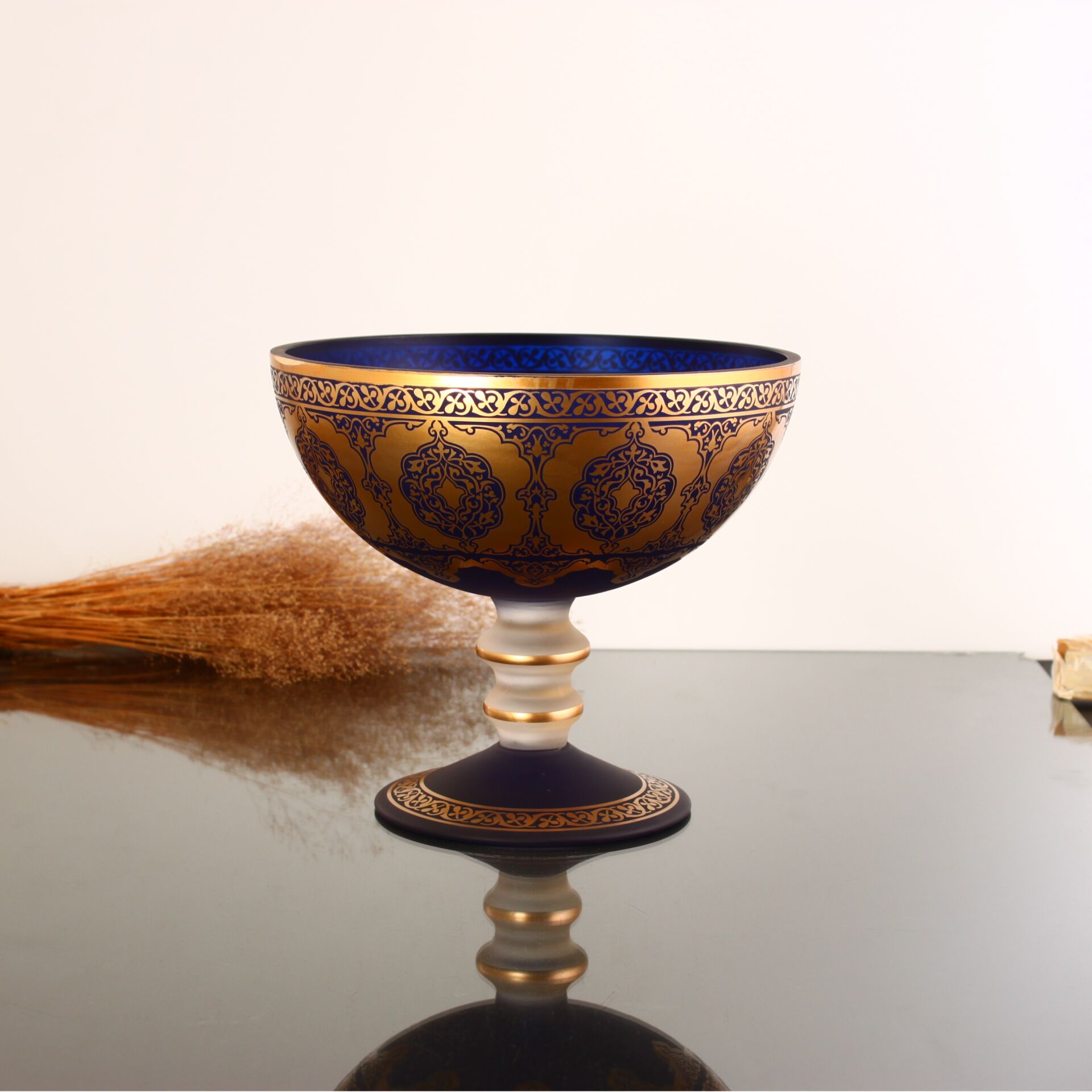 CİHARİ AYAKLI KASE MAVİ ALTIN