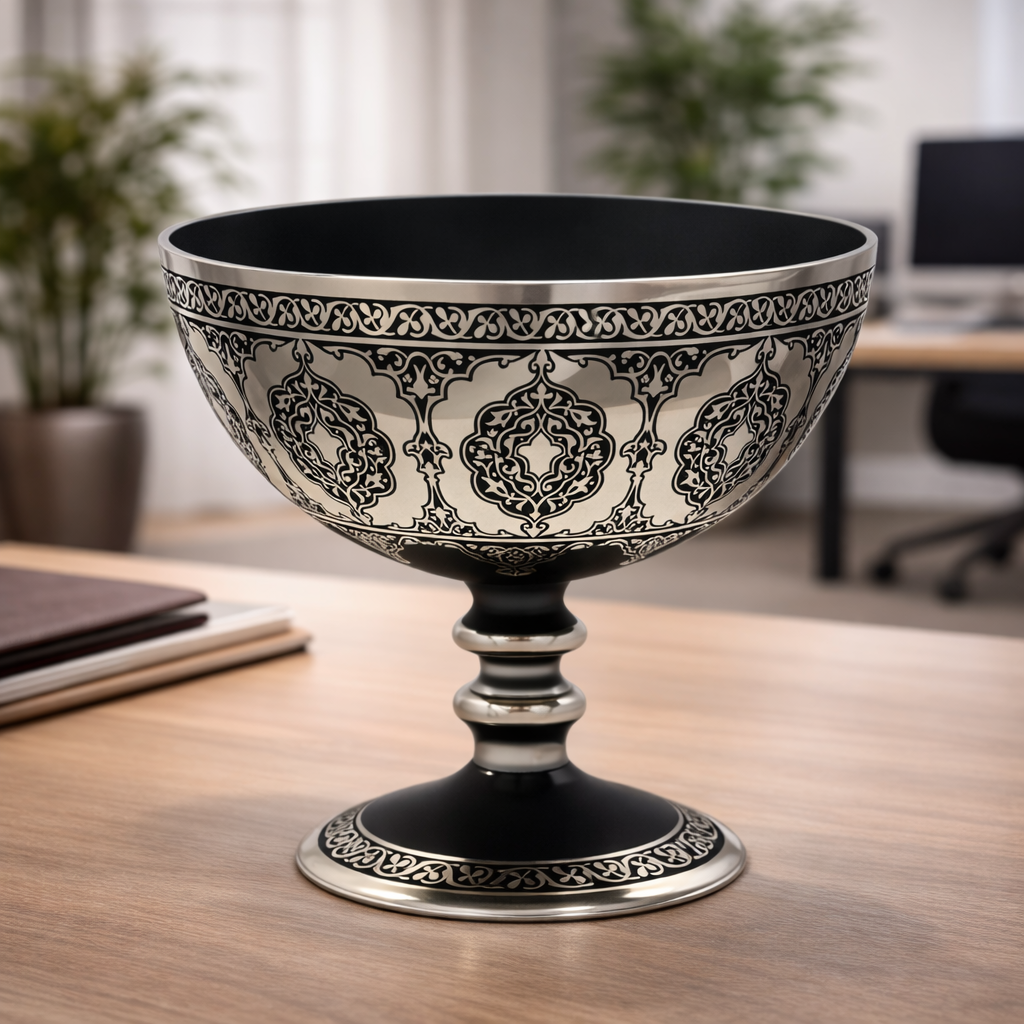 Geniş ve dengeli formu sayesinde masa, sehpa ve vitrin kullanımına uygun olan Cihari Meyvelik Platin, hem tek başına hem de set halinde kullanıldığında güçlü bir kompozisyon oluşturur. Üzerindeki platin desenler, geleneksel süsleme sanatlarının inceliğini yansıtırken; yüzeyin yumuşak geçişleri ürüne modern bir karakter kazandırır.