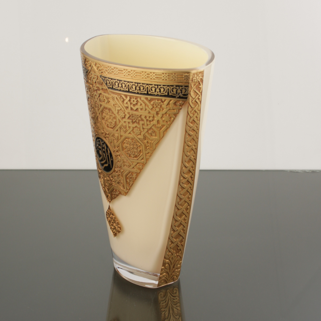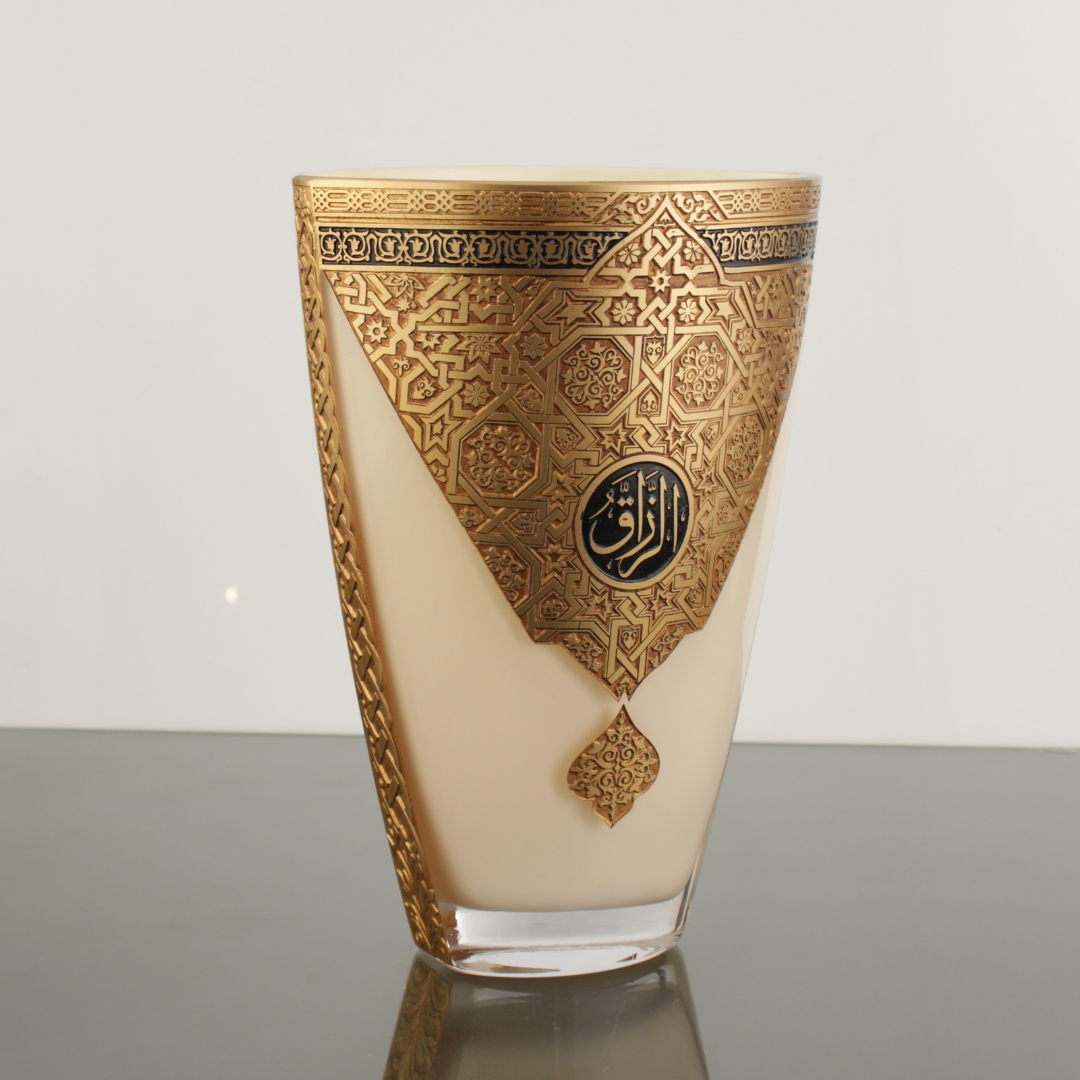 Bereketi temsil eden yeşil ton; huzur, yenilenme ve süreklilik hissini taşırken, altın detaylar nimetin kıymetini ve şükrün zarafetini simgeler. Selçuklu-Osmanlı motif dili ise bu manayı yalnızca yazıyla değil, estetik bir düzenle de anlatır: çizgilerin disiplini, yaprakların akışı ve ışığın cam üzerinde yayılışı aynı hikâyeyi fısıldar.