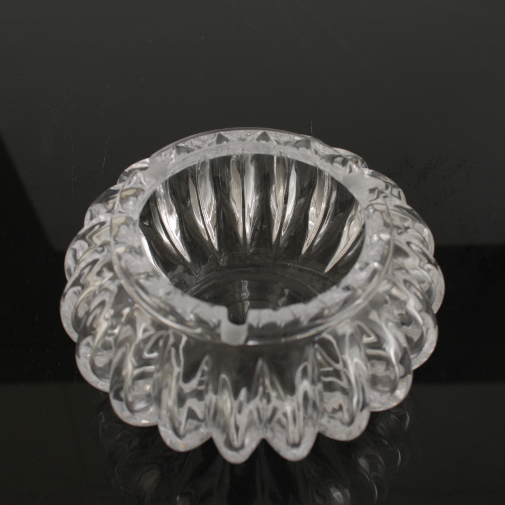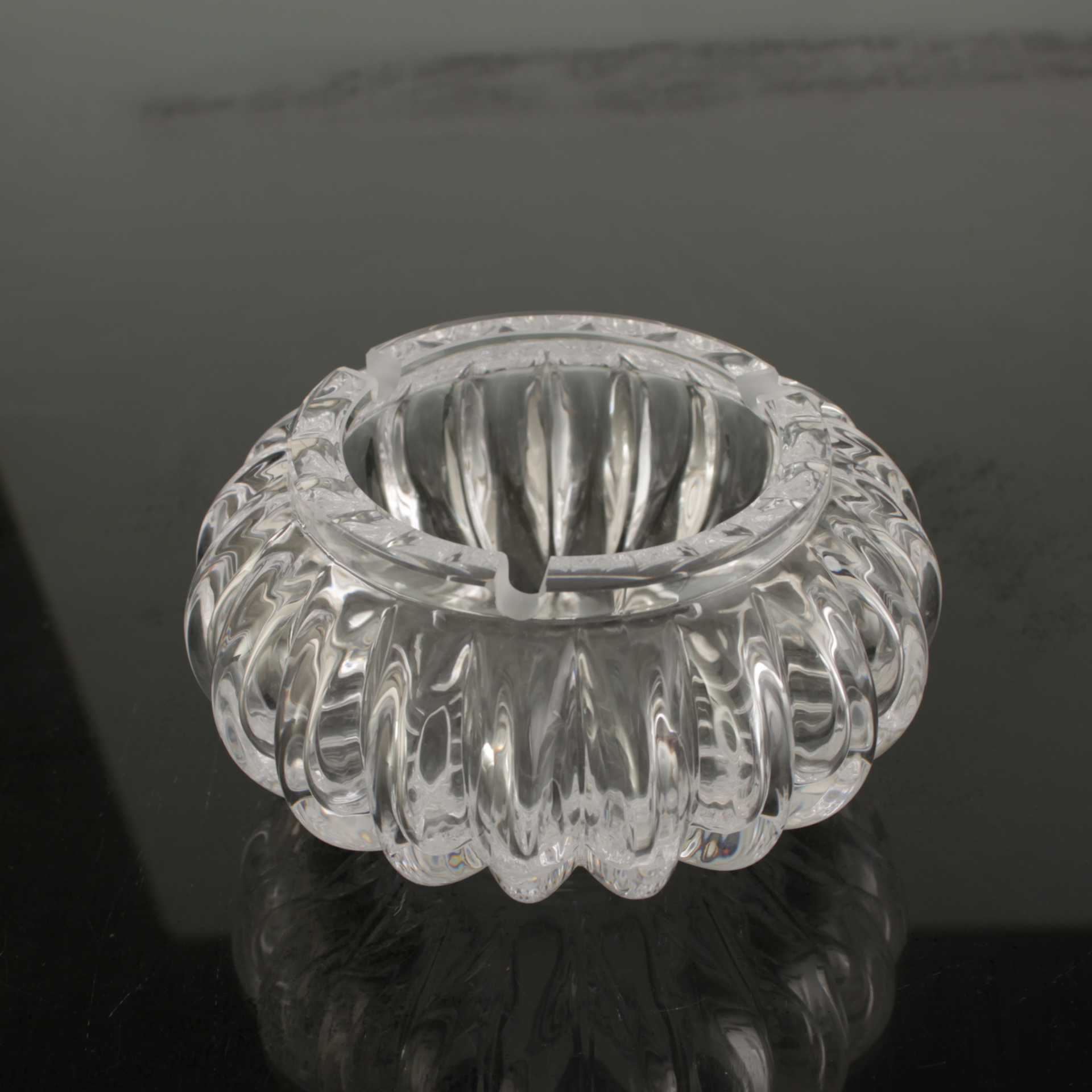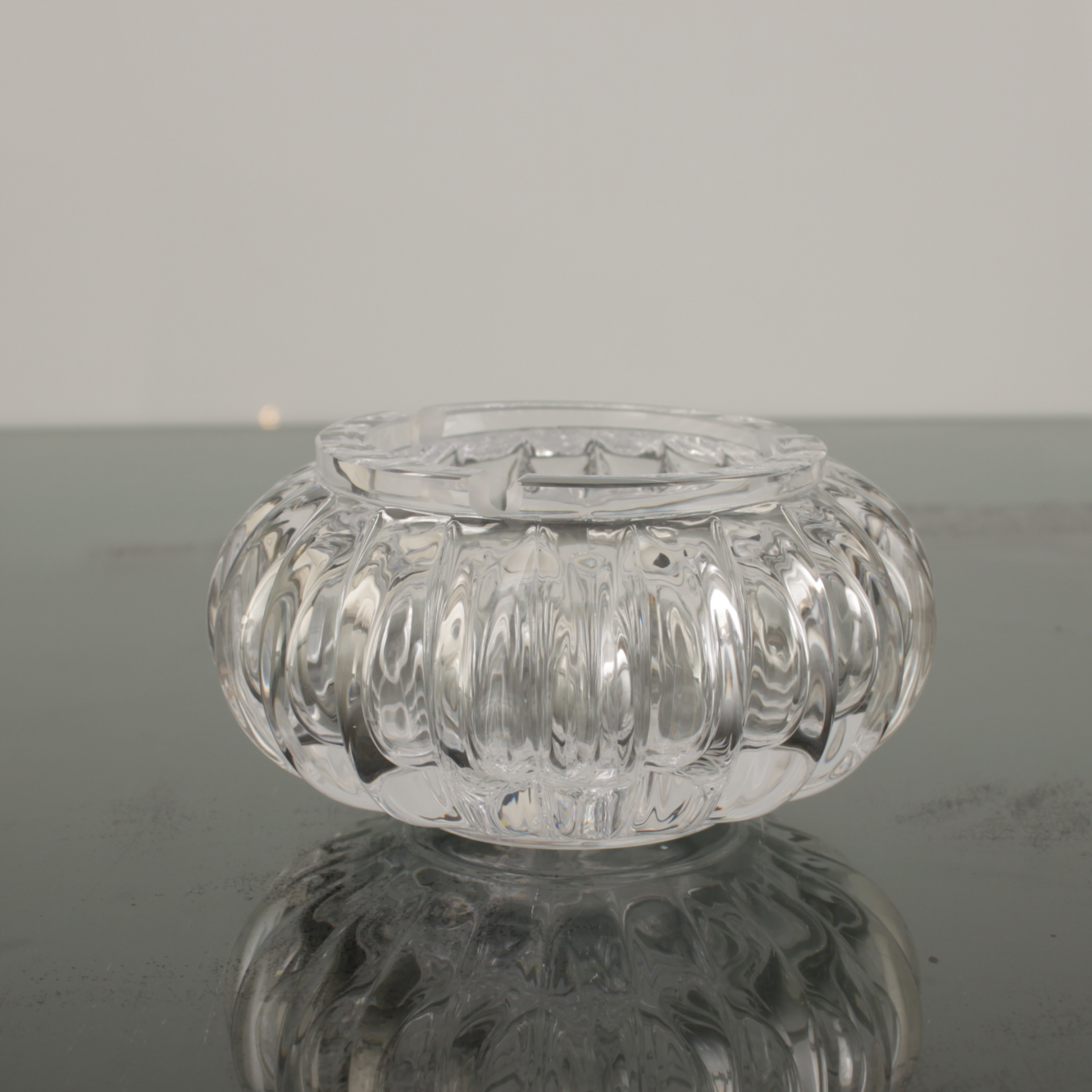 Zarif kıvrımlı formu ve kristal berraklığıyla göz alıcı bir duruş sergileyen bu el yapımı cam küllük, şıklığı ve işlevselliği bir araya getiriyor.