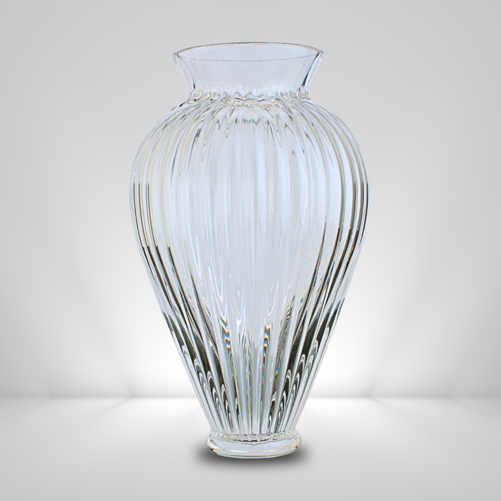 Kristal berraklığındaki cam dokusu ve dengeli formu sayesinde ister taze çiçek aranjmanlarıyla, ister tek başına bir dekoratif sanat objesi olarak kullanıma uygundur.