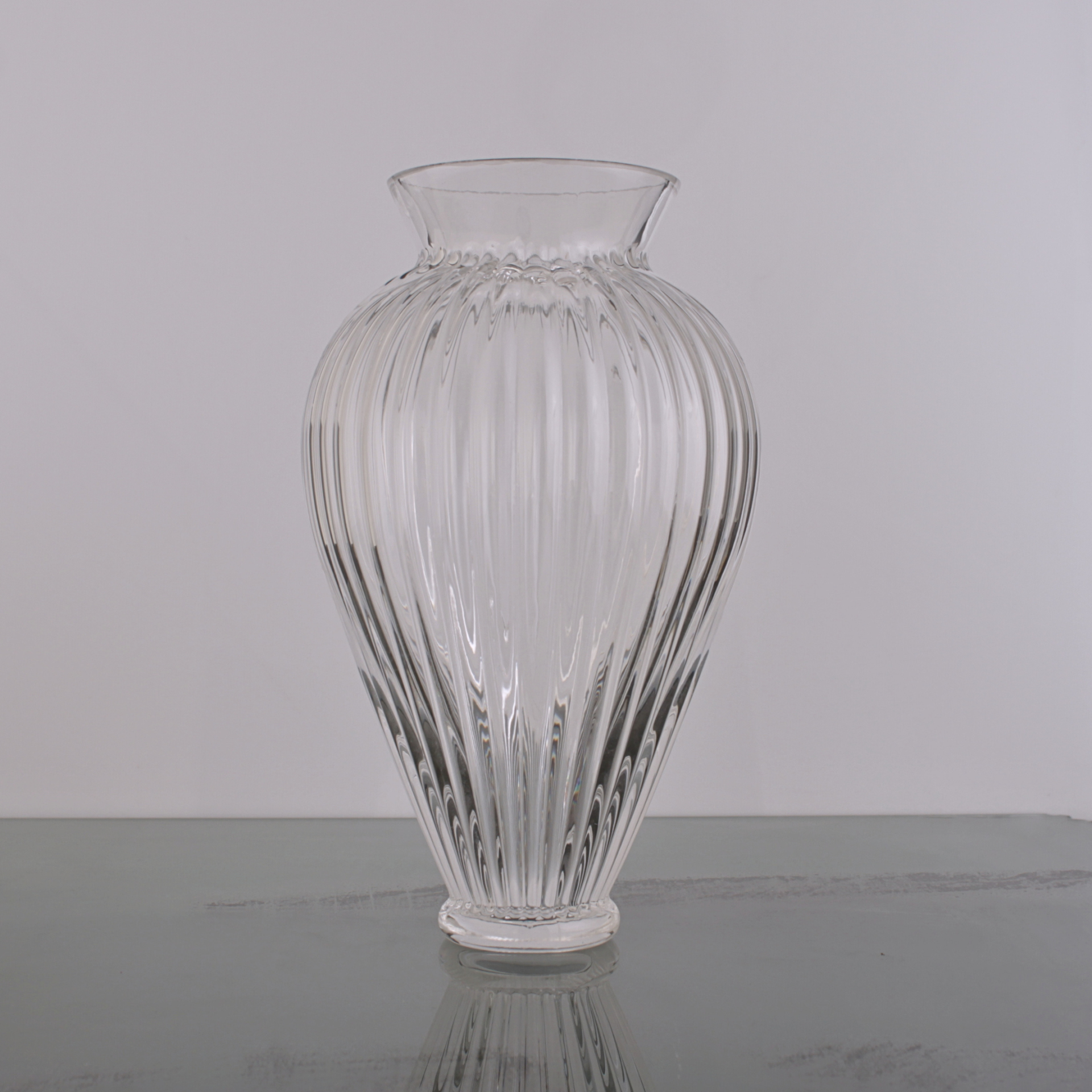 Bu el yapımı çizgili cam vazo, zarif silueti ve ustalıkla işlenmiş dikey hatlarıyla her ortamda sofistike bir atmosfer yaratır.