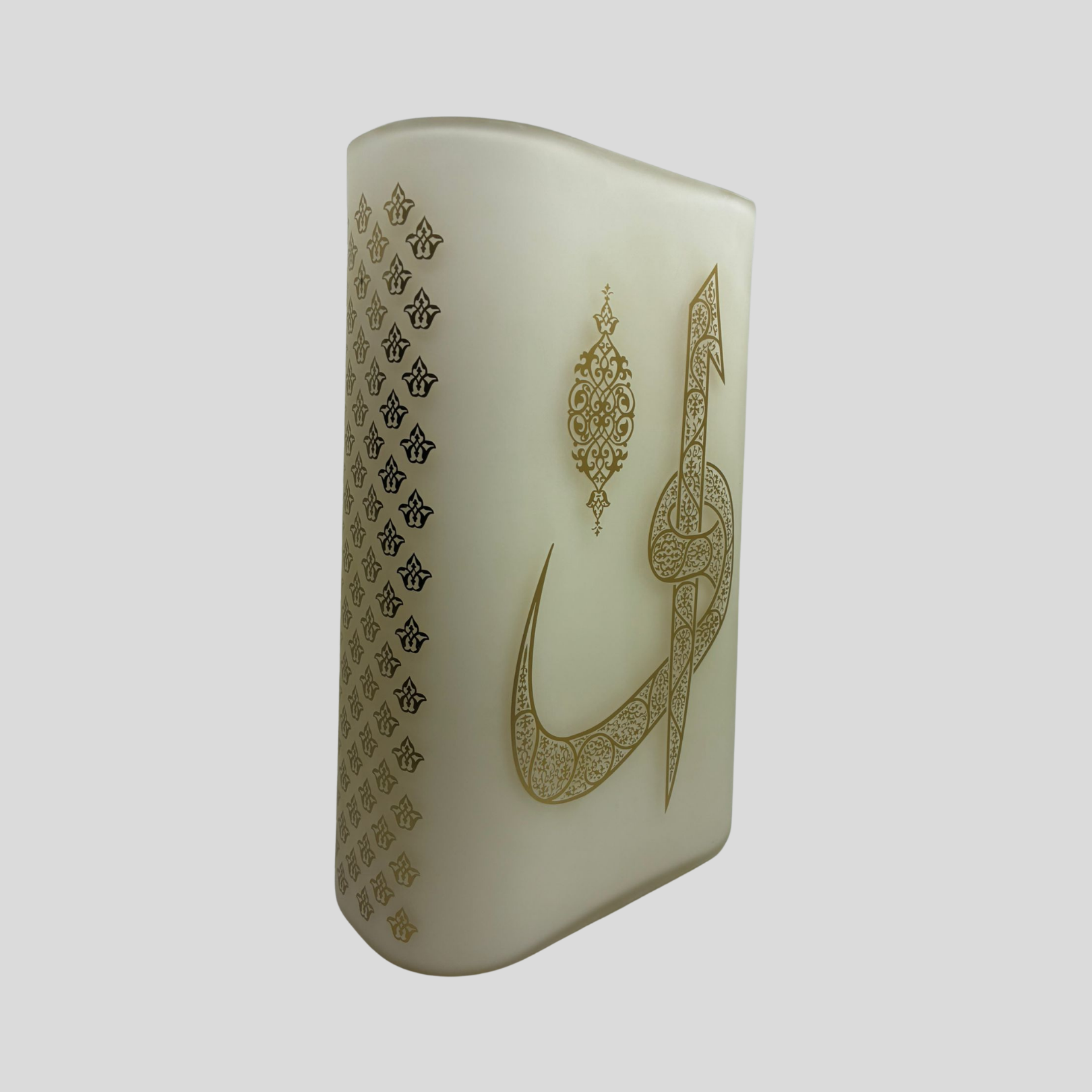 Elif & Vav Vazo, Elif’in tevhidi ve Allah’ın mutlak birliğini simgeleyen anlamıyla; Vav’ın insanın yaratıcıya yönelişini, tevazusunu ve teslimiyetini temsil eden dilini cam sanatında buluşturan özel bir eserdir. Bu iki harfin birleşimi, insan ile Yaratıcı arasındaki manevi bağın sembolü olarak okunur; eser de bu bağı, modern bir form ve rafine bir duruşla görünür kılar.