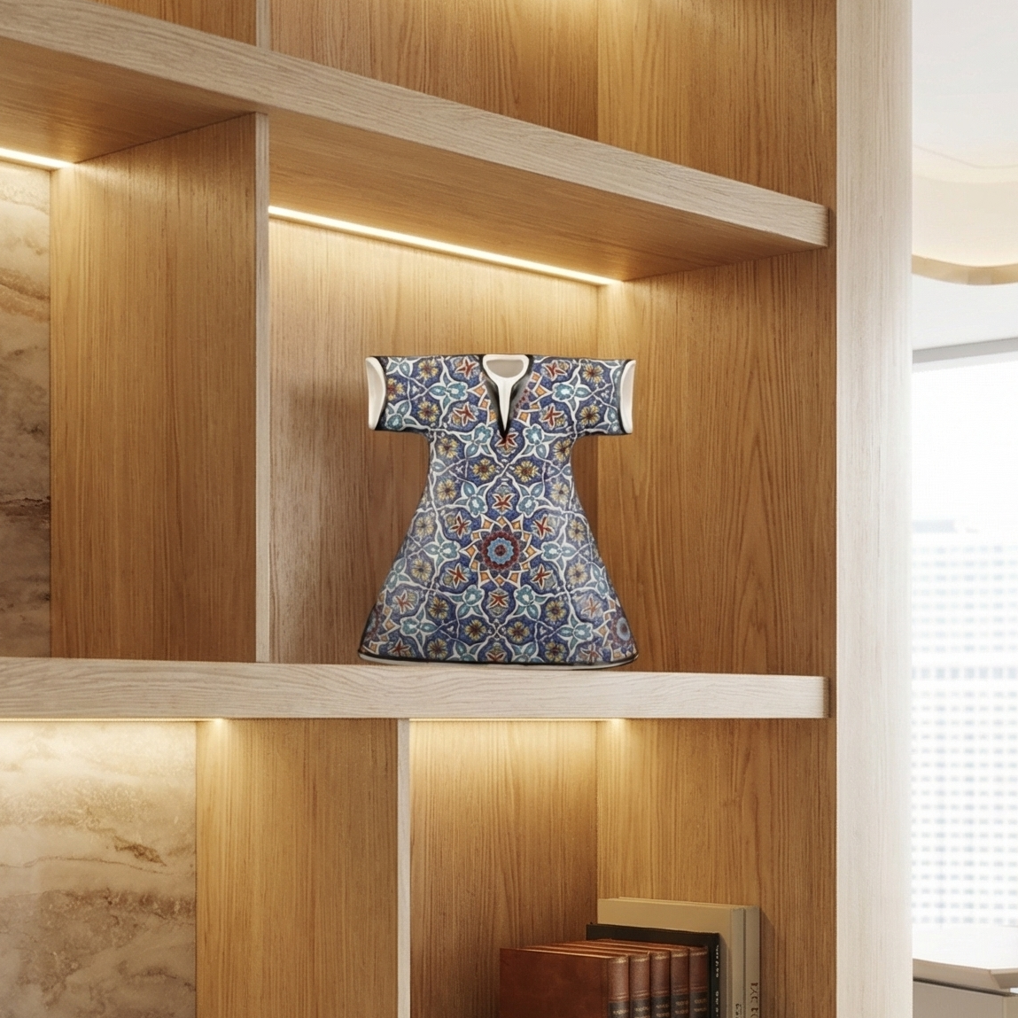 El yapımı çini kaftan obje; Enderun geleneğini çağdaş bir dille yorumlayan seçkin parça.