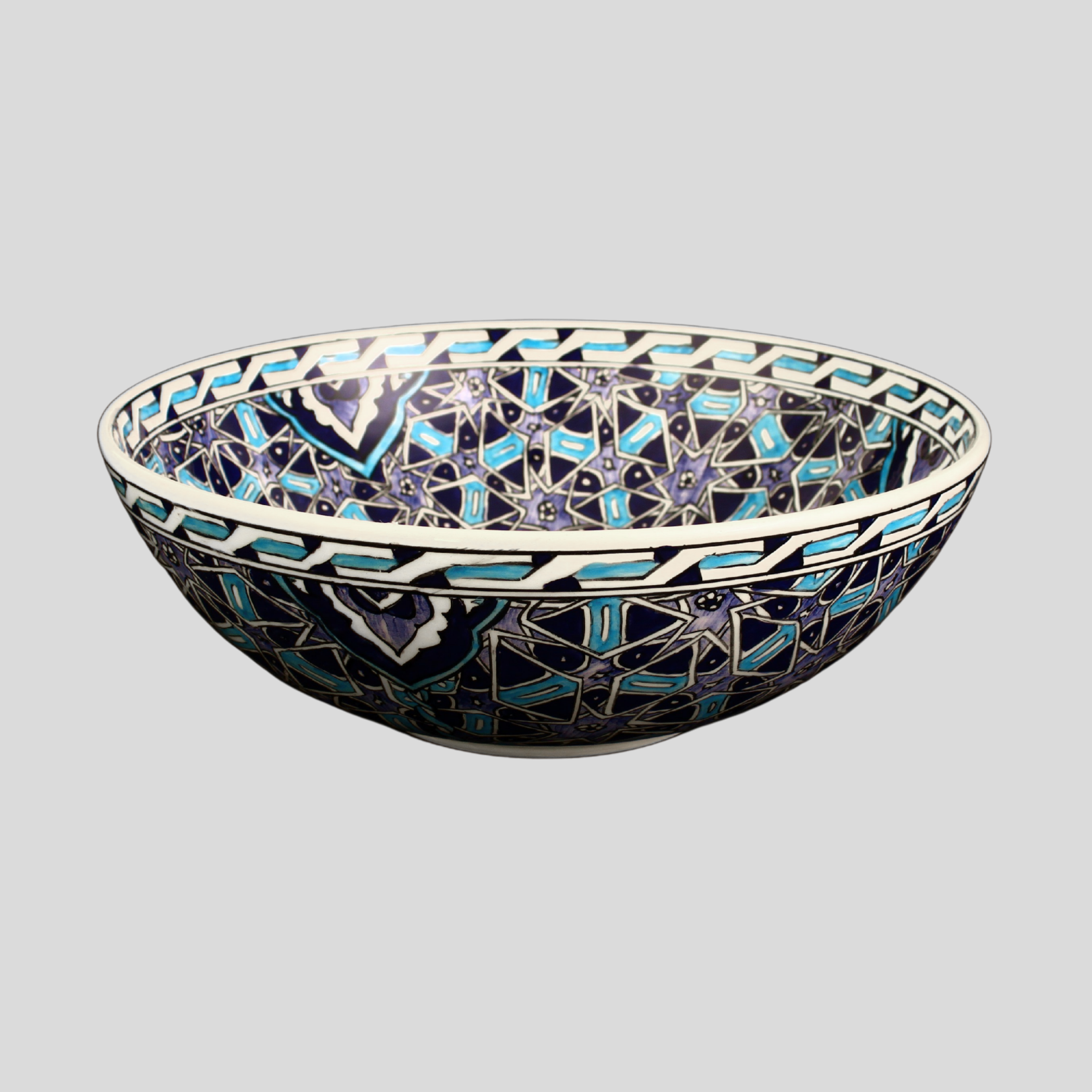 Selçuklu estetiği; kudreti abartıyla değil, oran ve disiplinle anlatır. Bu eserde sultan mavisi o disiplinin rengi gibi durur: güçlü, asil ve net. Geometrik kurgunun kararlılığına floral çizgilerin inceliği eşlik eder; sonuç, gelenekten beslenen ama bugünün mekânına çok temiz oturan bir yorumdur.