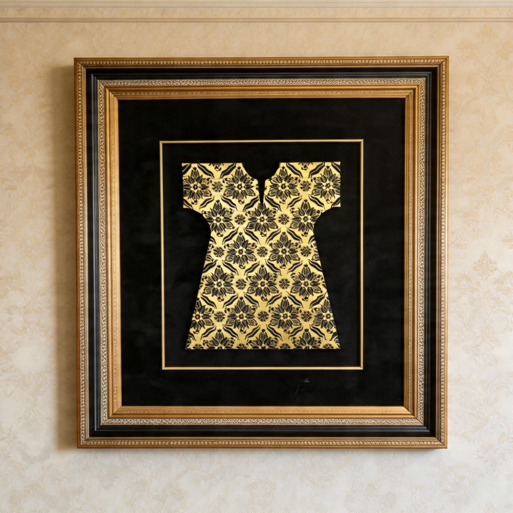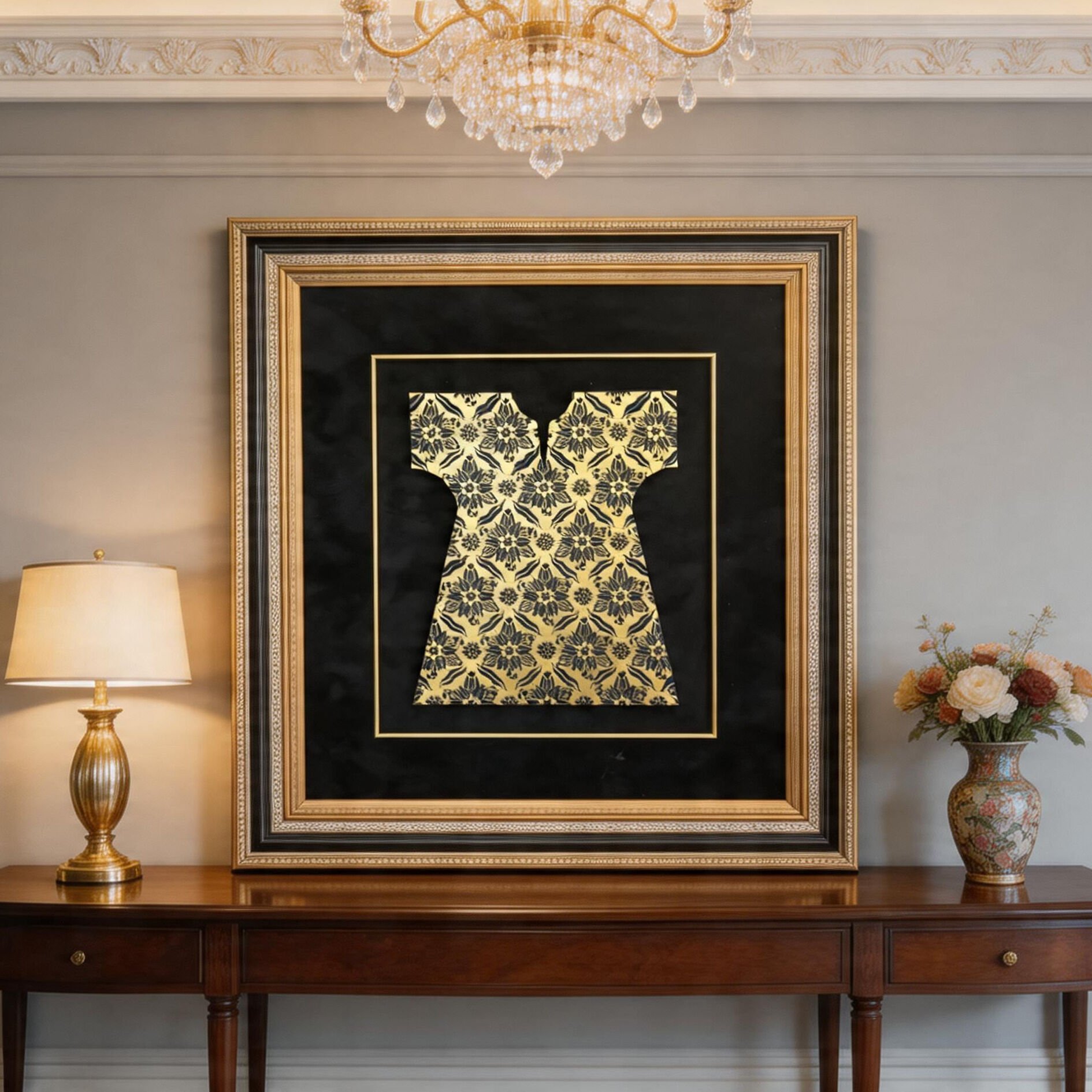 - Malzeme: Cam, altın görünümlü boya, çerçeveli dekoratif uygulama