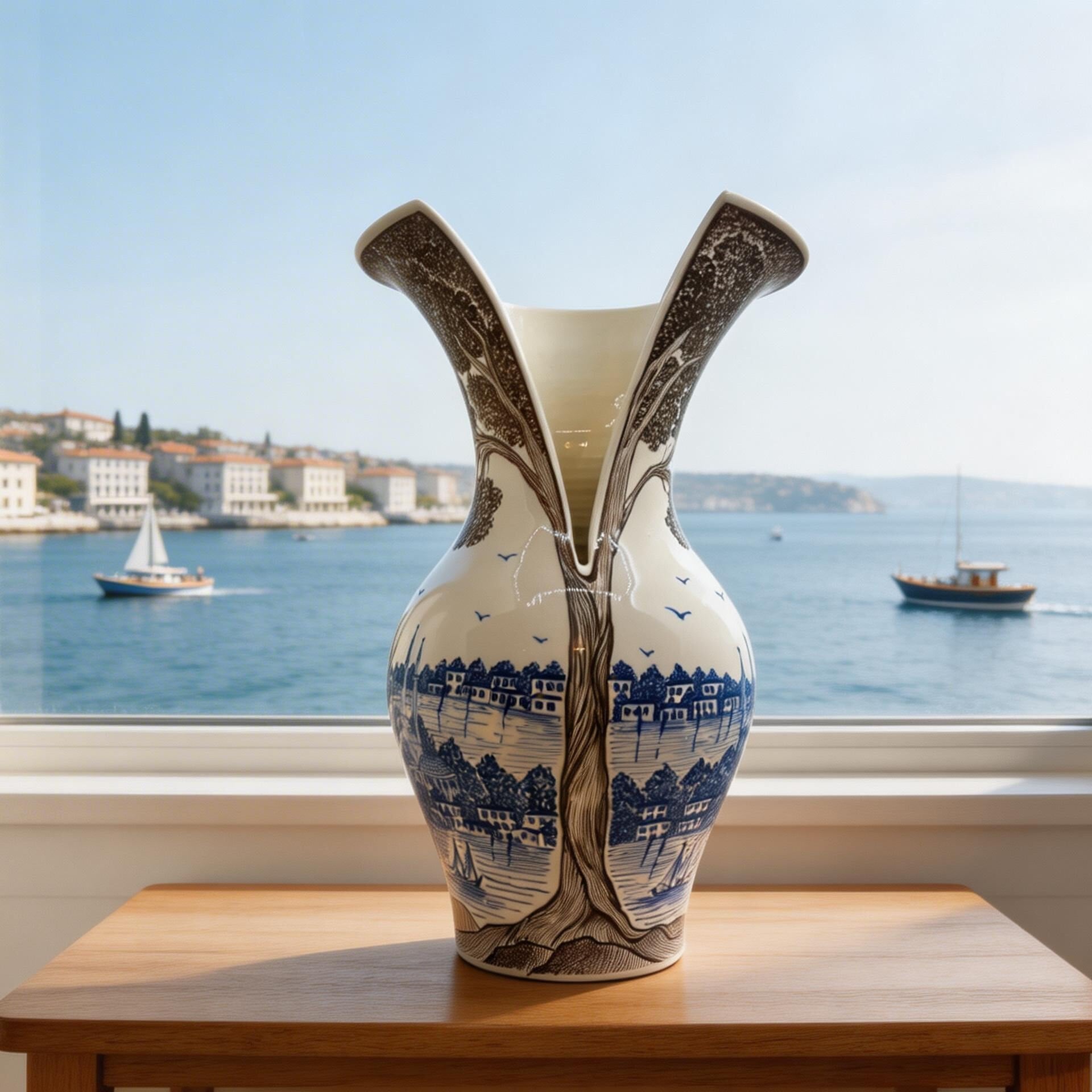 HAYAT AĞACI İSTANBUL MAVİ&KAHVE VAZO