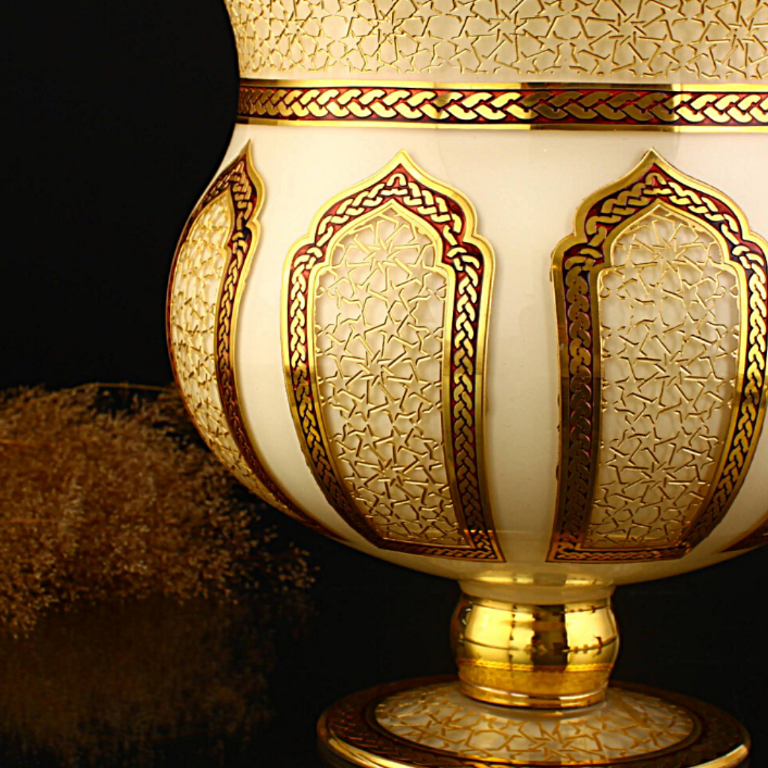 İşçilik: 24 ayar altın detaylar ve geleneksel cam süsleme teknikleri