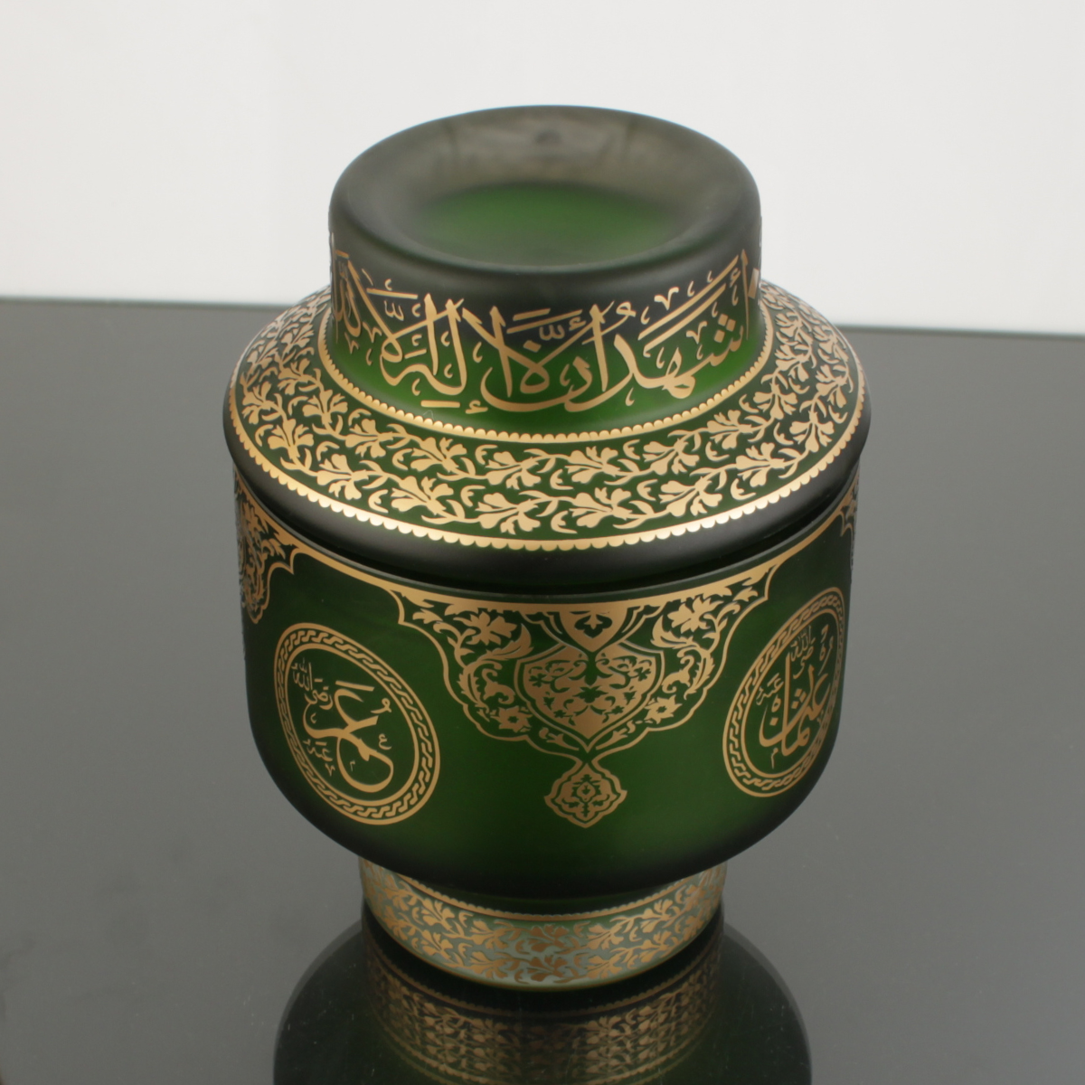 Bu eser, dört büyük halifenin isimlerini camın zarif yüzeyinde bir araya getirir. Üzerindeki Kelime-i Tevhid, bu yolun merkezindeki inancı simgeler; hat ve motif birlikteliği ise esere manevi bir denge kazandırır. Böylece Hilafet Şekerlik, yalnızca dekoratif bir obje değil, anlamı olan bir koleksiyon parçası hâline gelir.