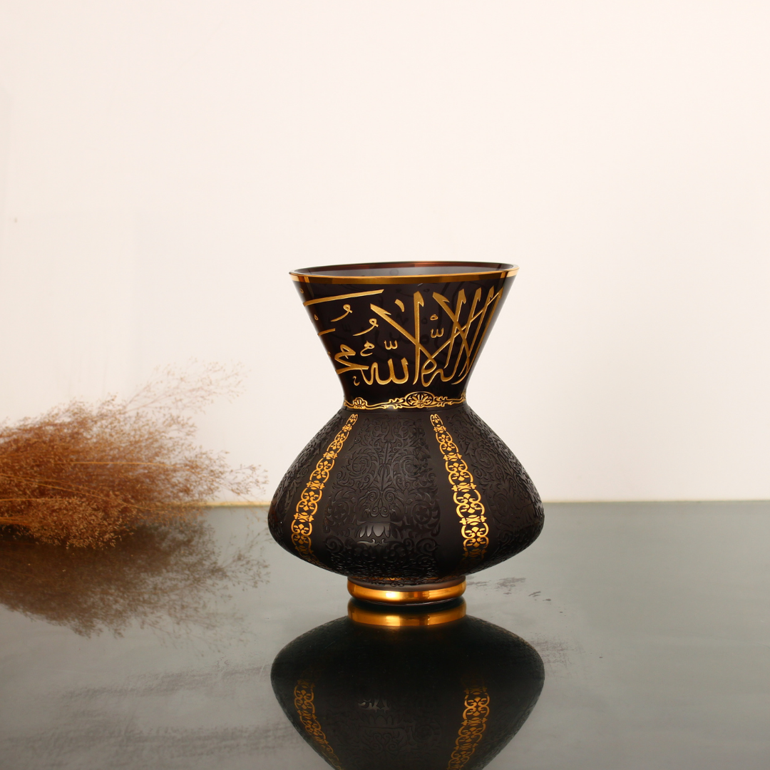 Hünkar Mahfili Vazo, Osmanlı padişahlarının ibadet ettikleri özel mekânlardan ilham alarak tasarlanmış, zarafet ve ihtişamı cam sanatının incelikleriyle buluşturan nadide bir eserdir. Ayasofya’daki Hünkar Mahfili’nin zarif motifleri, el işçiliğiyle cam yüzeye işlenerek tarihin sanatsal bir yorumu haline getirilmiştir.