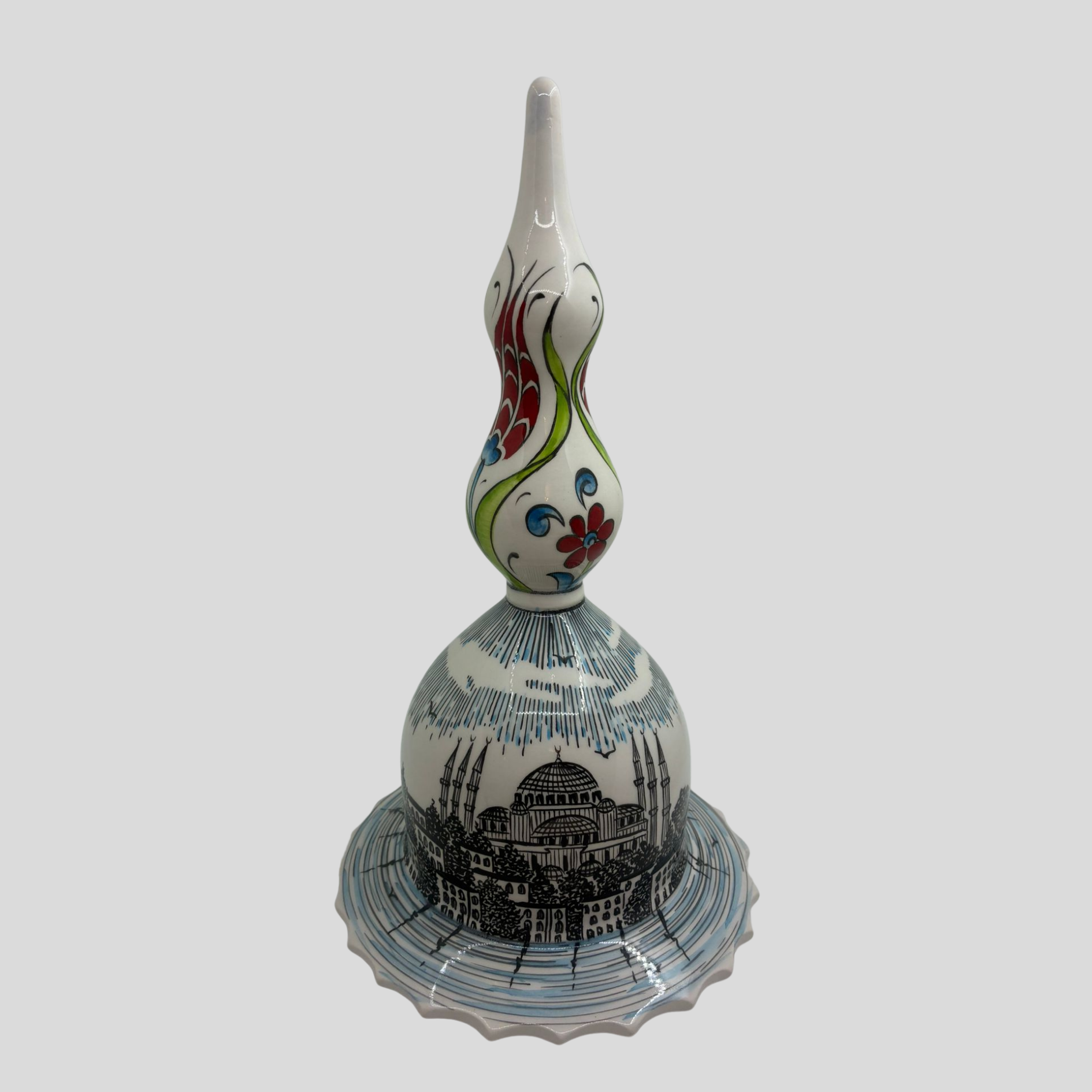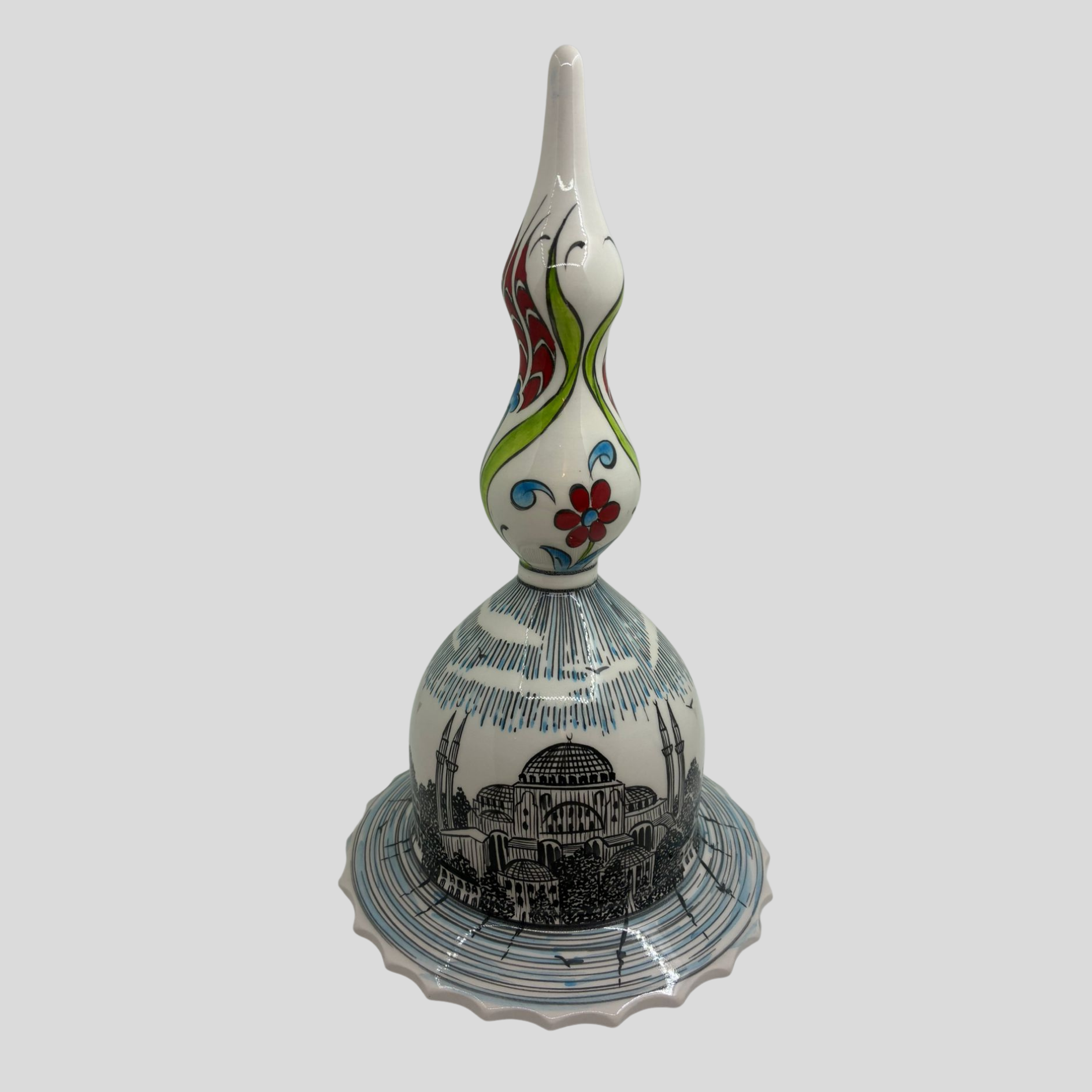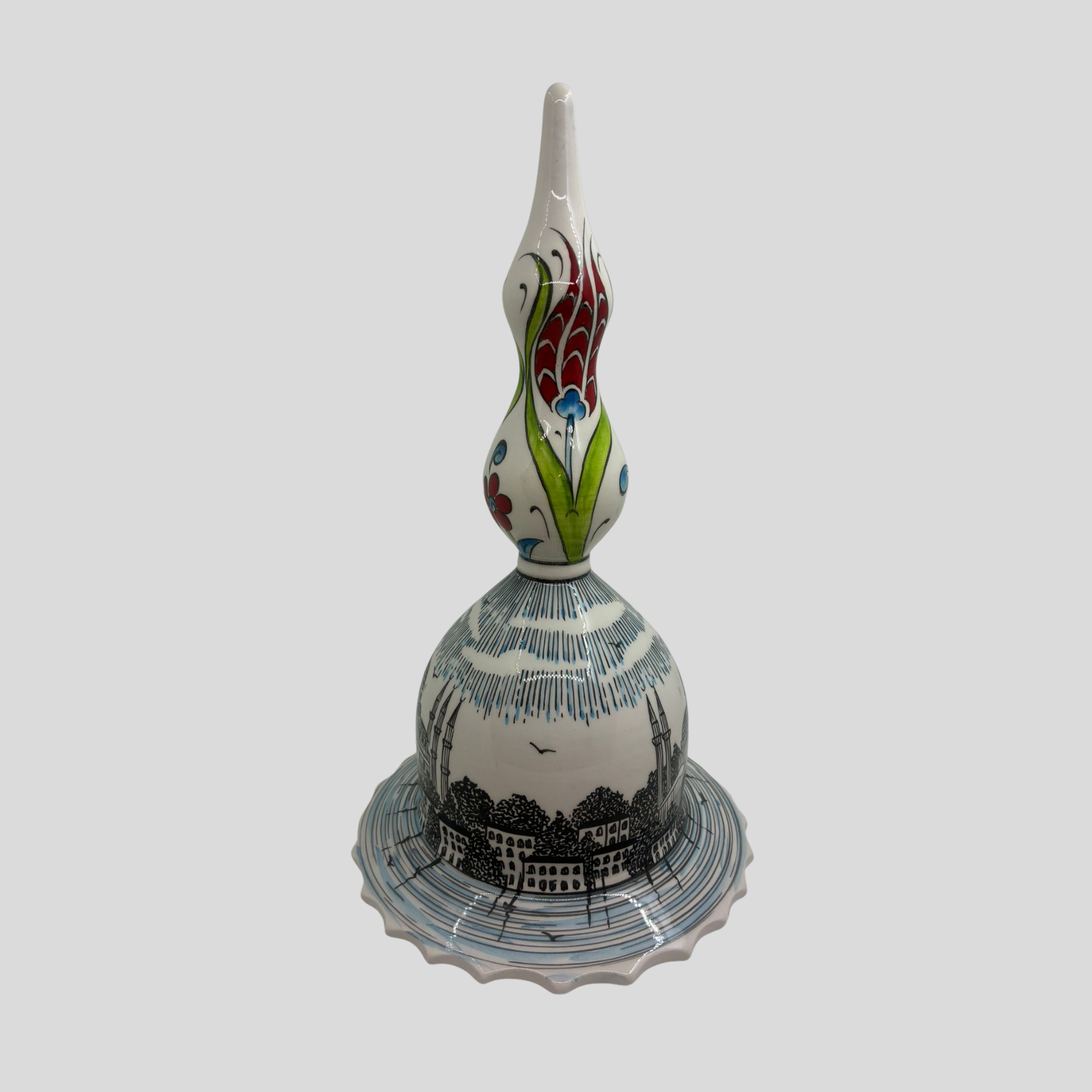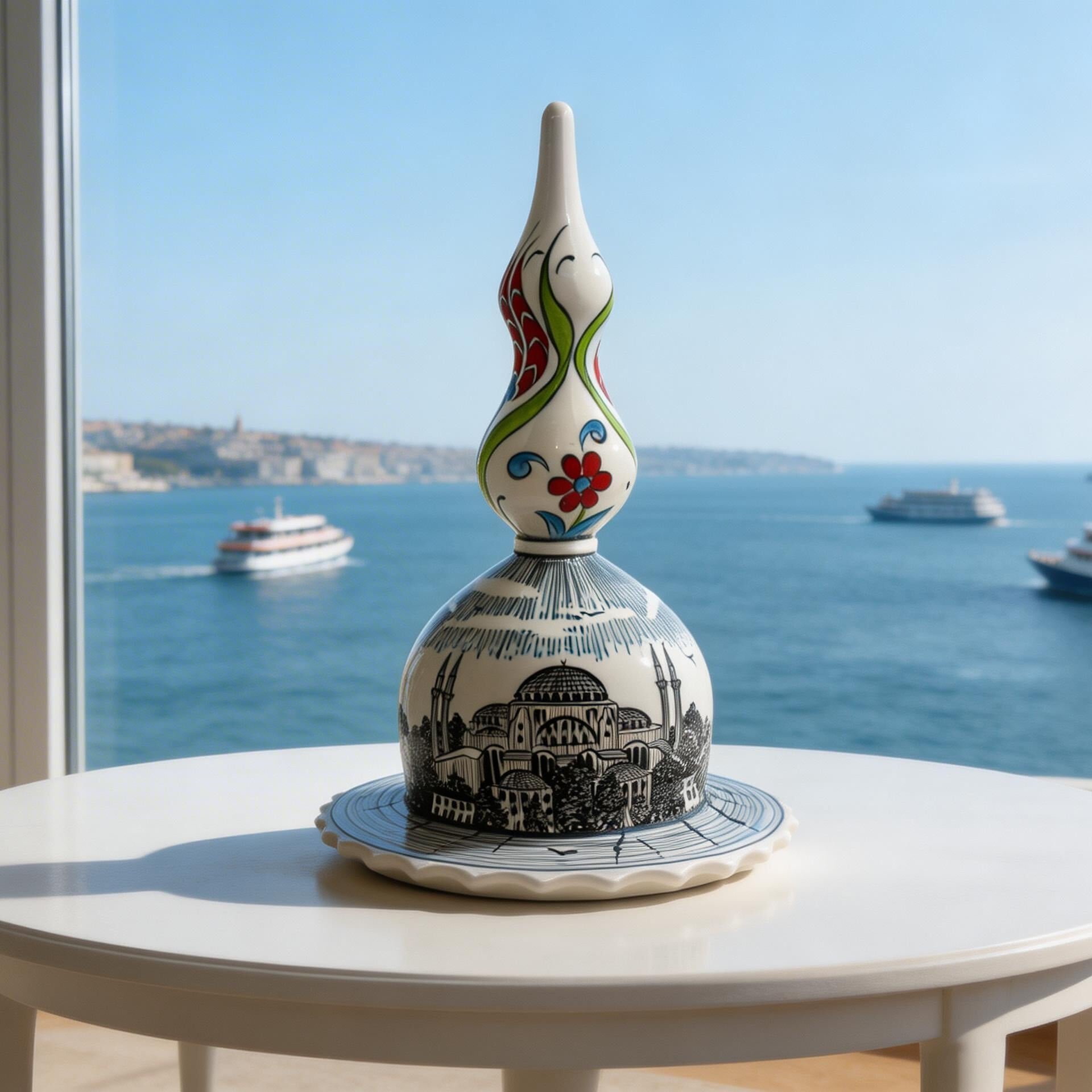 Ürünün alt kısmında yer alan İstanbul silüeti, geçmişin ihtişamını bugünün yaşam alanlarına taşırken; üst formda kullanılan lale motifleri ve geleneksel desenler, Anadolu’nun estetik mirasını yansıtır. İstanbul Kubbe, yalnızca bir dekoratif obje değil; aynı zamanda kültürel bir anlatıdır.