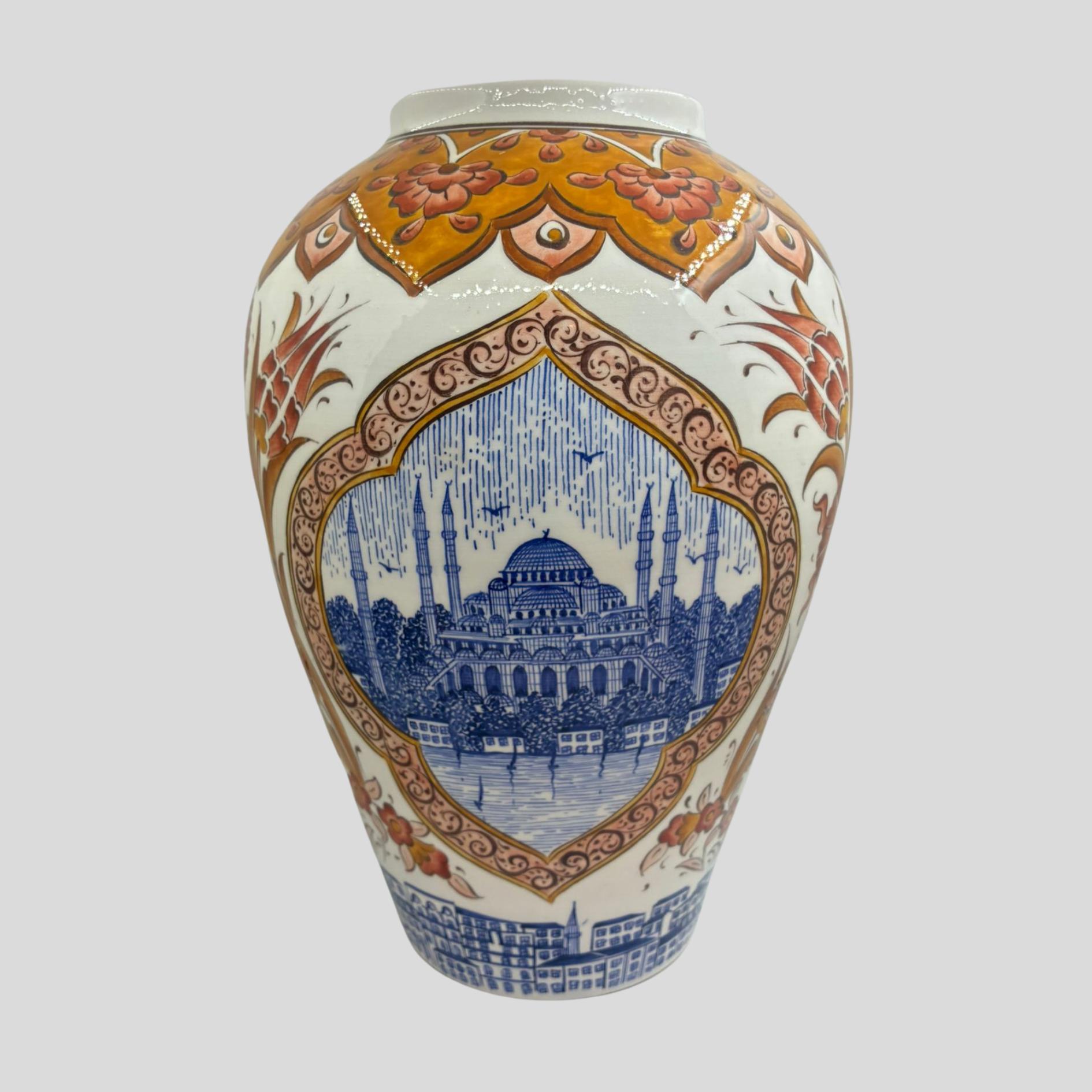 Ürün seramik çini malzemeden üretilmiştir. Dekoratif kullanım için tasarlanmış, kültürel anlatımı güçlü özel bir tasarımdır.