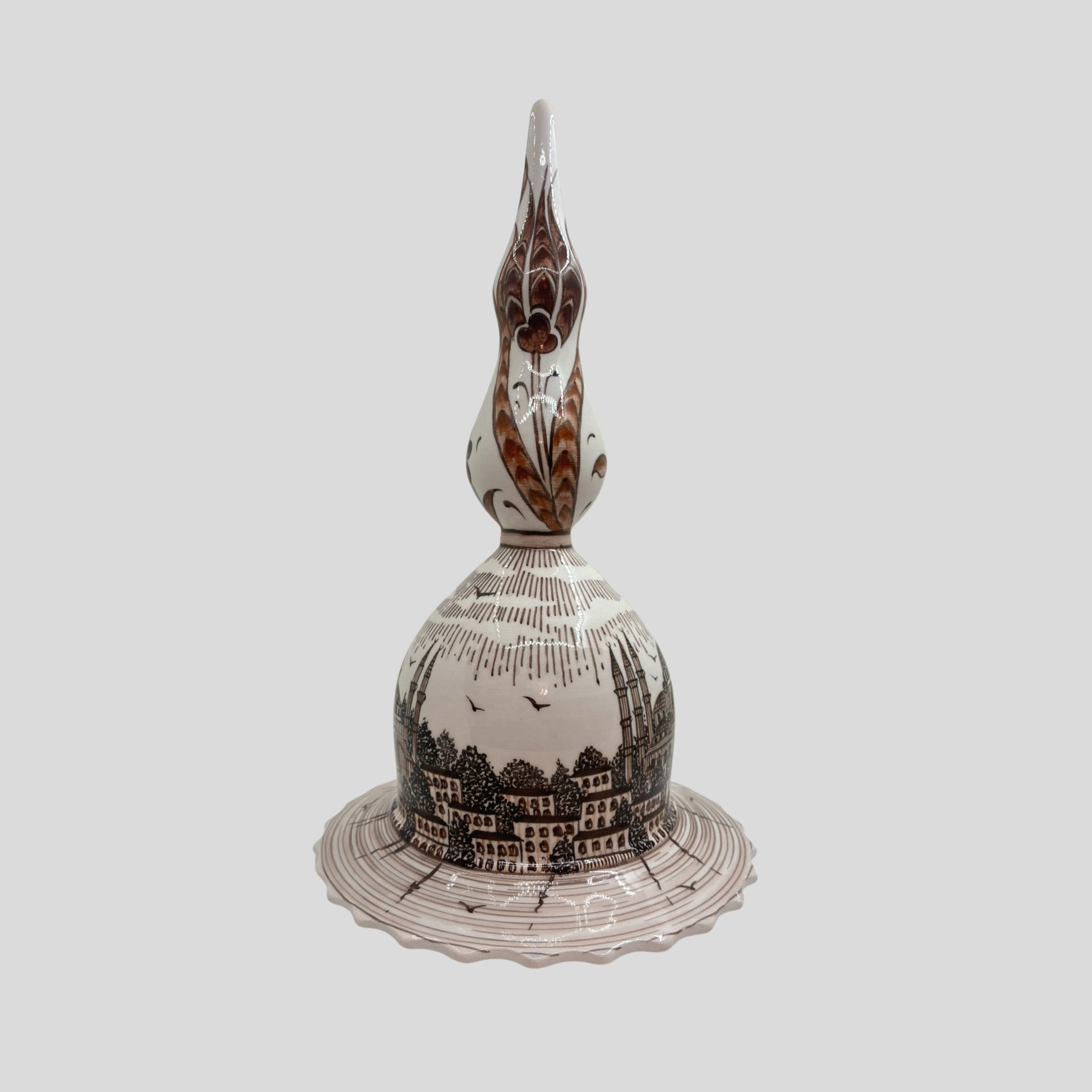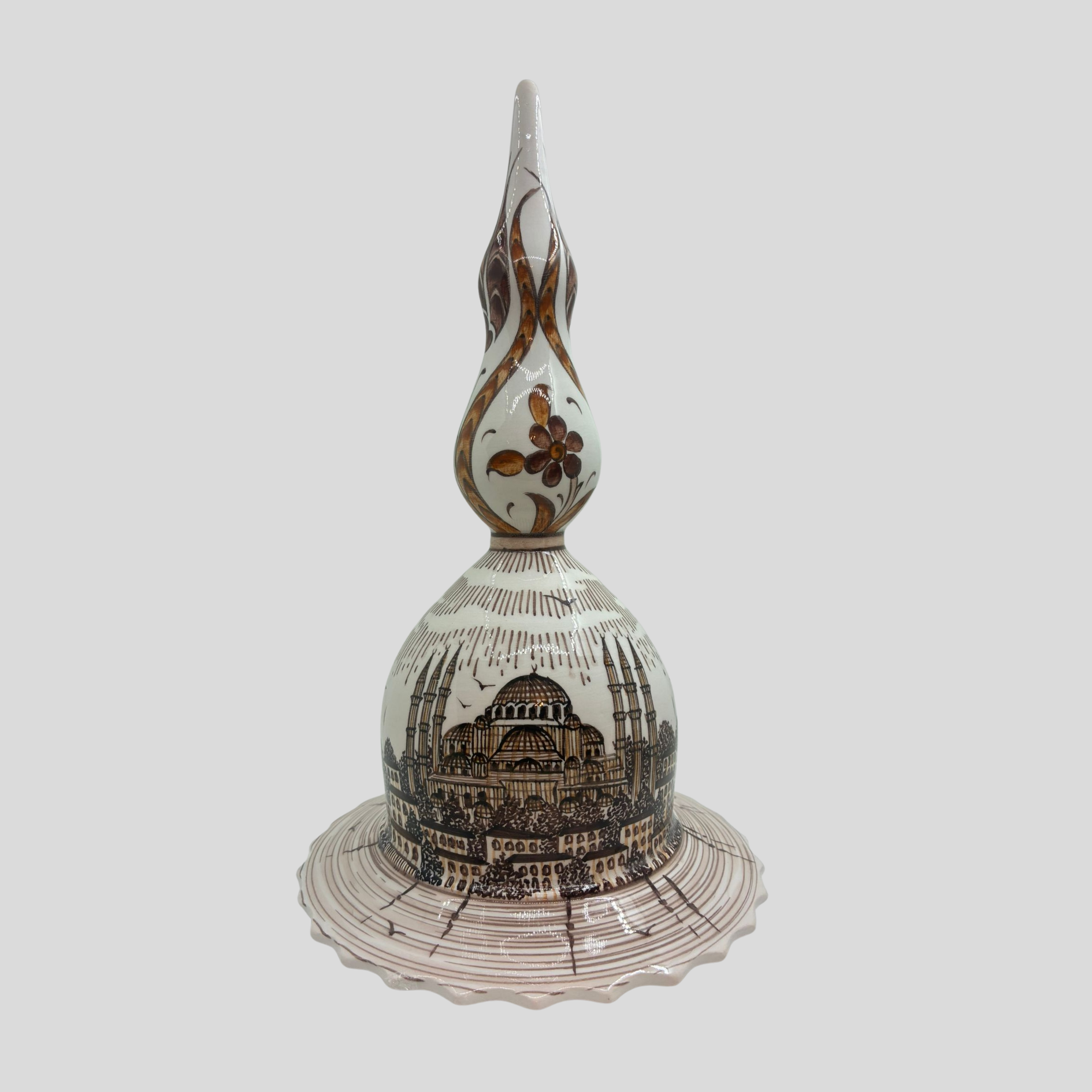 İstanbul Lalesi Kubbe, İstanbul’un eşsiz silüetini ve geleneksel çini sanatının inceliğini bir araya getiren özel bir tasarımdır. İstanbul Lalesi Kubbe, klasik kubbe mimarisinden ilham alırken, üzerindeki detaylı şehir betimlemesi ile adeta bir hikâye anlatır.