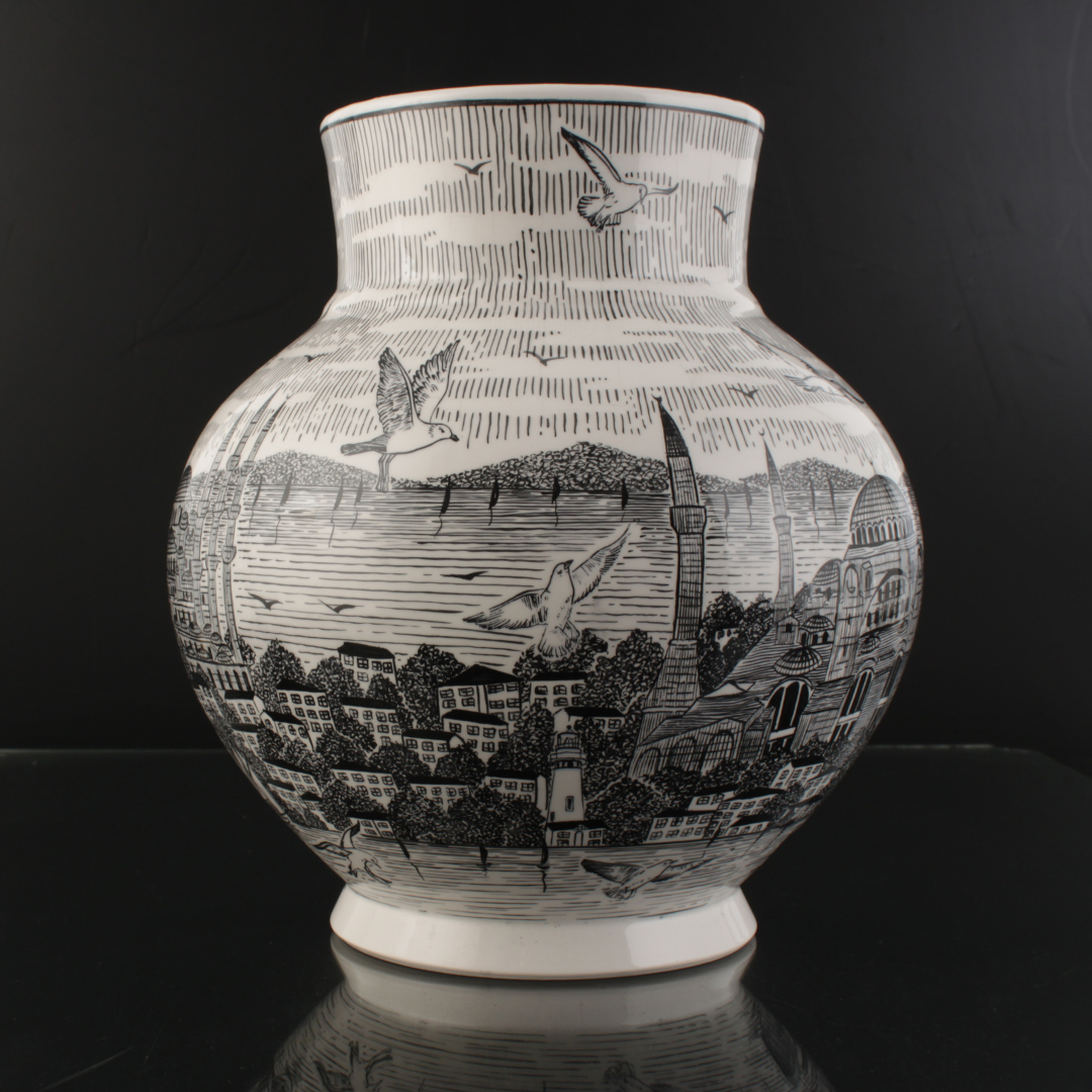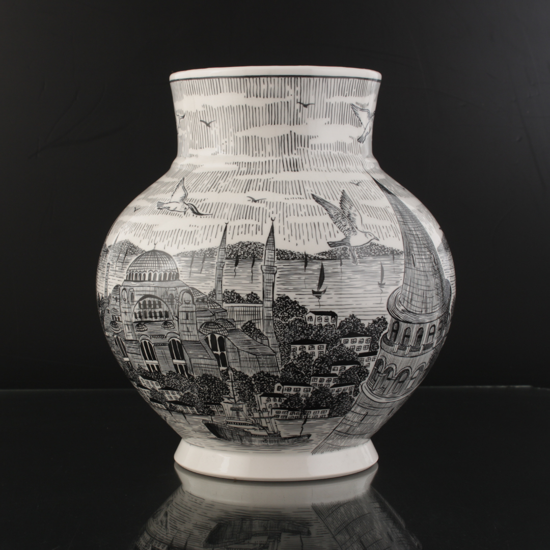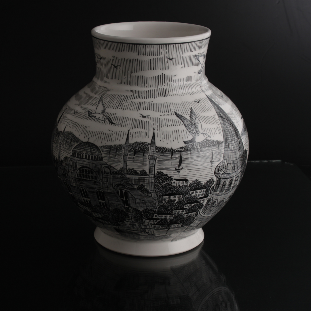 İstanbul Silueti Çini Ata Vazo