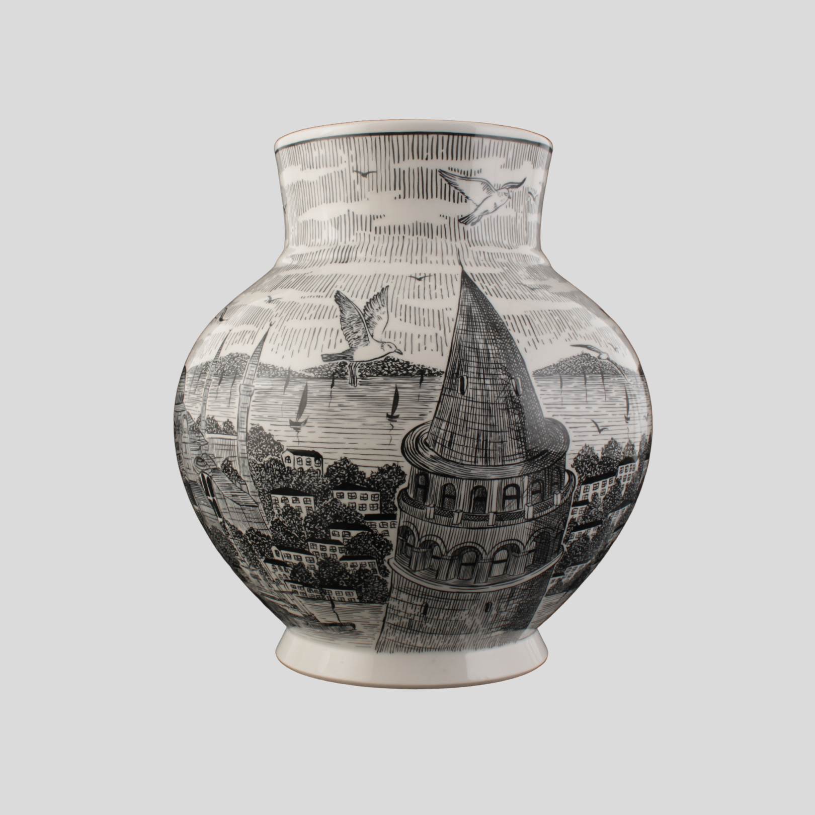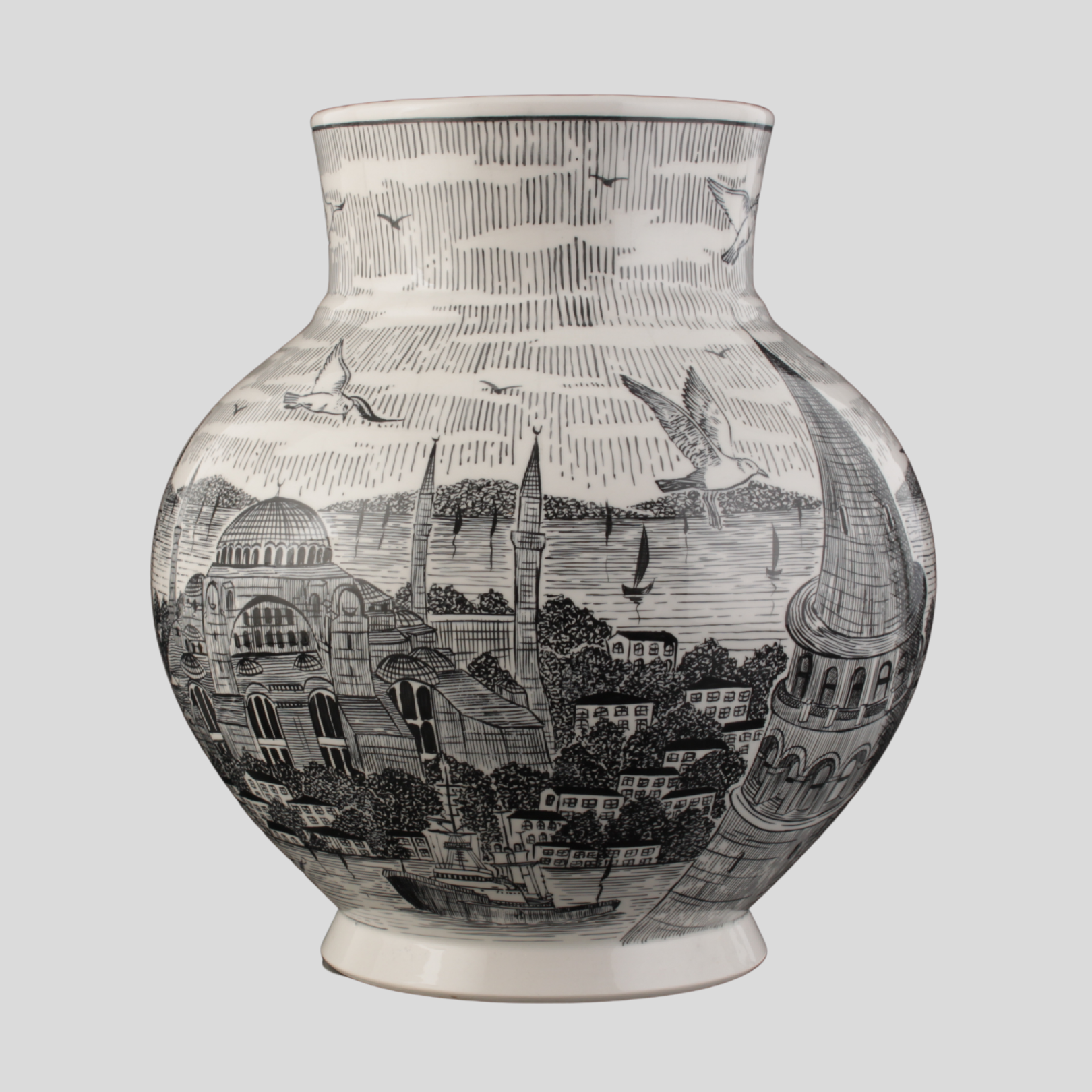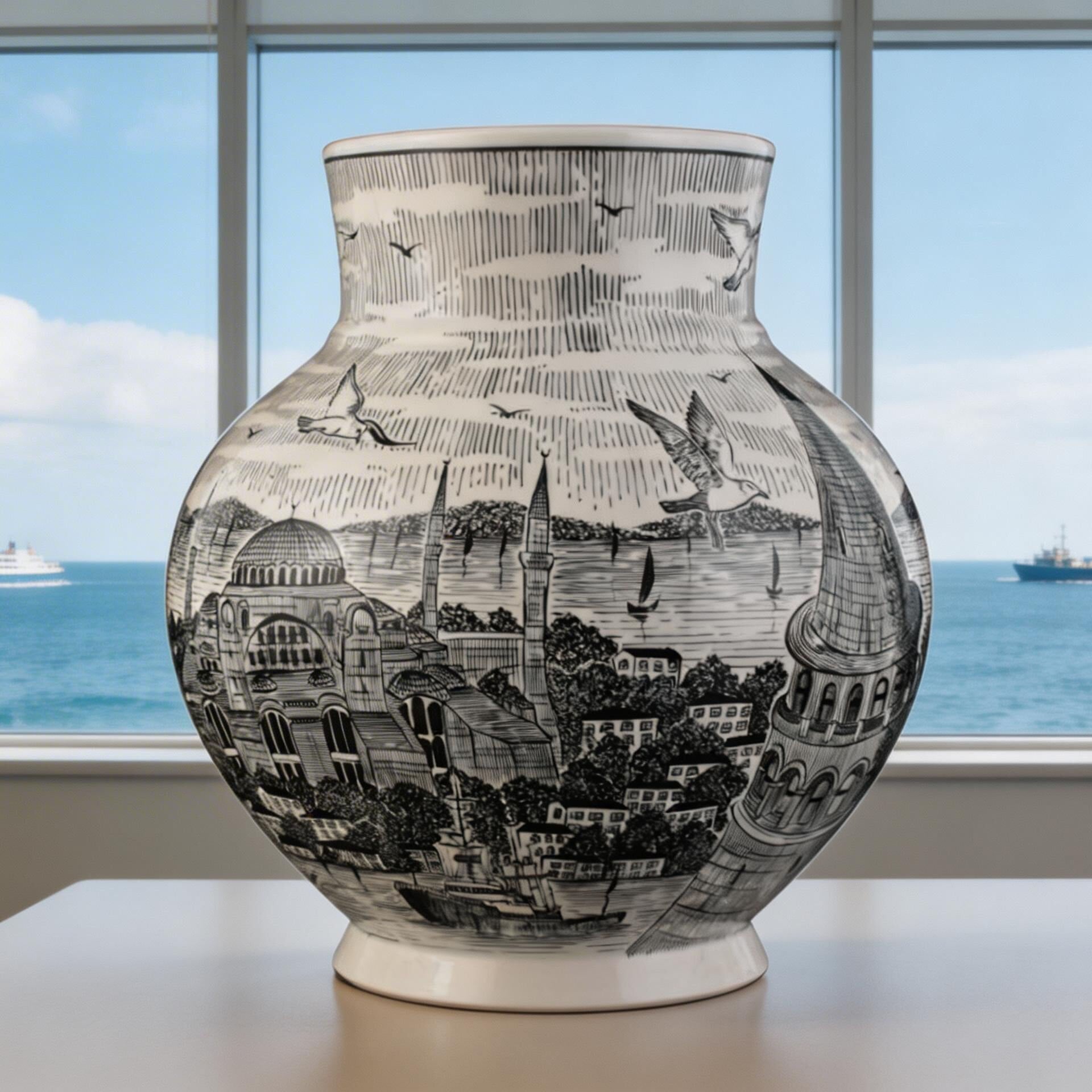 İstanbul Silueti Çini Ata Vazo