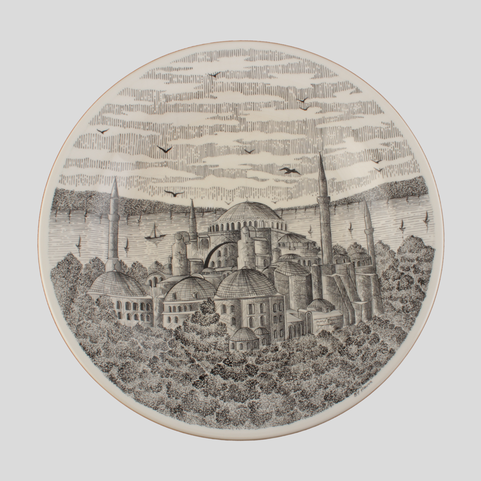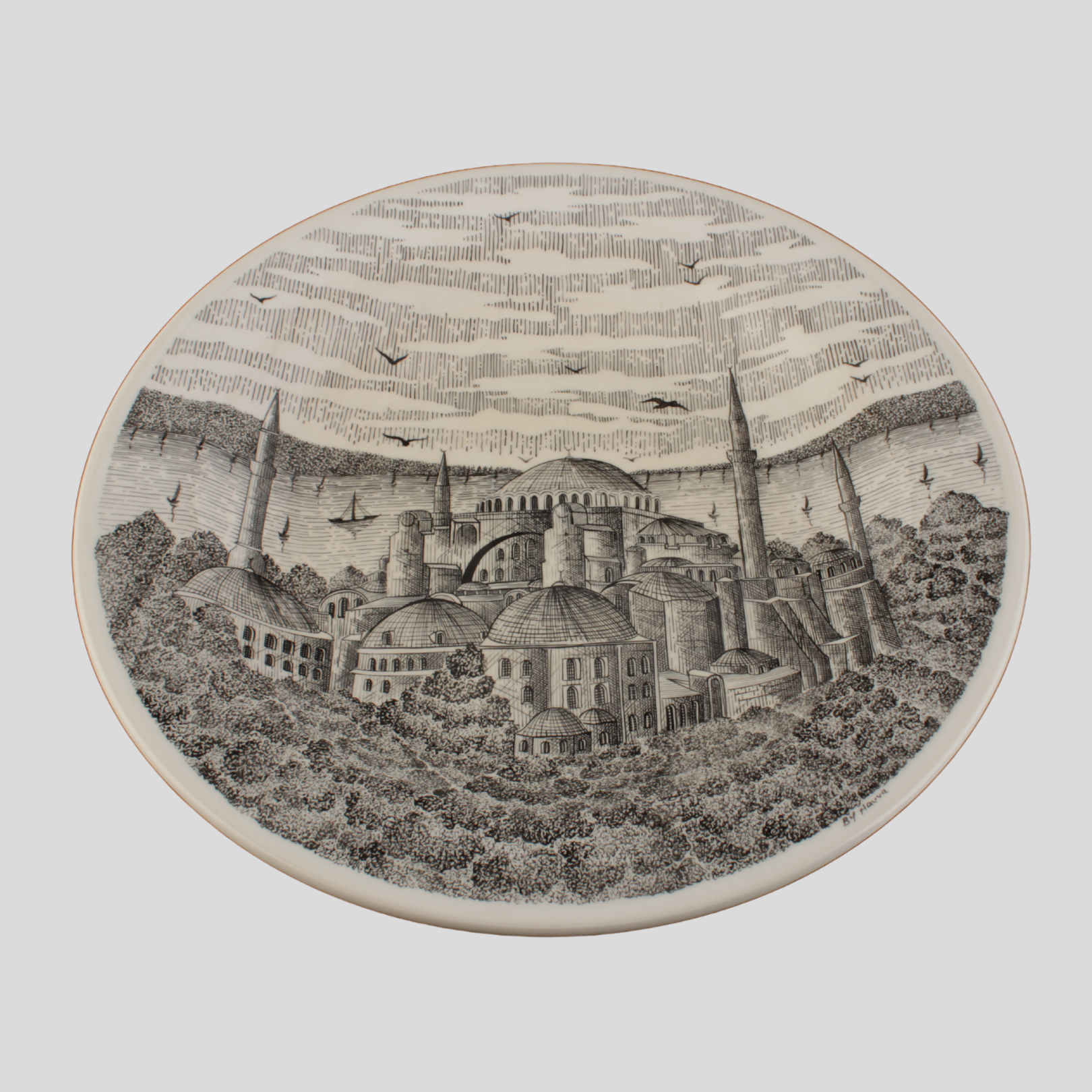 El işçiliğiyle hazırlanan bu tabak, İstanbul’un tarihî ruhunu ve mimari ihtişamını dekoratif bir sanat eserine dönüştürerek mekânlara kültürel bir karakter kazandırır.