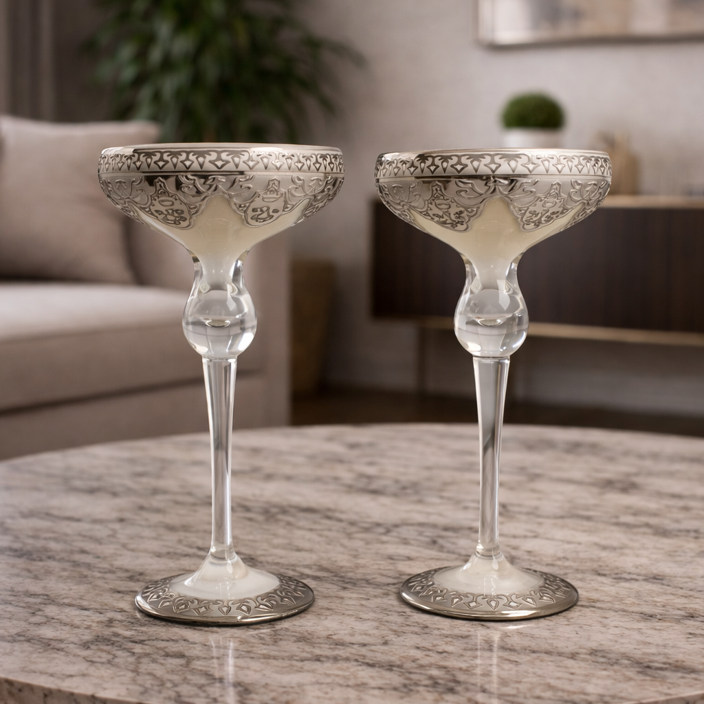 Şeffaf cam gövde üzerine uygulanan platin tonlu detaylar, ürüne sade ama güçlü bir şıklık kazandırır. Özellikle akşam saatlerinde mum ışığıyla birlikte kullanıldığında Köşk Şamdan, ortamın ambiyansını üst seviyeye taşıyan bir tamamlayıcıya dönüşür.