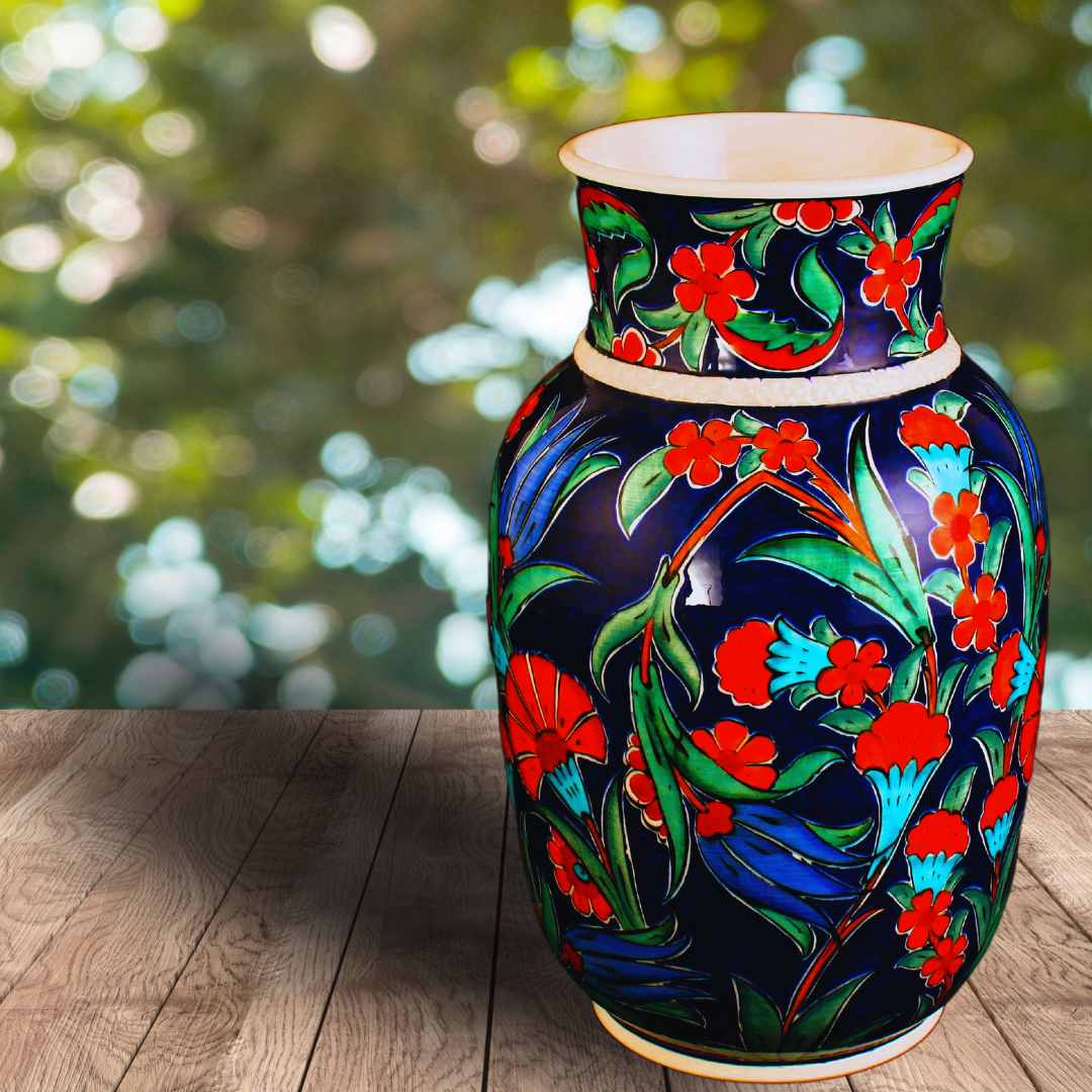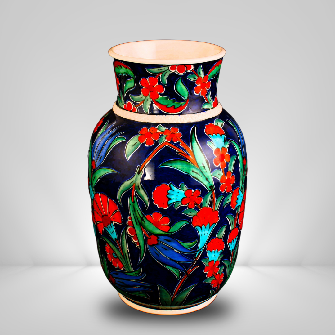 Mavi Gecede Karanfil Vazo, Anadolu’nun zengin çini desenlerinden ilham alarak tasarlanmış, Mavi Gecede Karanfil Vazomavi gecenin derinliğiyle karanfilin zarafetini buluşturan eşsiz bir sanat eseridir.