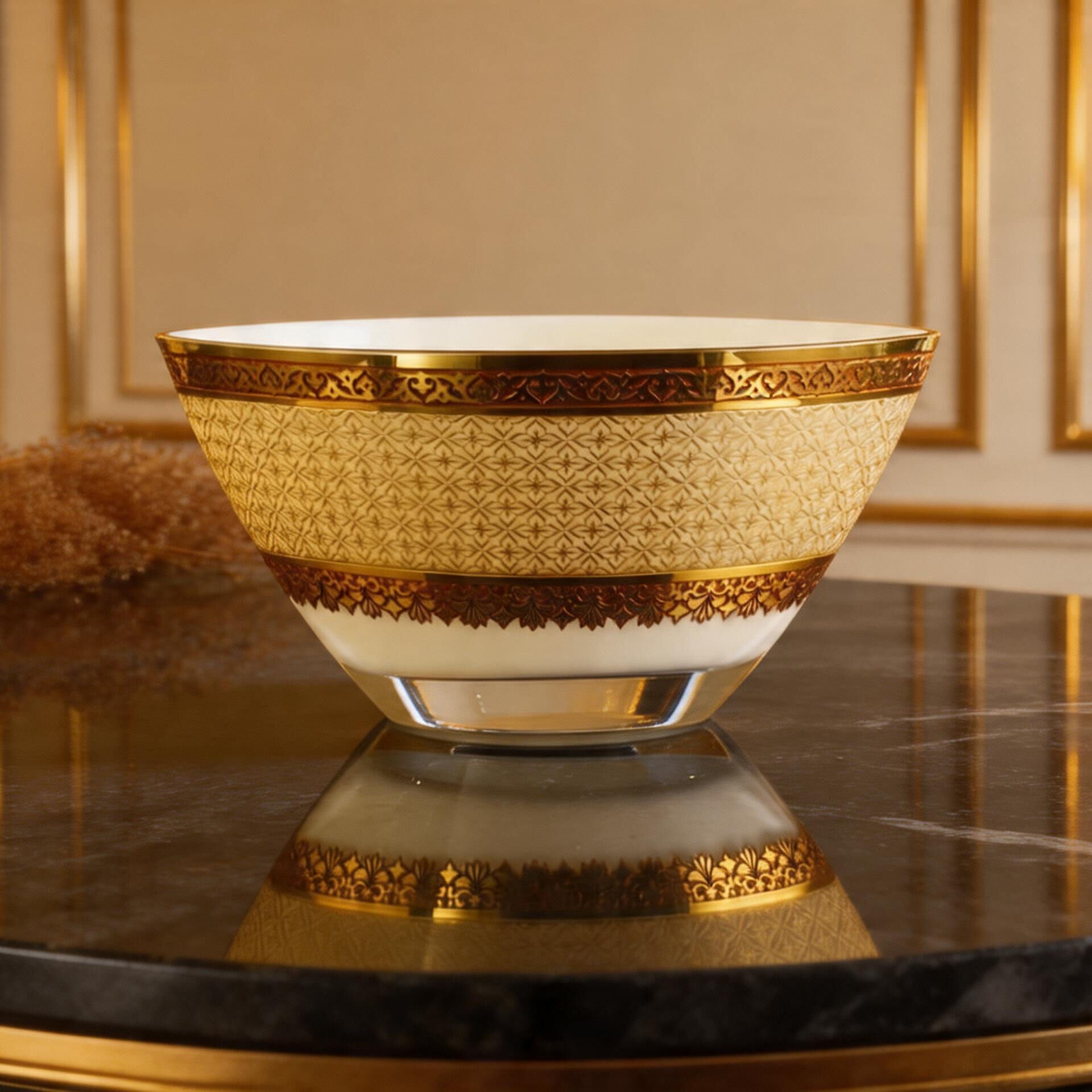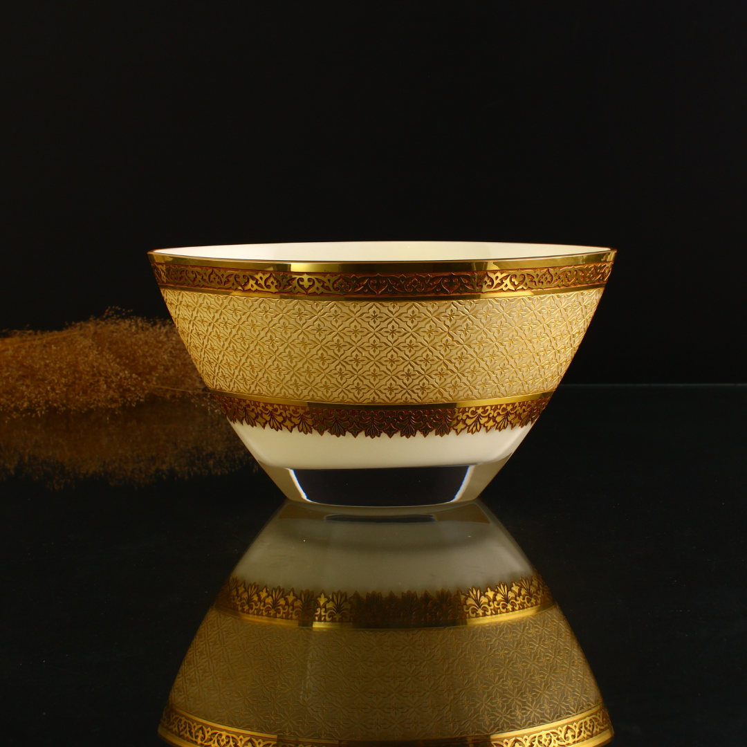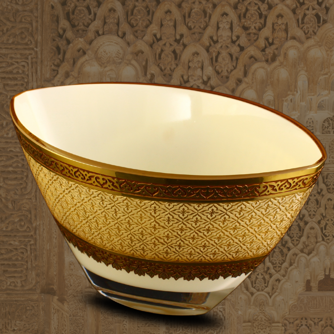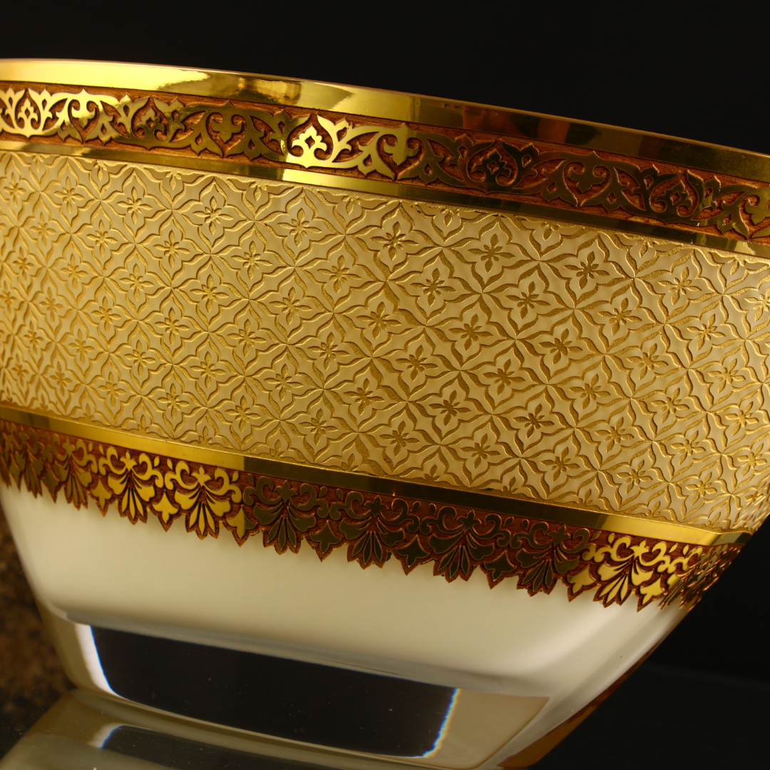 Mecidiye Gondol Altın, Beykoz Mecidiye Kasrı’nın zarif mimari estetiğinden ilham alan, Osmanlı sanat anlayışını cam yüzey üzerinde yeniden yorumlayan seçkin bir tasarımdır. Mecidiye Gondol Altın El işçiliğiyle hazırlanan bu özel parça; kasrın süsleme dilini, 24 ayar altın ve özel cam boyası detaylarıyla bir araya getirerek bulunduğu mekânda yalnızca dekoratif bir obje değil, kültürel derinliği olan güçlü bir sanat eseri etkisi oluşturur.