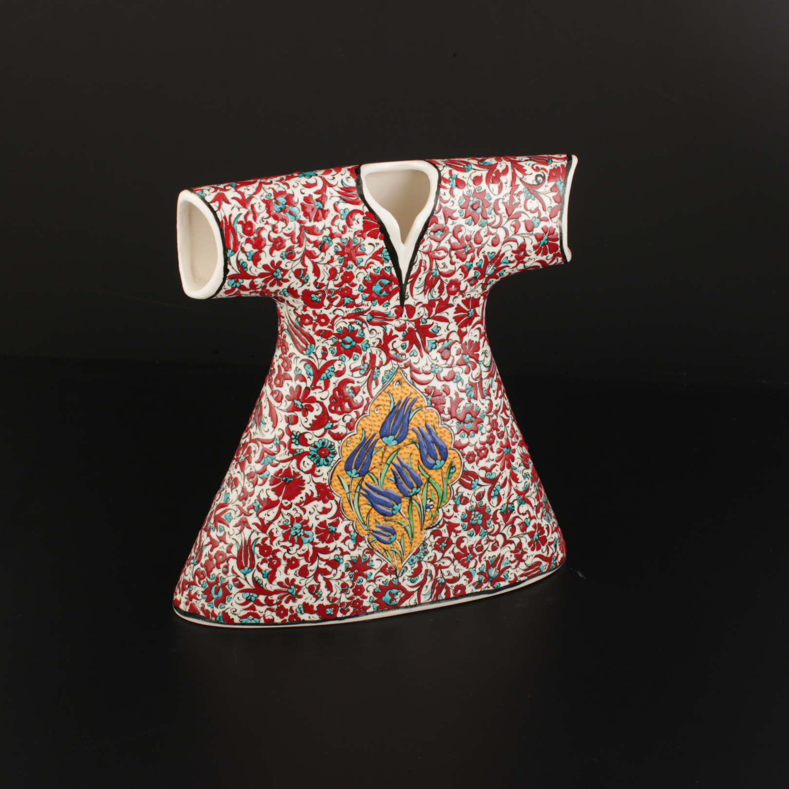 Mühr-i Lâle Kaftan, tezhip sanatındaki şemse medalyonunu merkezde zarif bir lâleyle buluşturan el yapımı bir çini objedir. Kaftanın koruyucu formu üzerinde, “mühür” etkisi yaratan merkezî lâle kompozisyonu ölçü ve simetri duygusunu güçlendirir; mekâna sakin, seçkin ve anlamlı bir vurgu katar.