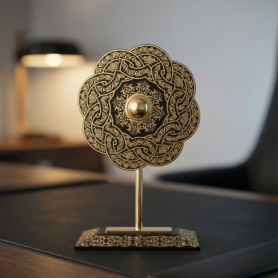 Koyu arka planlarda siyah ton daha “heykelsi” görünür; sıcak ışık altında motiflerin derinliği daha rafine hissedilir. Açık renk yüzeylerde ise formun keskinliği öne çıkar ve galeri etkisi güçlenir. Tek parça sergilemede en iyi sonucu verir; etrafında kalabalık aksesuar istemez.