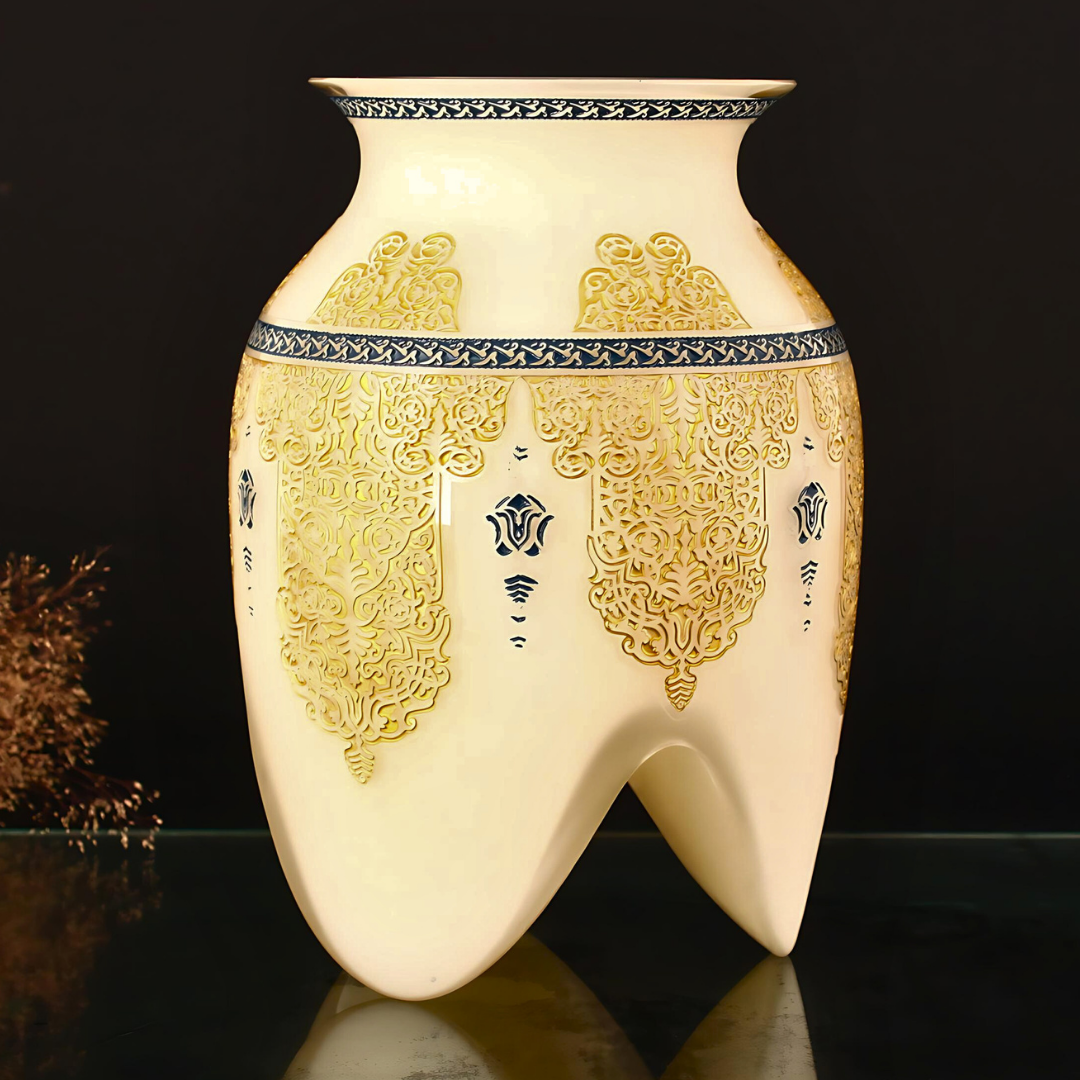 Yüzyıllardan günümüze ulaşan sanat mirası, Rahle Vazo ile modern cam sanatında yeniden hayat buluyor. Niğde Sungur Bey Camii’nde bulunan ahşap rahlenin motiflerinden esinlenerek tasarlanan bu eşsiz eser; camın zarif dokusu ile tarihî sanatın derinliğini buluşturuyor. El işçiliğiyle titizlikle üretilmiş bu özel parça, mekânlarınıza hem zarafet hem de kültürel anlam katıyor.