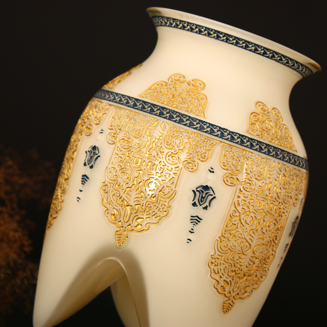 Rahle, İslam kültüründe ilmin ve hikmetin simgesidir. Özellikle Sungur Bey Camii’ndeki ahşap rahlede yer alan geometrik ve bitkisel motifler, asırlardır estetiğiyle hayranlık uyandıran bir miras olarak günümüze ulaşmıştır. Bu motiflerin cam yüzeyde yeniden yorumlanmasıyla şekillenen Rahle Vazo, yalnızca bir sanat objesi değil; aynı zamanda geçmişle bugünü buluşturan bir köprü niteliği taşır.
