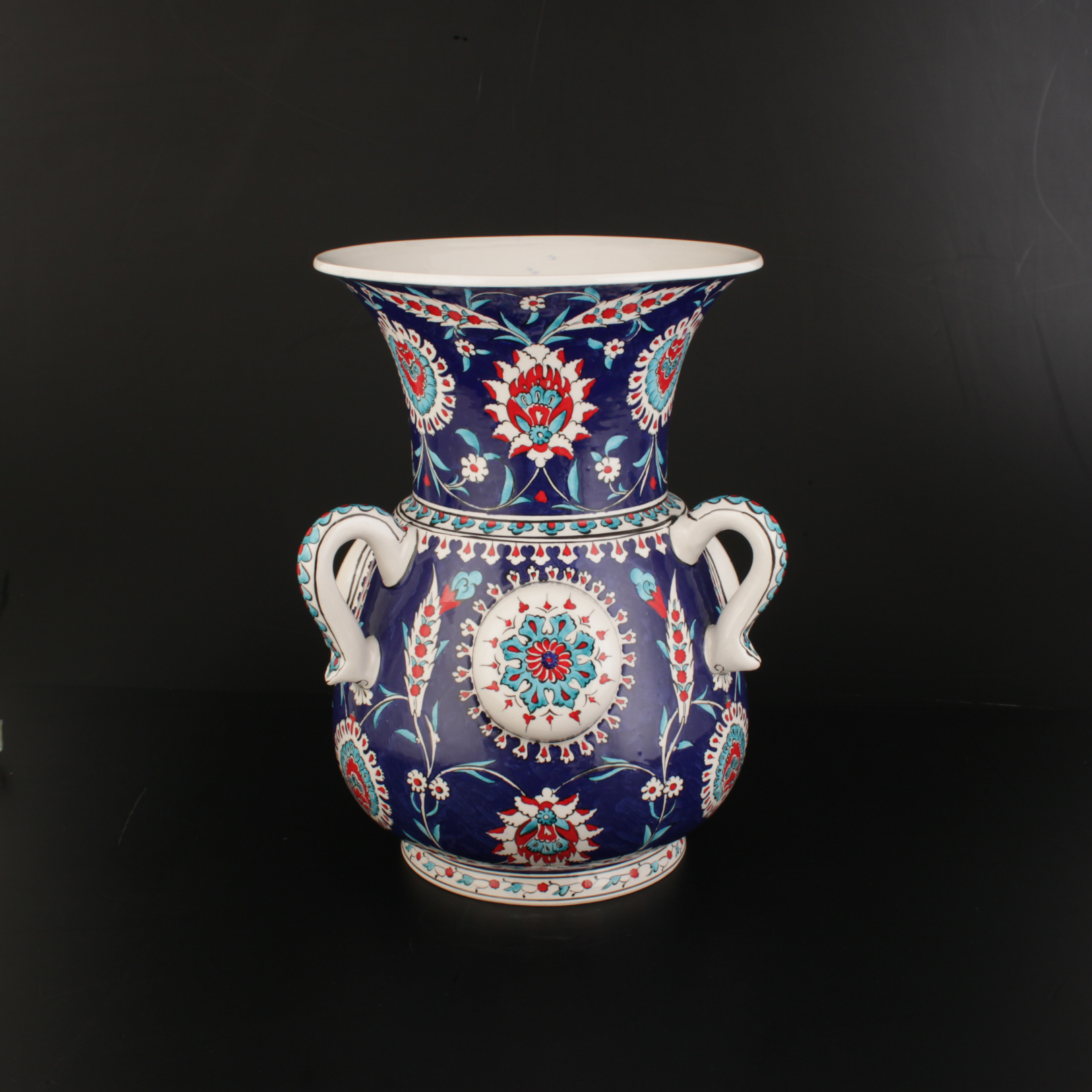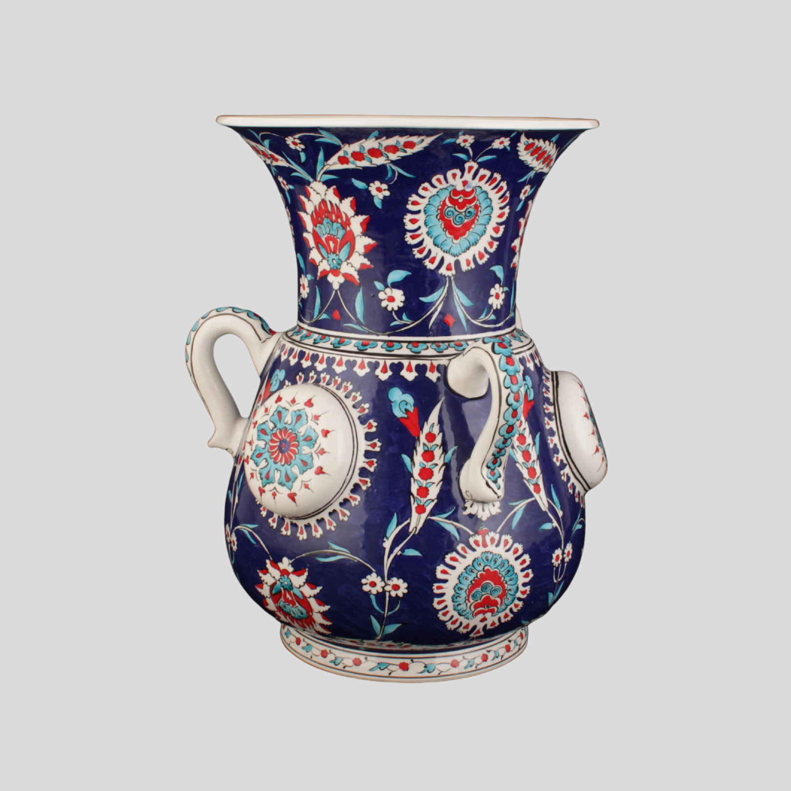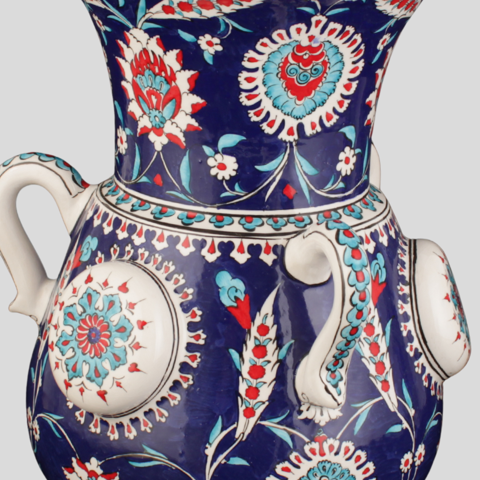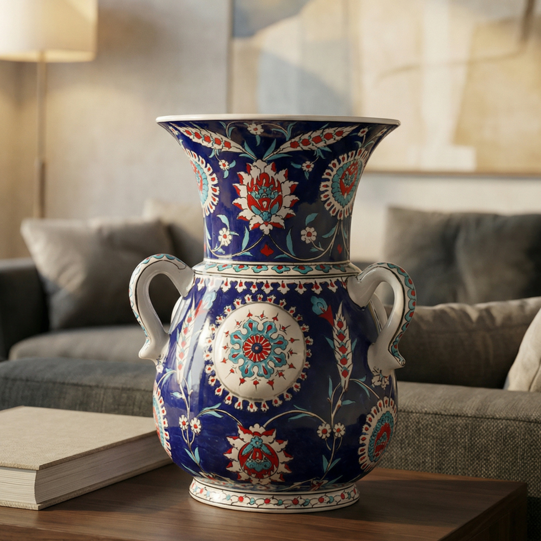 İşçilik: Sır altı el boyaması, kabartma rozet detay, ince tahrir uygulaması