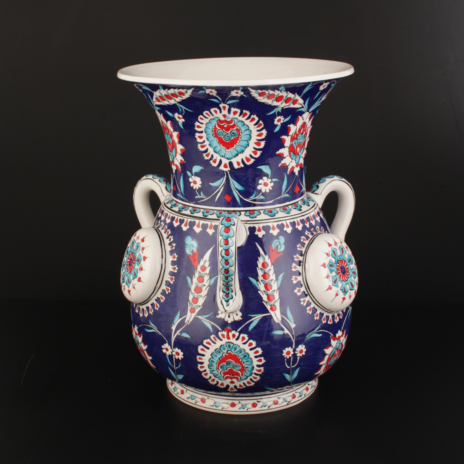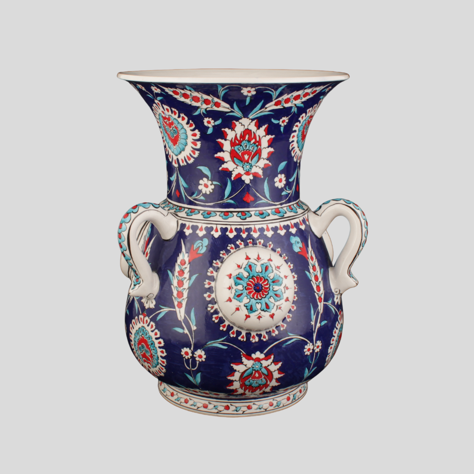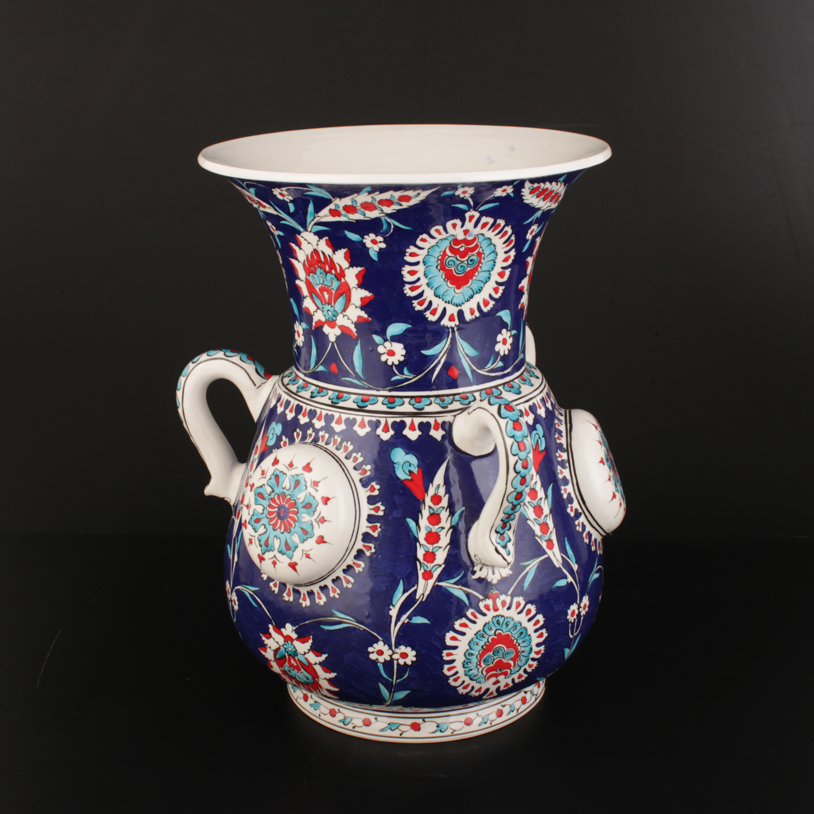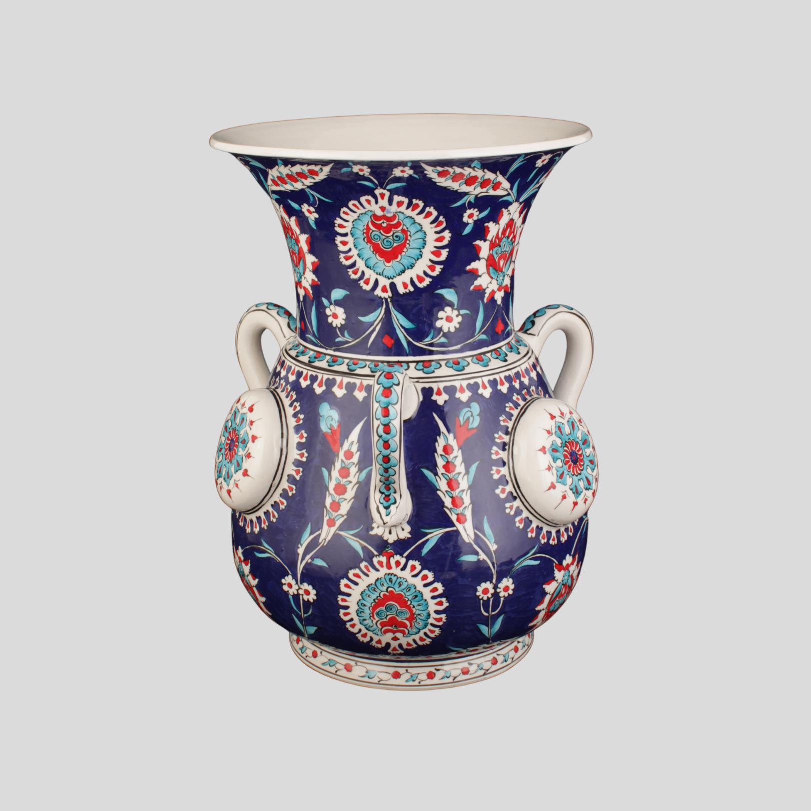 İşçilik: Sır altı el boyaması, kabartma rozet detay, ince tahrir uygulaması