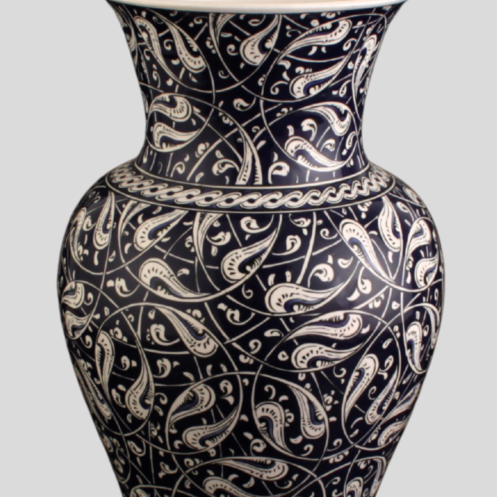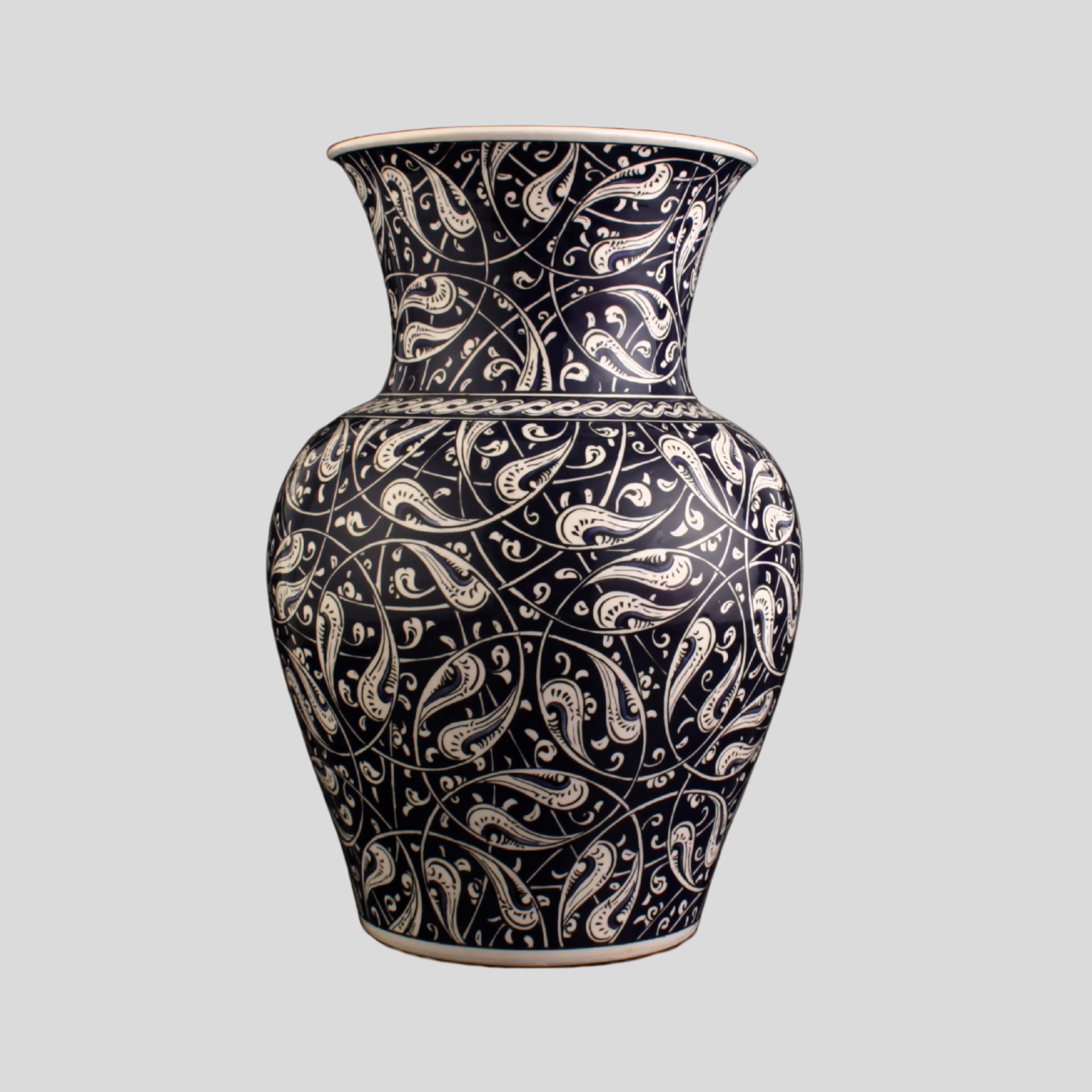 Rumi Seramik Vazo tasarımında bu geleneksel motif dili seramik sanatının zarif yüzeyi üzerinde yorumlanarak geçmişin estetiği modern dekorasyon anlayışıyla buluşturulmuştur.