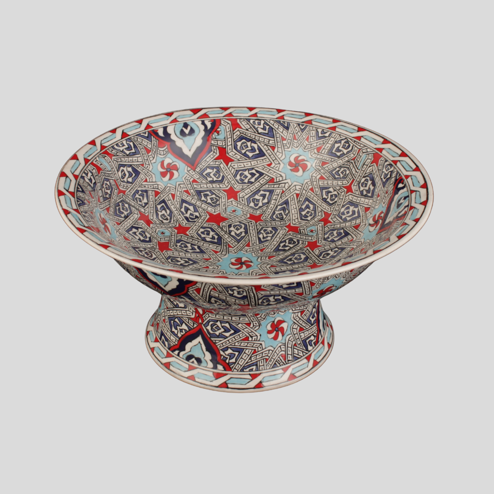 El yapımı çini kase; Selçuklu mozaik geometrisini yüksek gövdeli formda sunan seçkin parça.