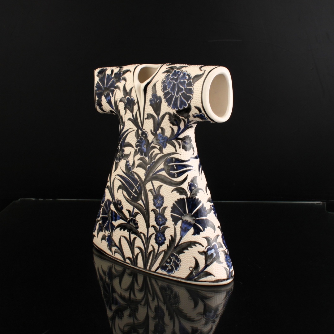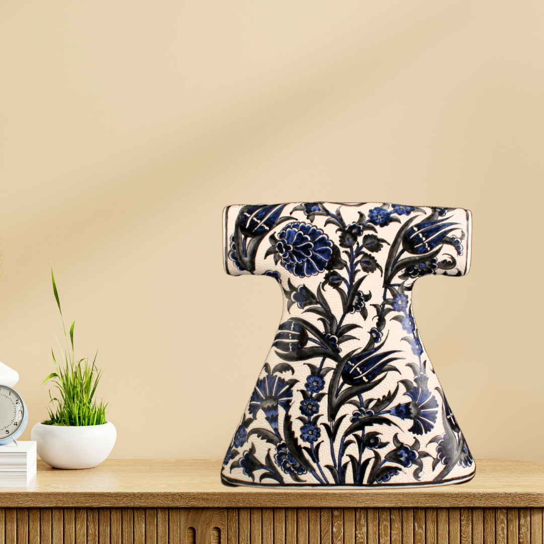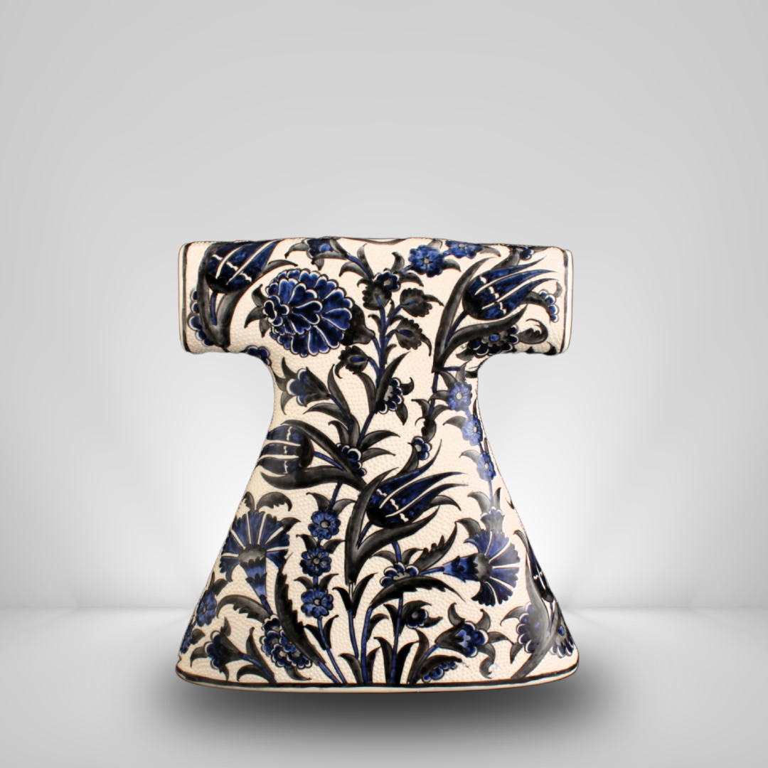 Sultan Çiçekleri Kaftan, Osmanlı saray bahçelerinin zarif çiçek motiflerinden ilham alınarak tasarlanmış, el yapımı özel bir seramik sanat eseridir. Lale, karanfil ve sümbül gibi çiçekler Osmanlı bahçelerinin ihtişamını ve estetik ruhunu simgelerken, bu eser kaftan formunda şekillendirilerek kültürel mirası modern dekorasyon anlayışıyla buluşturur.